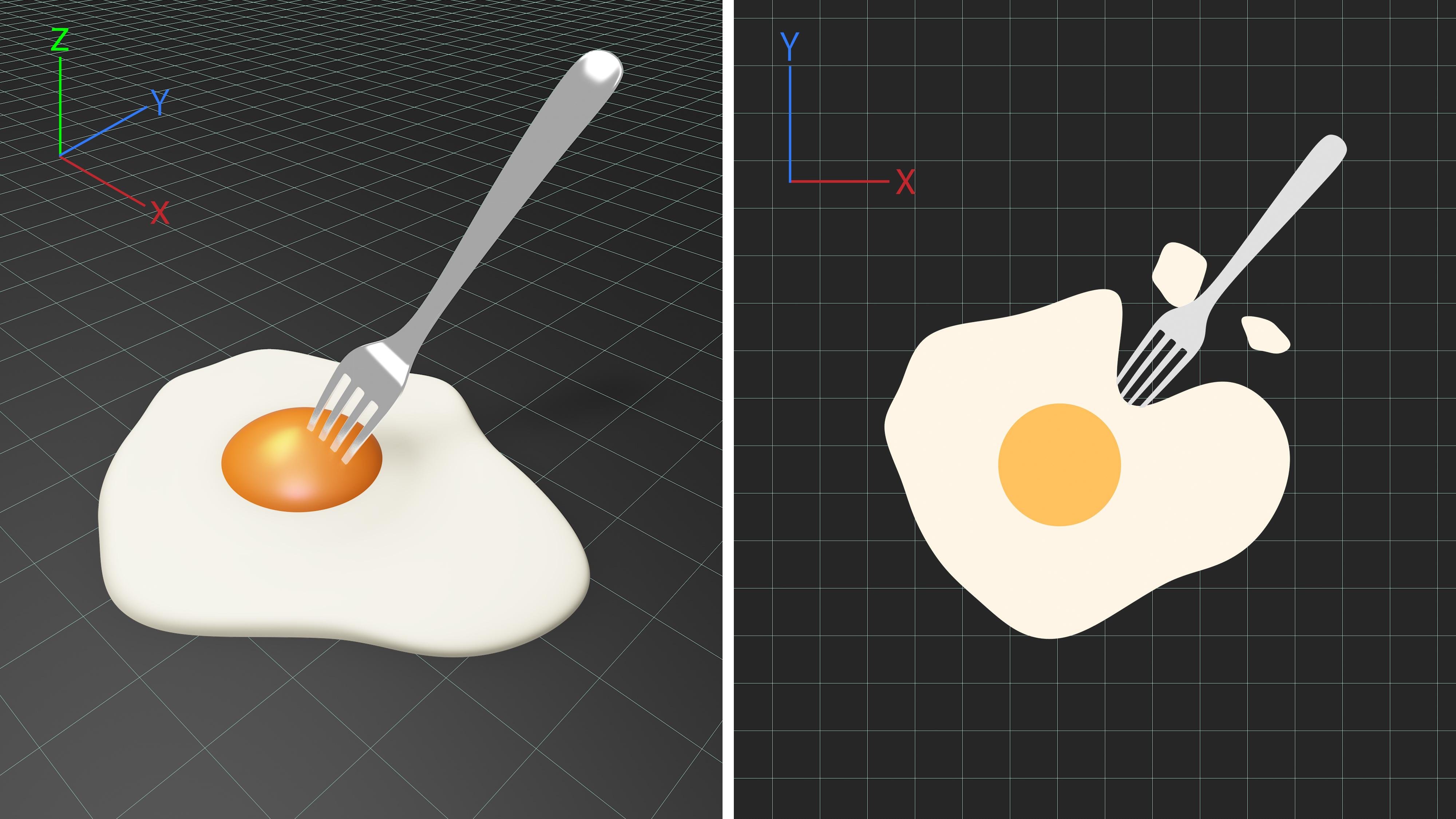 وبما أن هذا الأمر صعب، فلنفكر في البيضة باعتبارها بيضة مقلية مسطحة، أي شيء ثنائي الأبعاد. في العالم ثلاثي الأبعاد الذي نعيش فيه، يمكننا استخراج صفار البيض المقلي من الأعلى، حتى نتمكن من استخراج الصفار بسهولة دون كسر بياض البيض. ومع ذلك، في عالم مسطح ثنائي الأبعاد، سنكون موجودين على نفس المستوى المسطح مثل بياض البيض. لذلك، بما أننا سنحتاج إلى المرور بنفس مستوى البيضة المقلية لاستخراج الصفار، فسنحتاج إلى اختراق بياض البيض لاستخراجه.