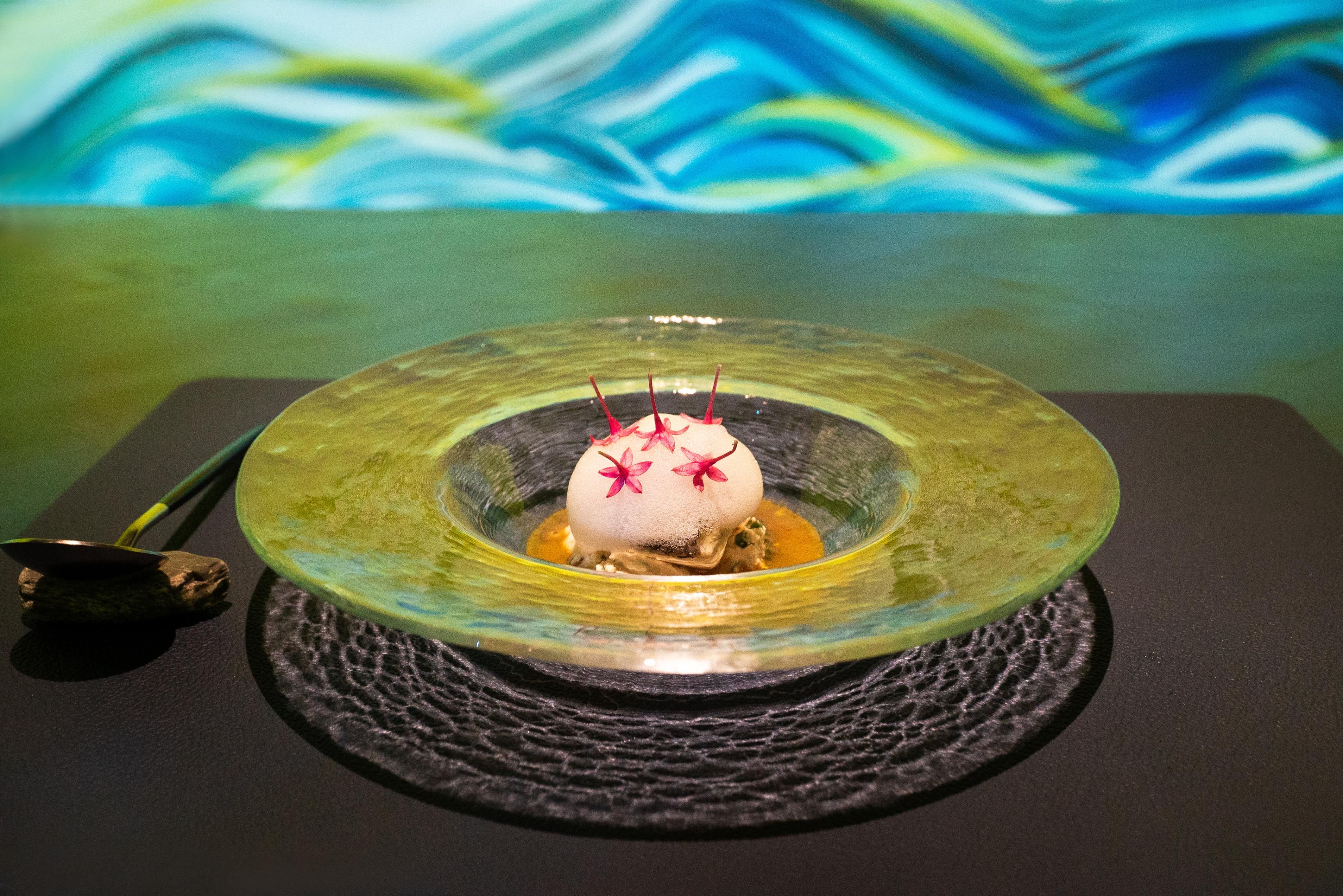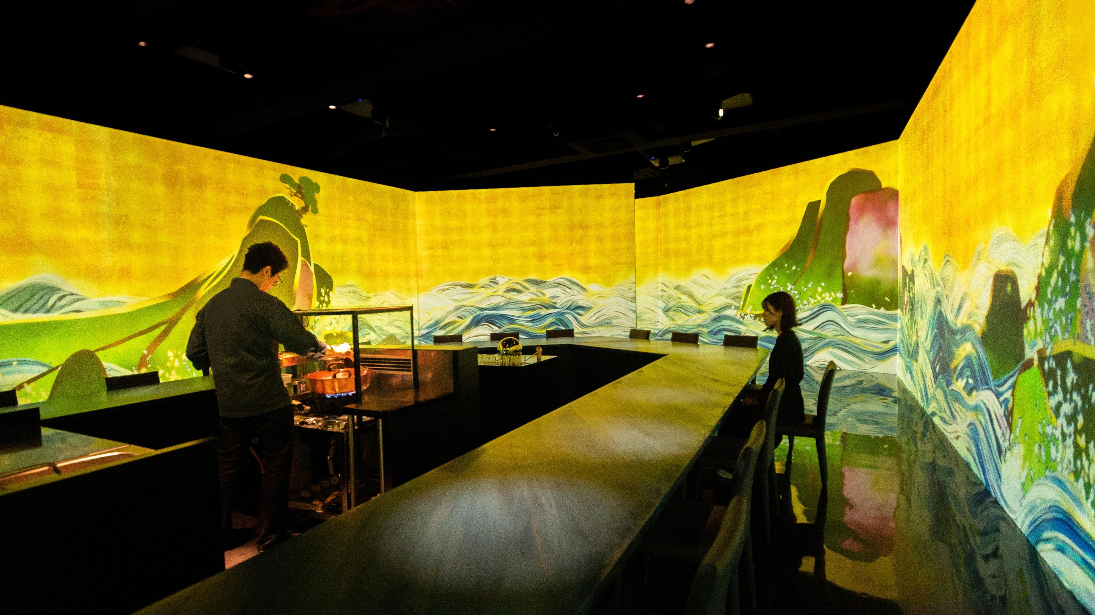 Here, visitors are enveloped by this gradually rising sea, experiencing the artwork as they enjoy dishes made from fish caught in the local sea and excess seafood products that would have otherwise been discarded*. We wanted this artwork experience to be one that takes into consideration and explores the sustainability of the beautiful and abundant oceans. And we wanted this space to be somewhere that people could experience over and over throughout a long period of time.