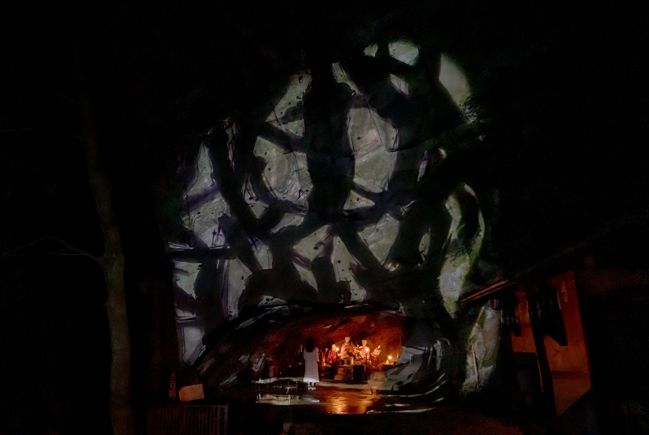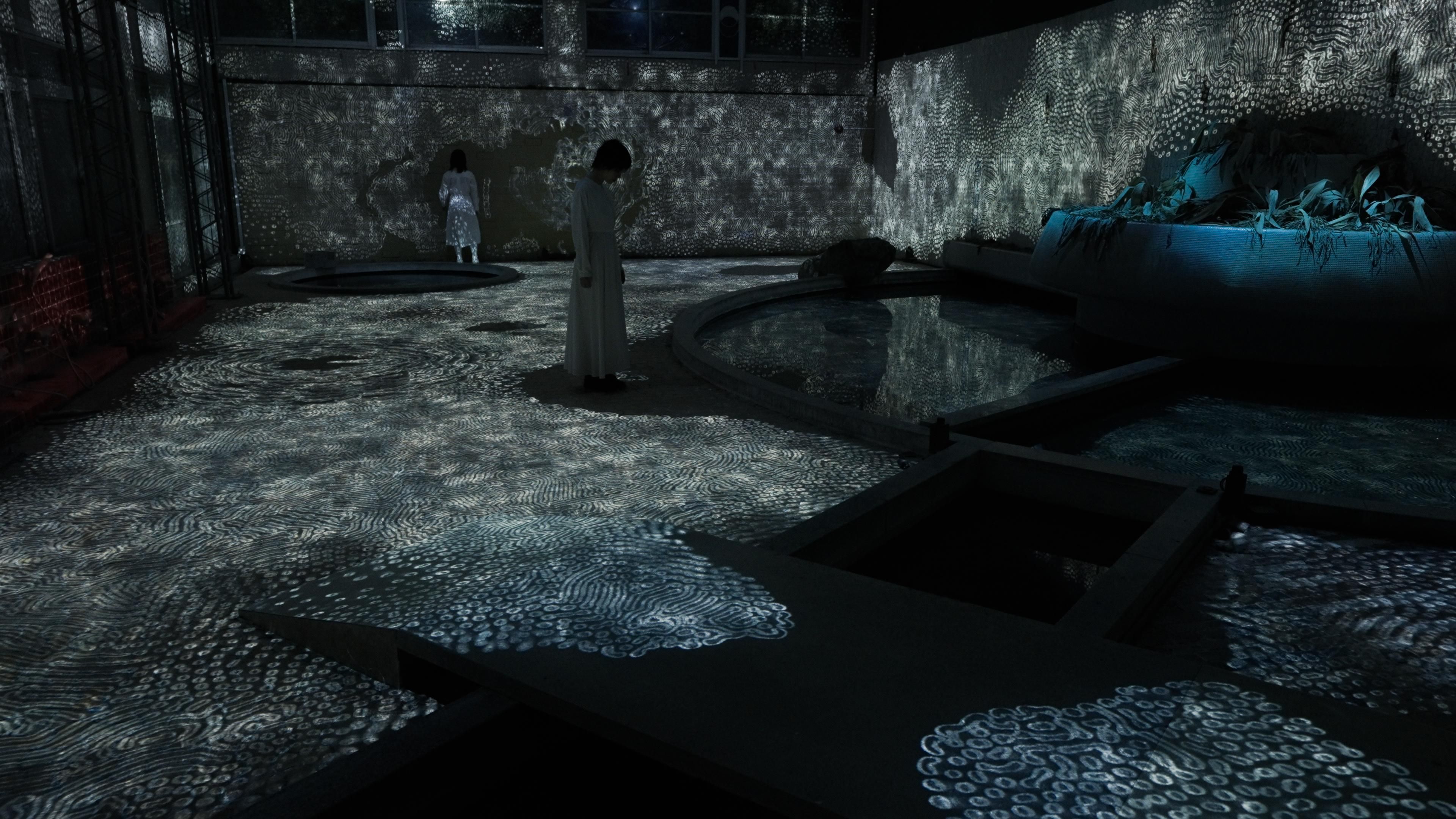 Indoor artworks: "Megaliths in the Bath House Ruins", "Universe of Fire Particles in a Decaying Underground Passage", "Forest and Spiral of Resonating Lamps", "Light Sculpture of Flames", "Life Survives by the Power of Life II", "Living Crystallized Light", "Ruptured Outer Wall and Stone Garden"