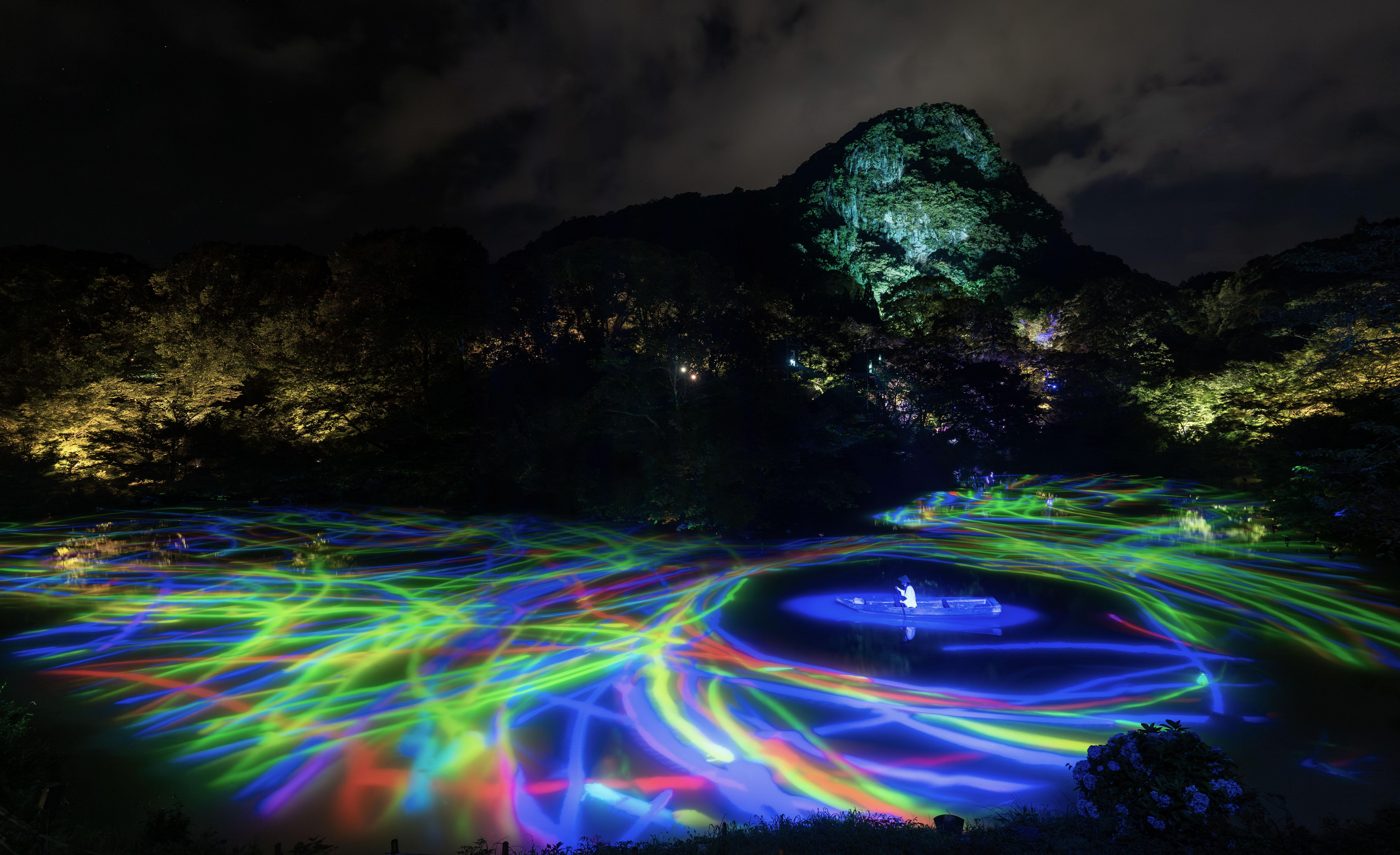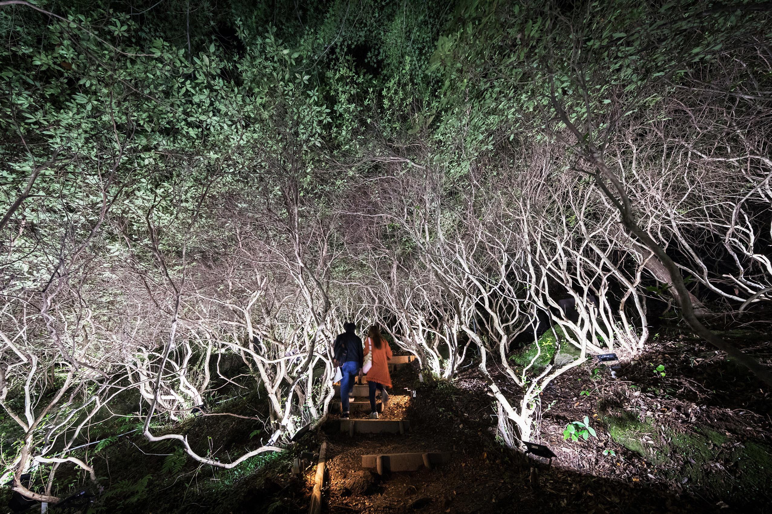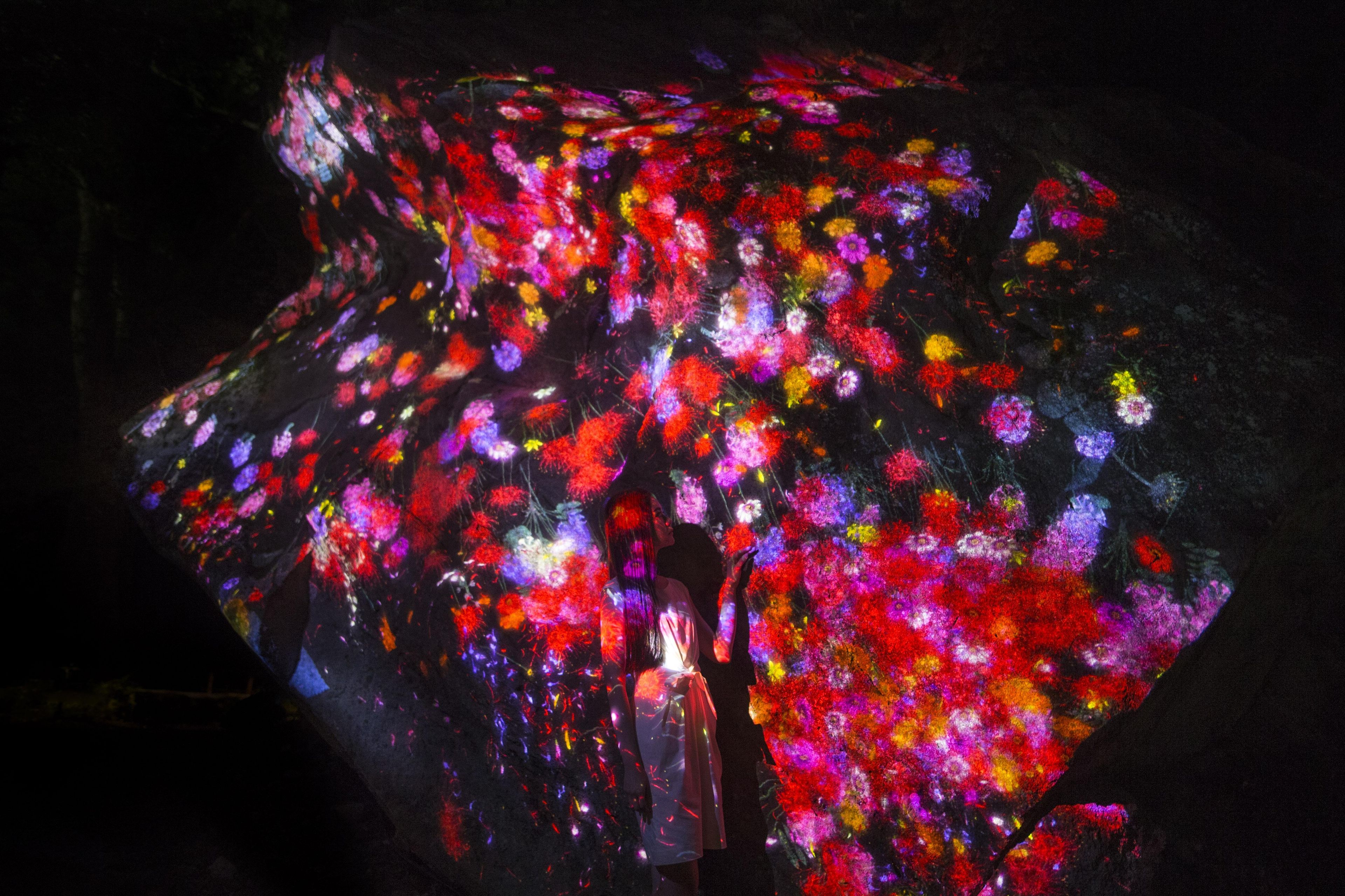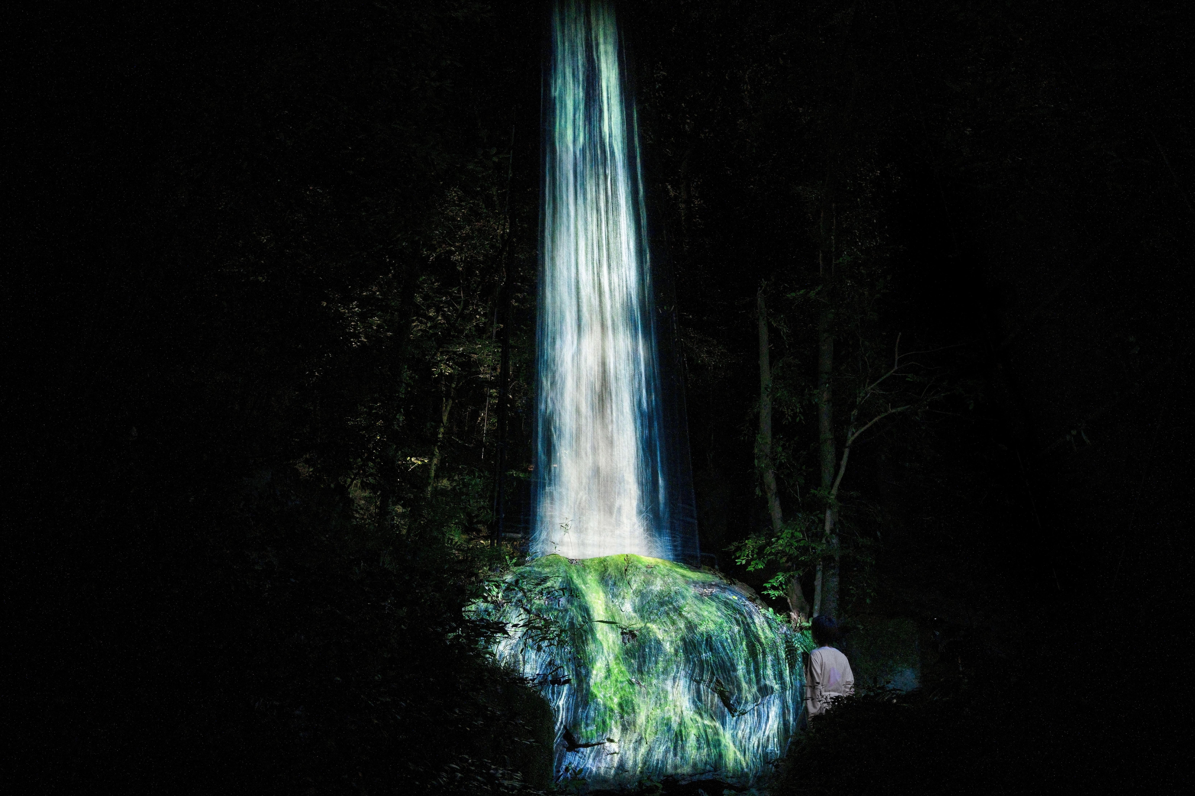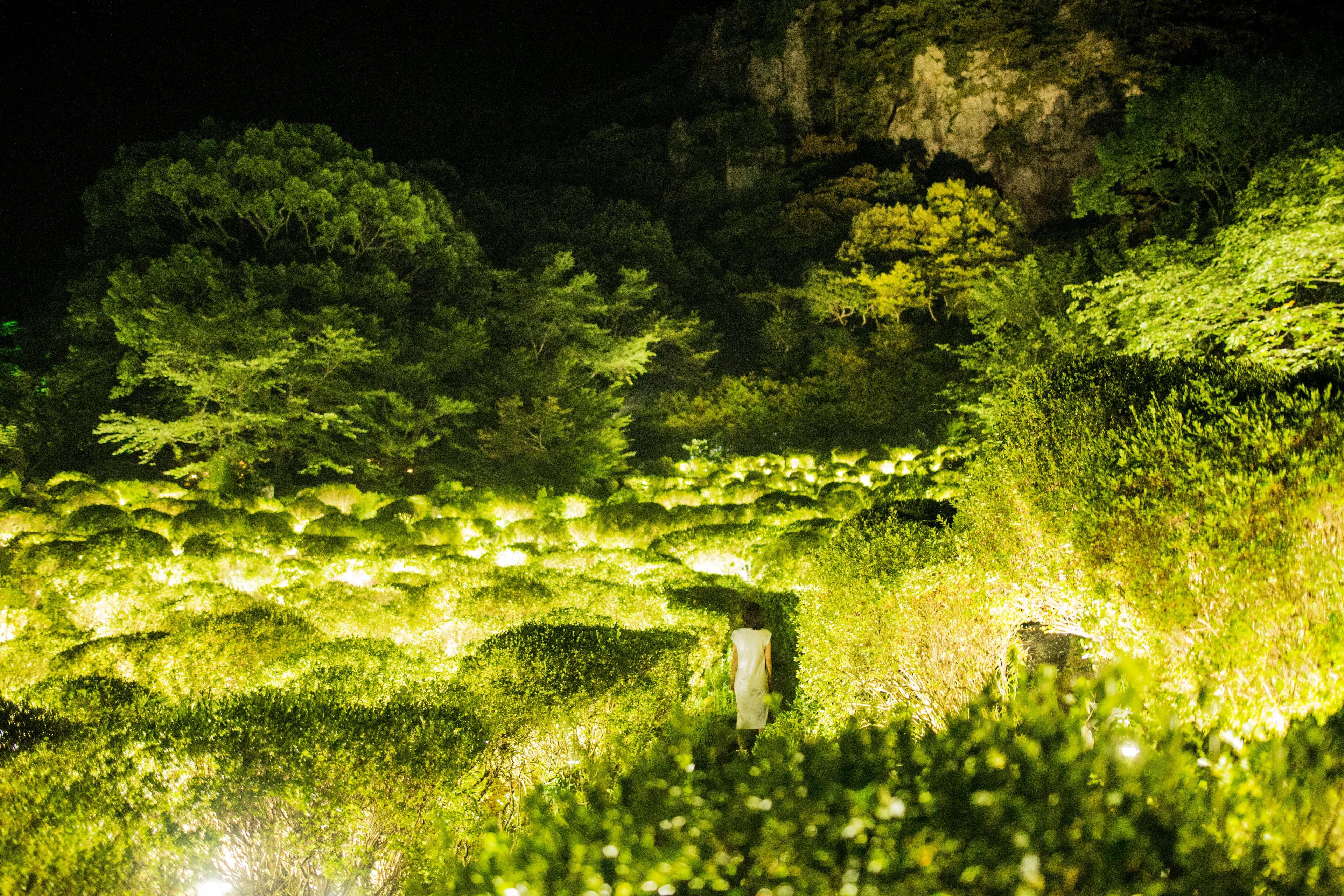 Lost in nature, where the boundaries between man-made garden and forest are unclear, we are able to feel like we exist in a continuous, borderless relationship between nature and humans. It is for this reason that teamLab decided to create an exhibition in this vast, labyrinthine space, so that people will become lost and immersed in the exhibition and in nature.