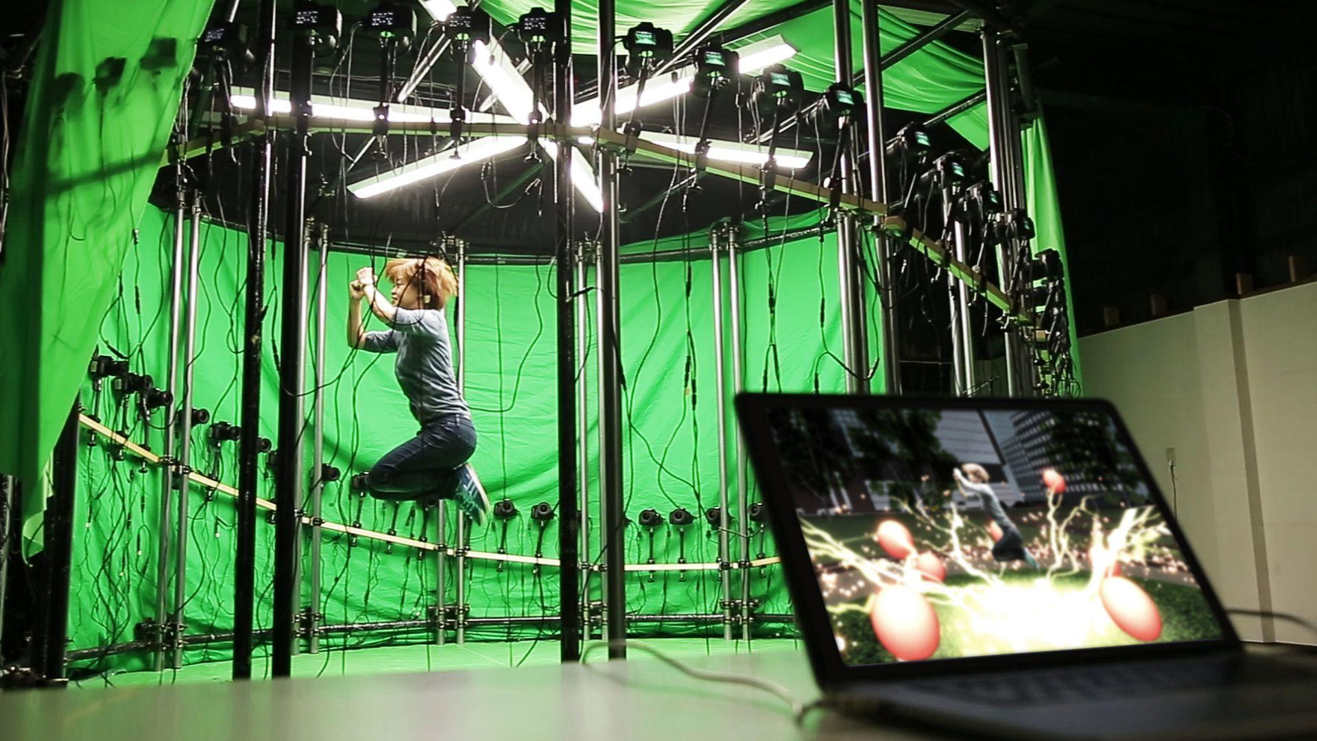 When you enter the studio, fictional 3D spaces are generated in real time by computer graphics; videos can then be taken as you enjoy the experience of entering these fictional worlds. Cameras placed across 360 degrees are used to take photos simultaneously, instantly generating a 3D image of you within that 3D space. A video of you is then generated which can then be shared on social media.