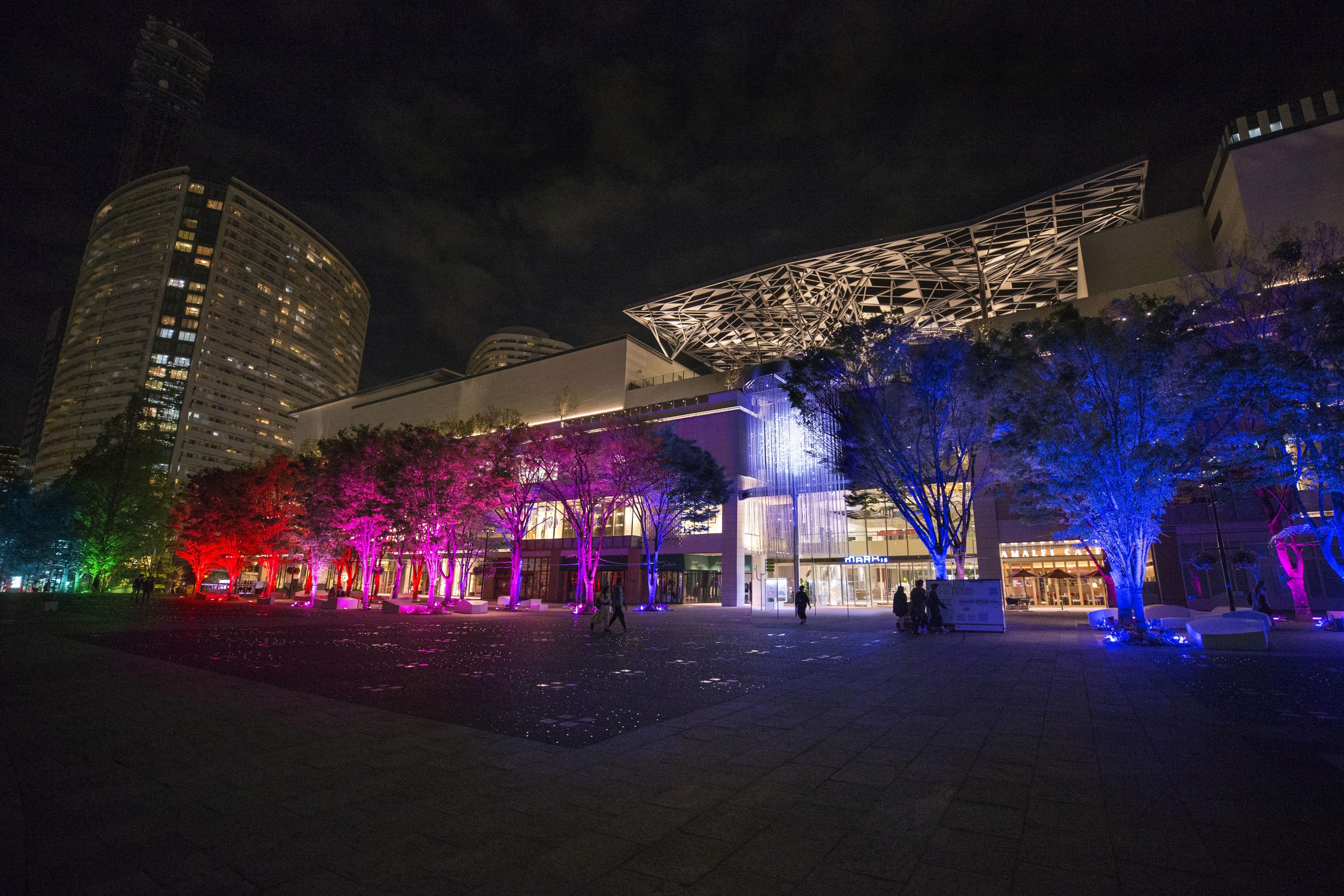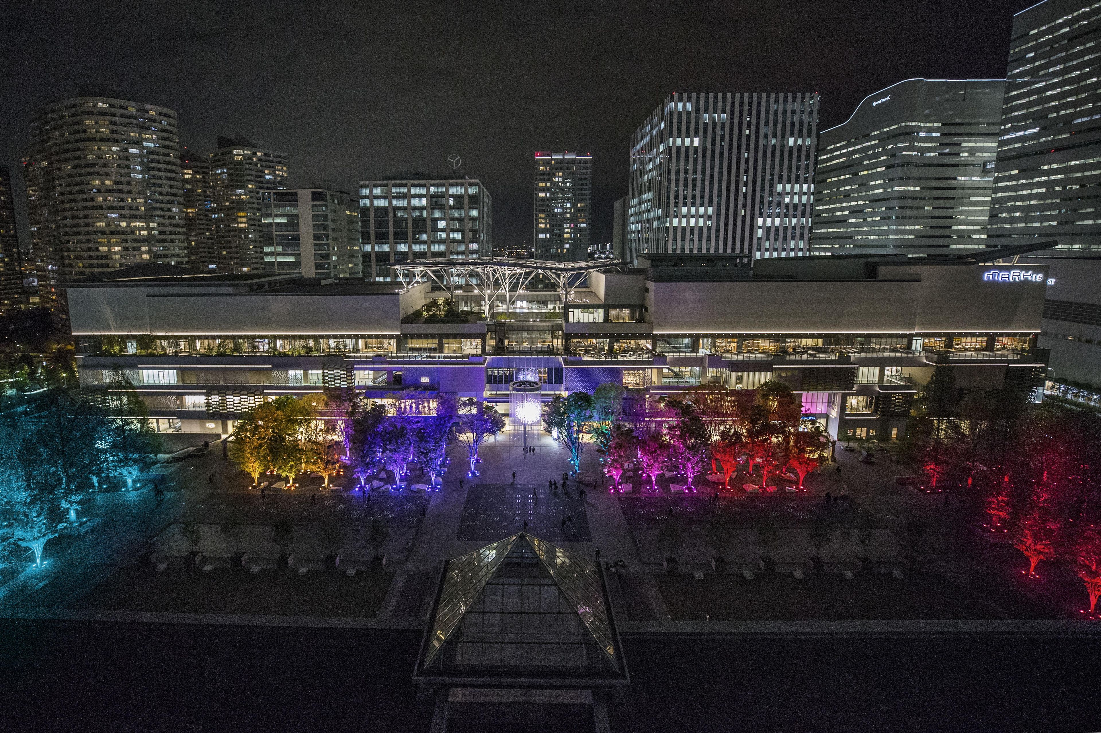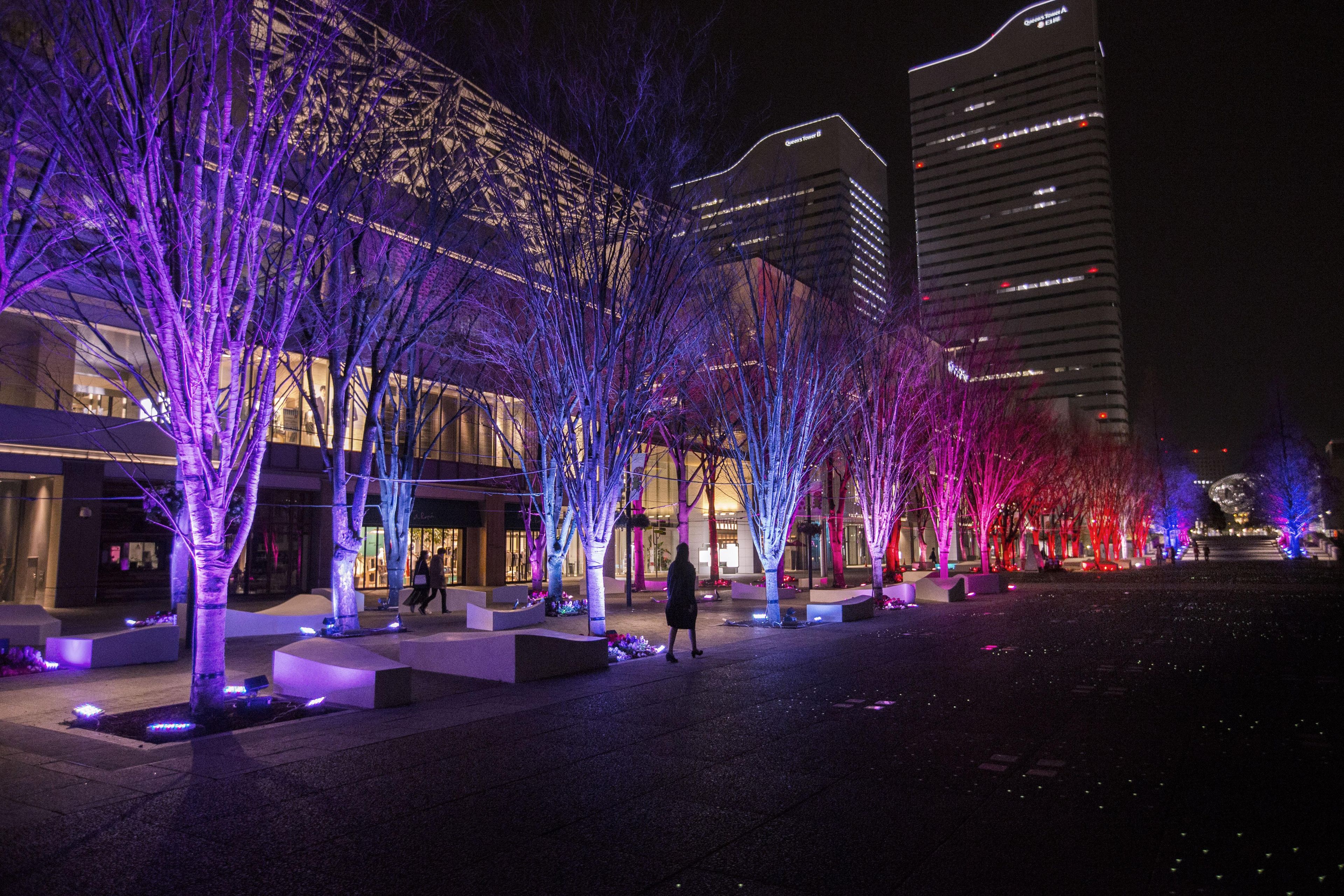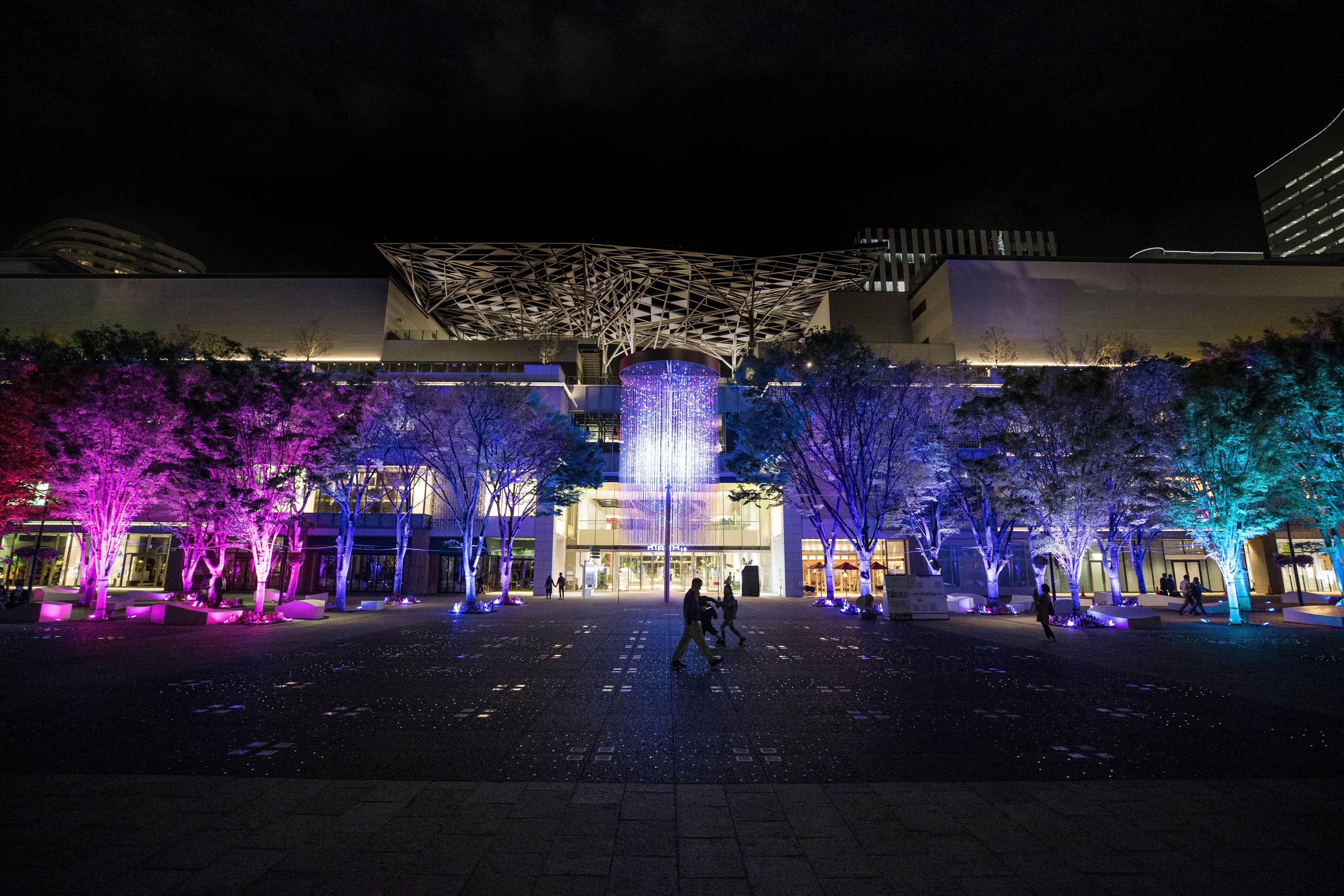 210-meters-long 'Resonating Trees' - the trees change their light and tone color which resonates out when people pass close to them in the Grand Mall Park.