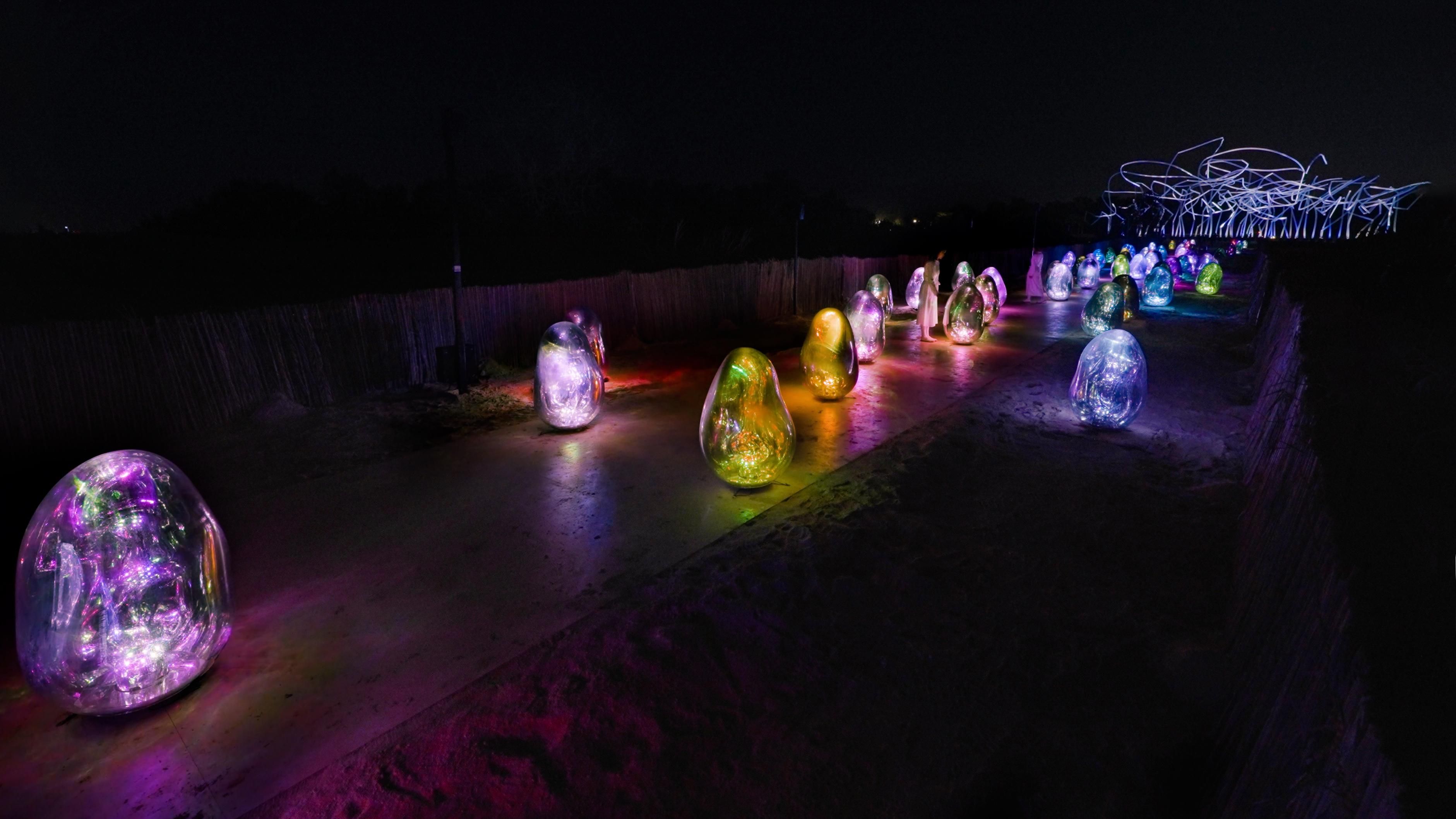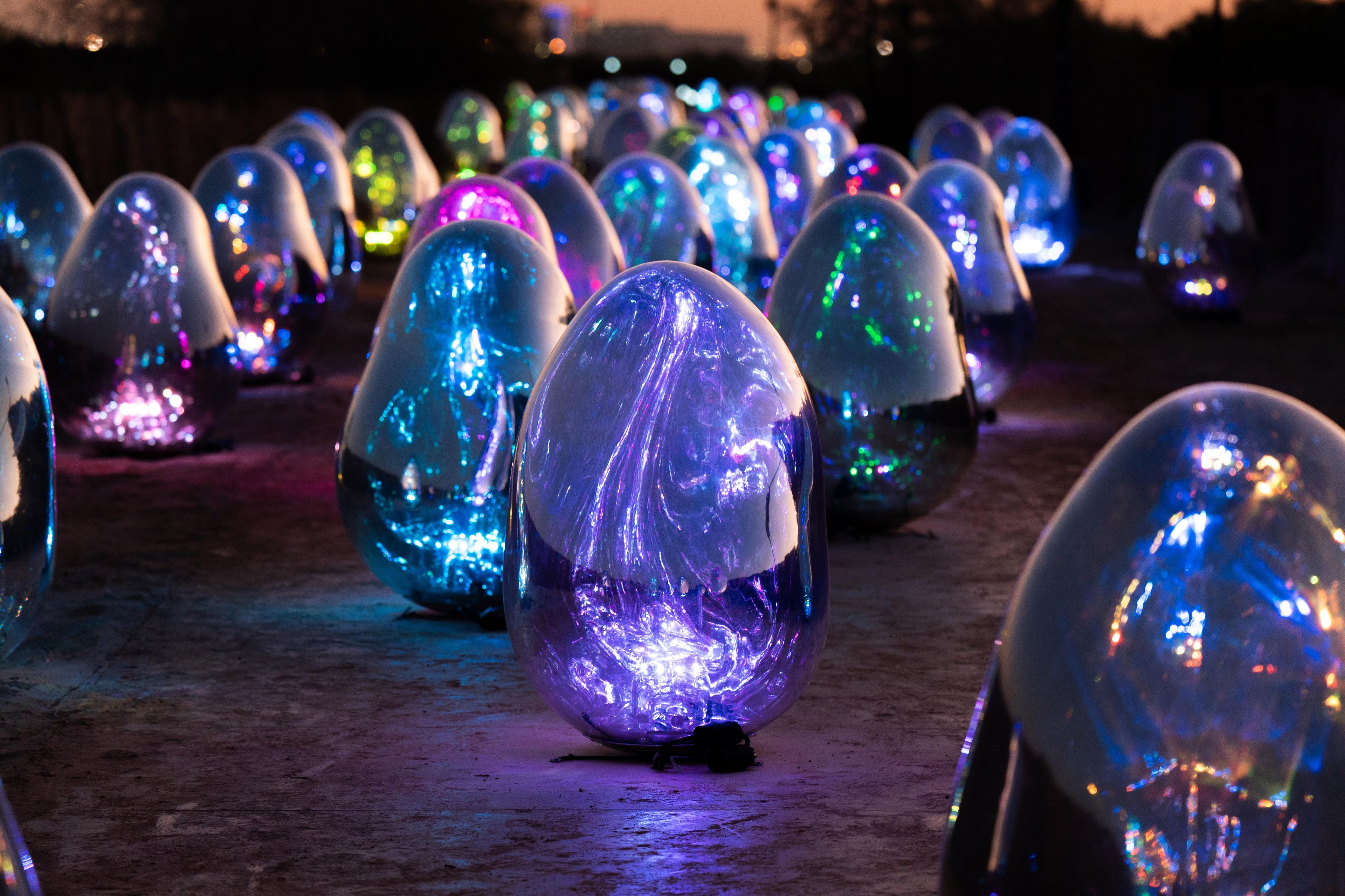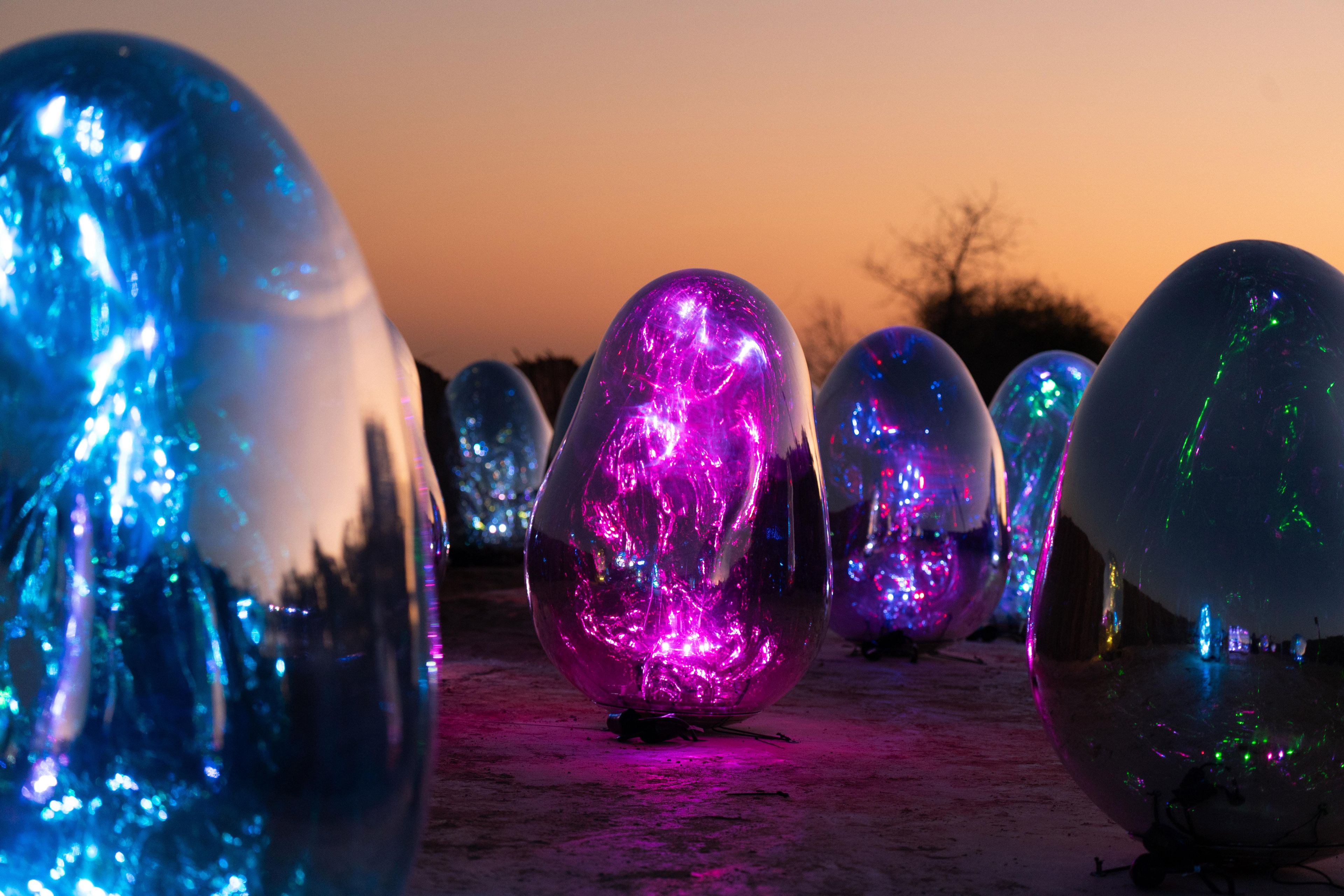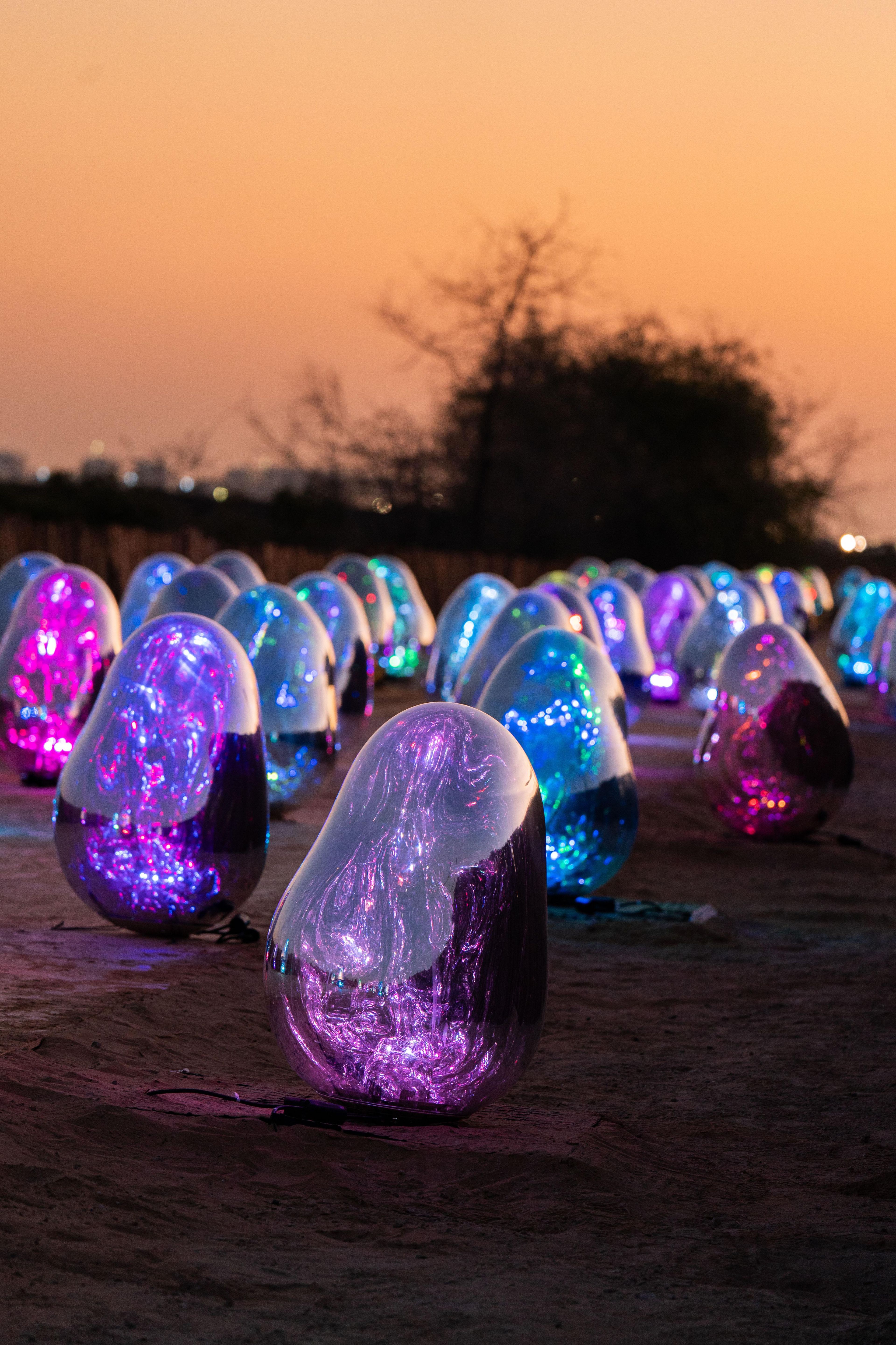 تحت أشعة الشمس، تعكس الأشكال البيضاوية العالم من حولهم. أما مع غروب الشمس، أو حتى في الفضاء المظلم، فإن الأشكال البيضاوية تسطع تلقائياً.