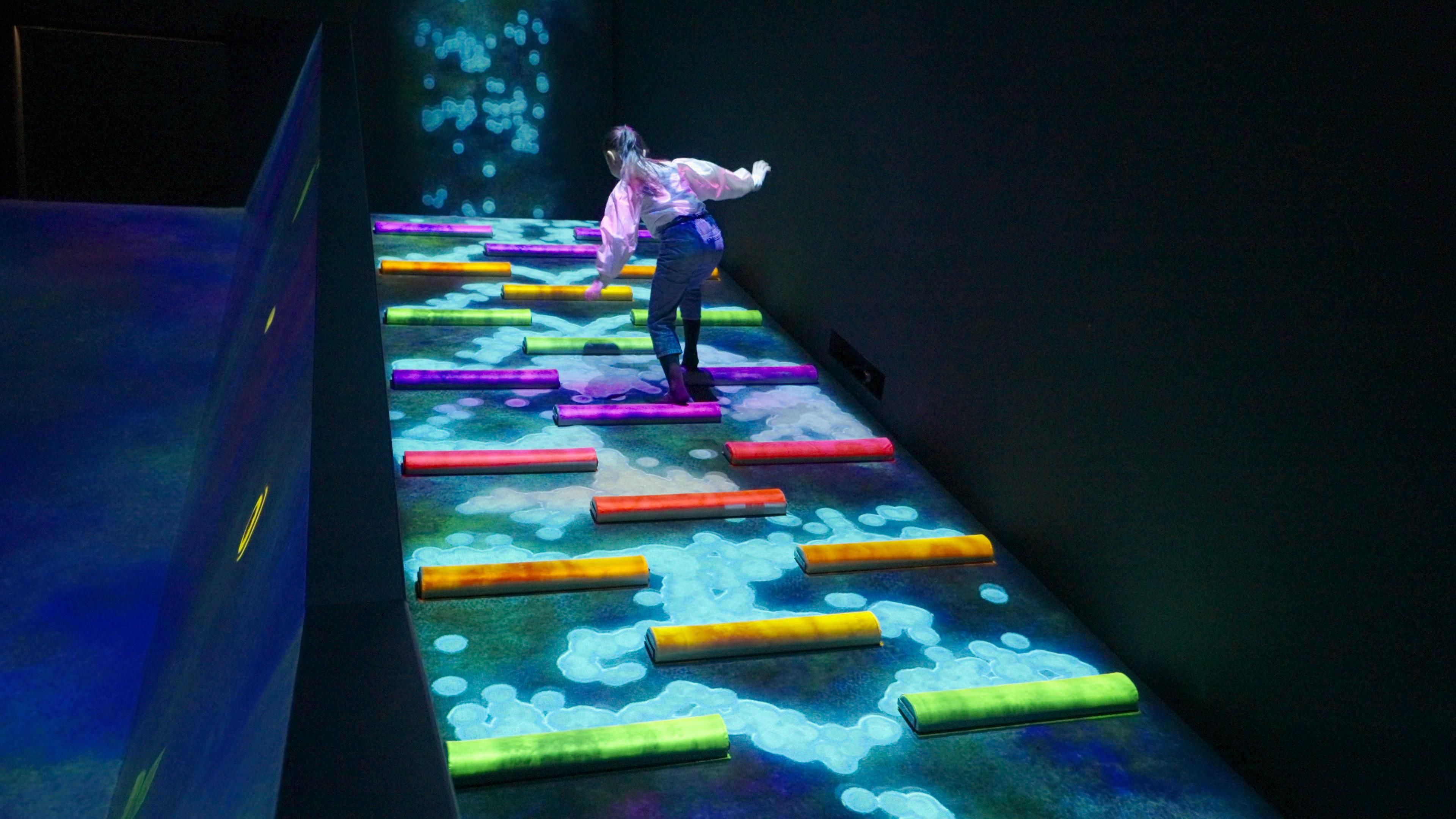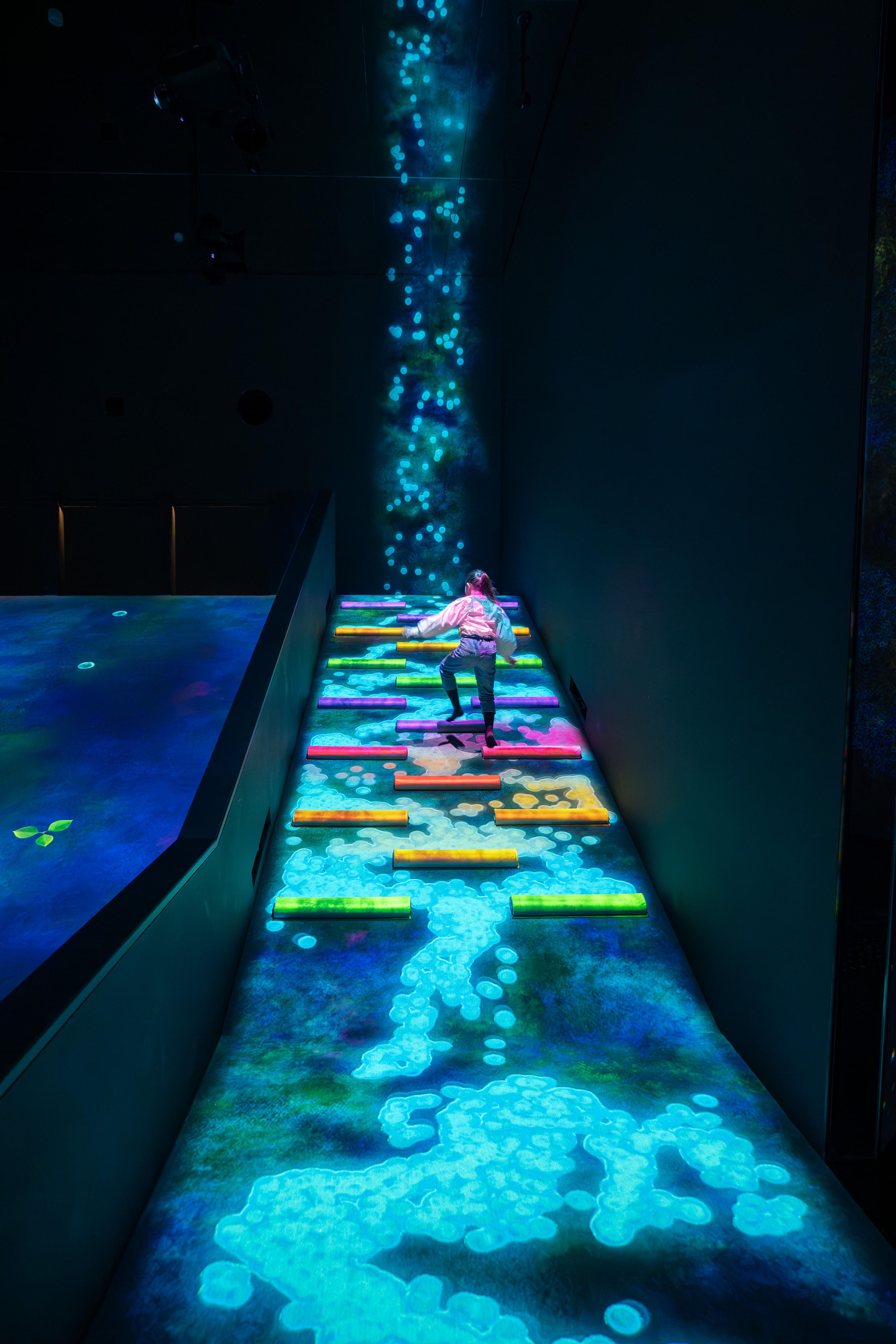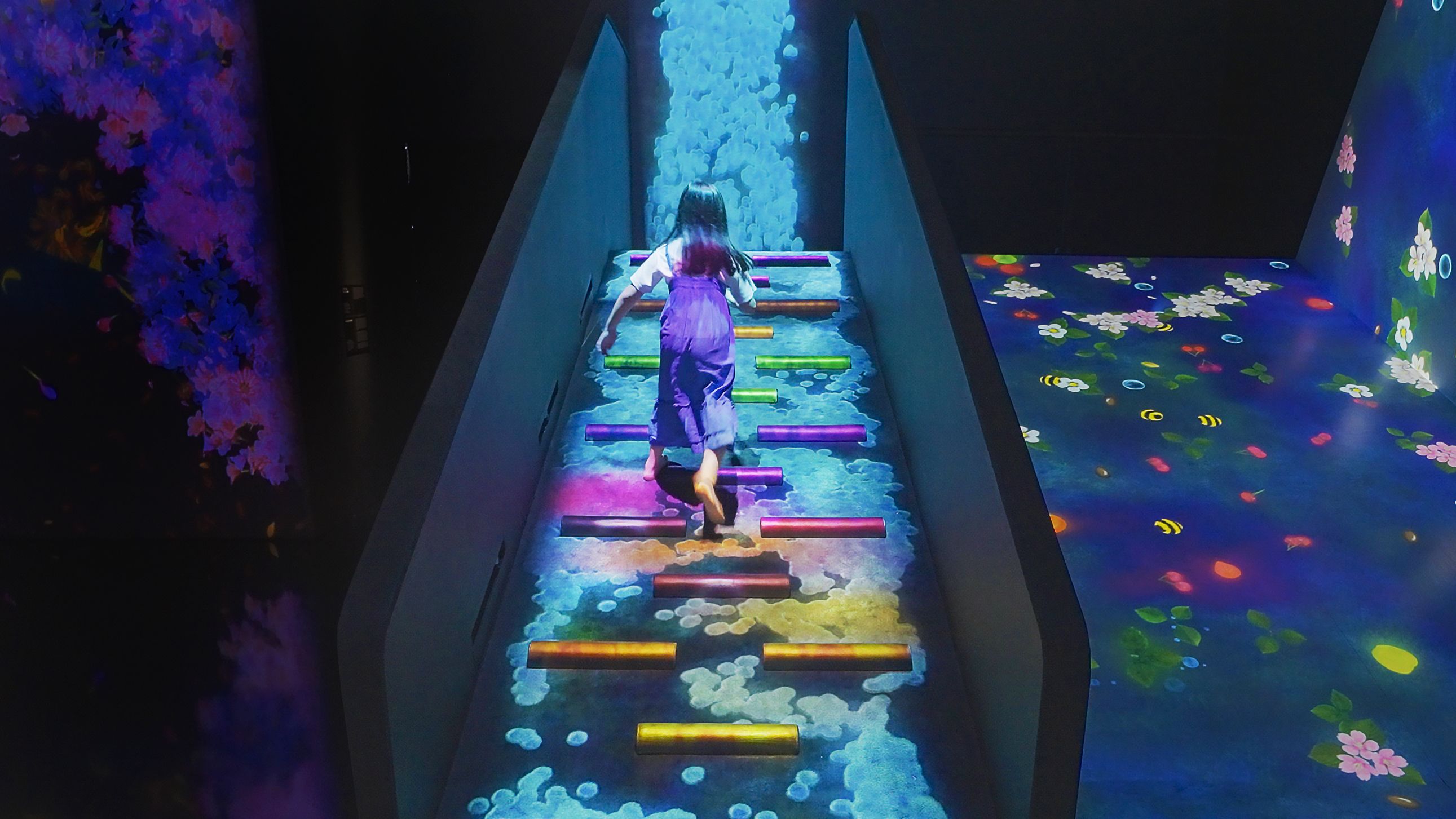 When people climb the steps up the hill, the droplets near the step receive energy and break apart.