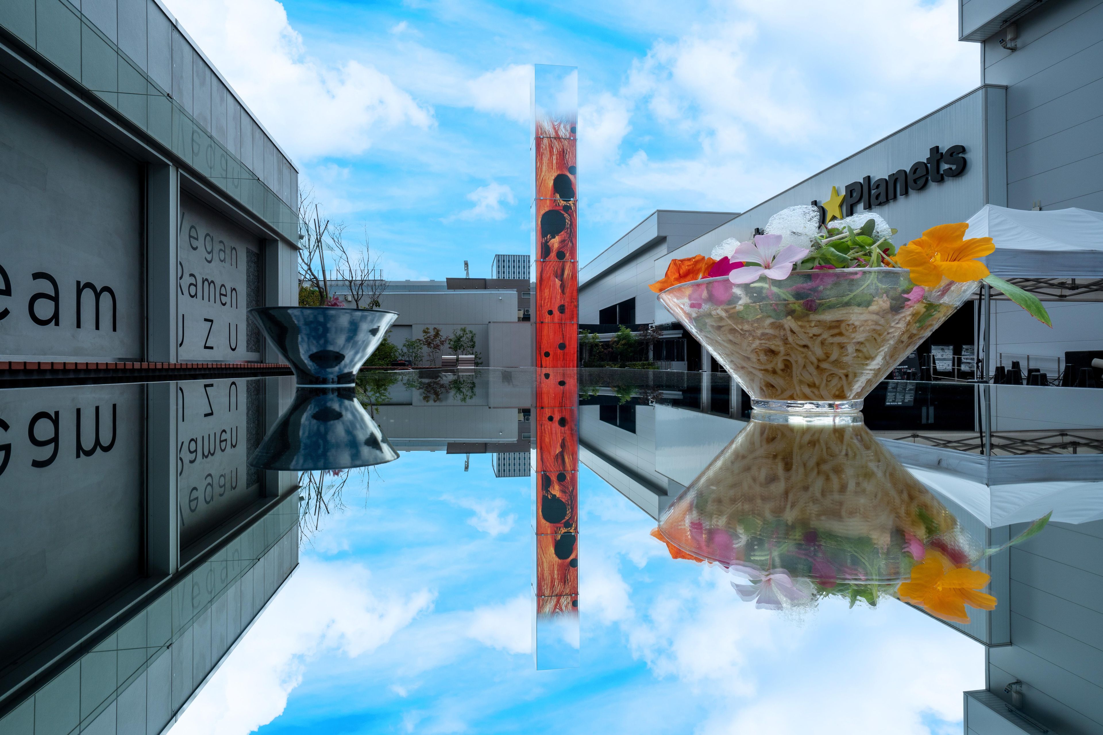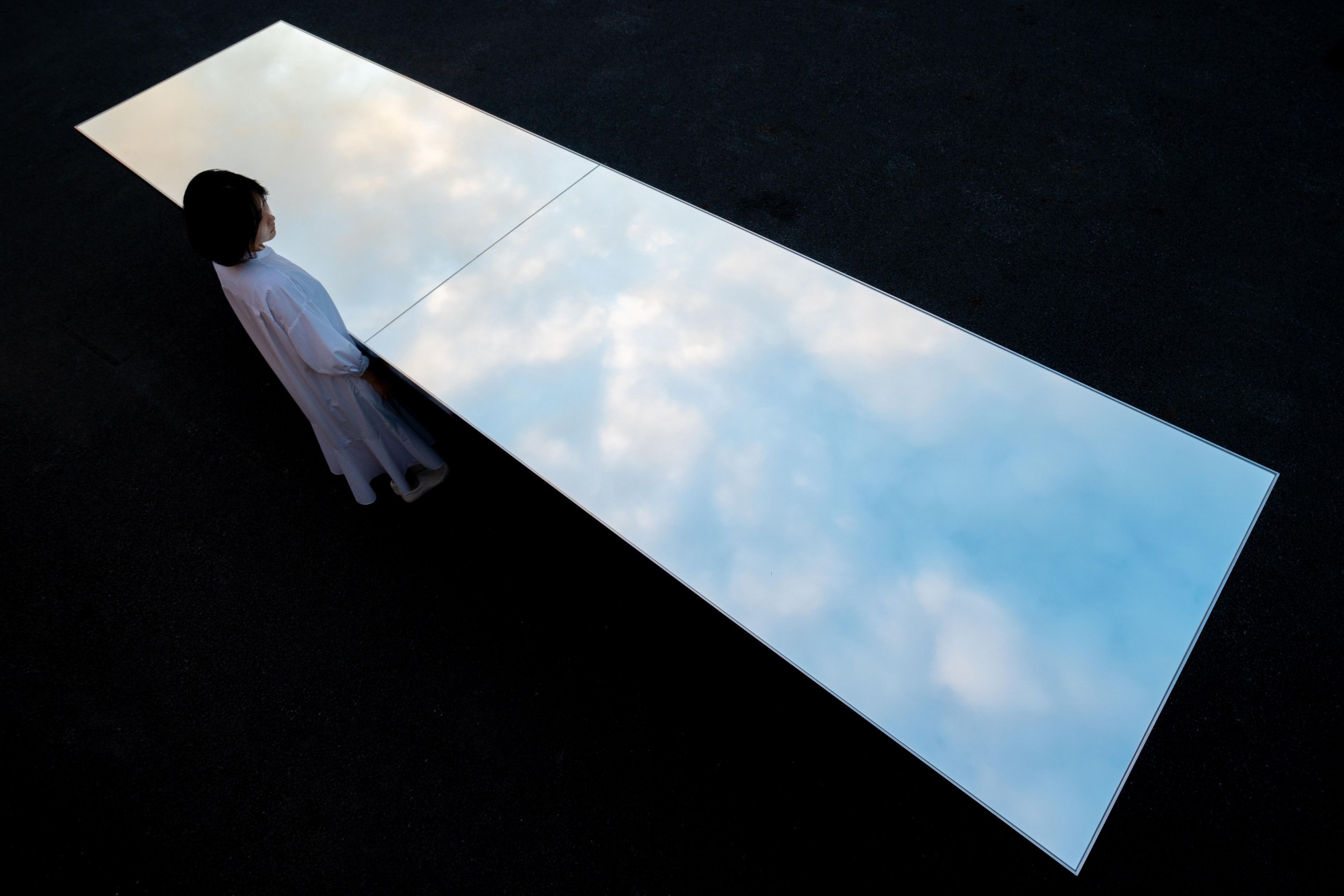 This table reflects the sky and the Universe of Fire Particles Falling from the Sky. The table is connected to the artwork and to the sky.