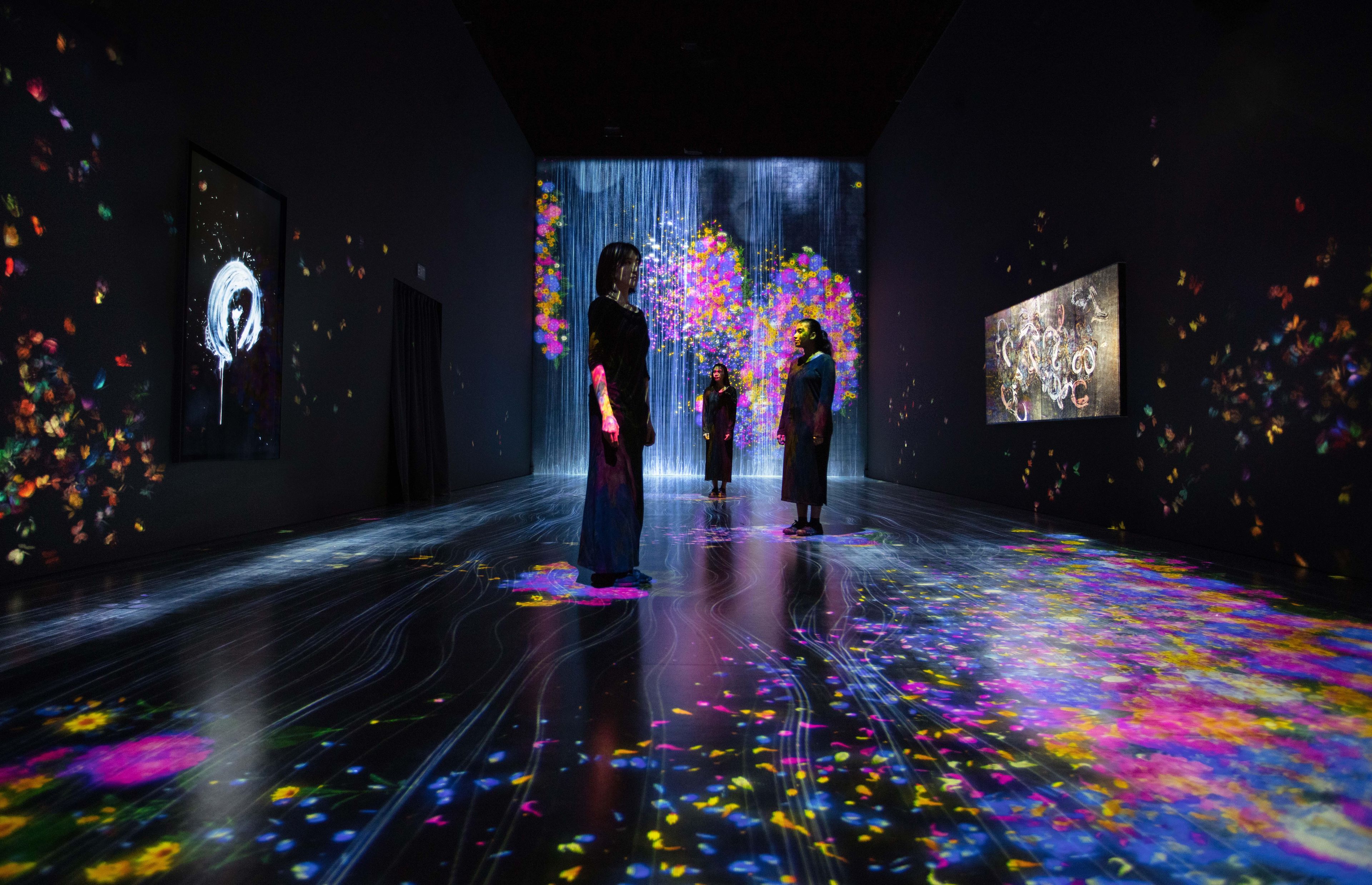 Flowers are born, grow, bloom, and eventually scatter and die. The cycle of birth and death repeats itself in perpetuity. If people stay still, more flowers are born. If people touch the flowers and walk around the space, the flowers scatter all at once.