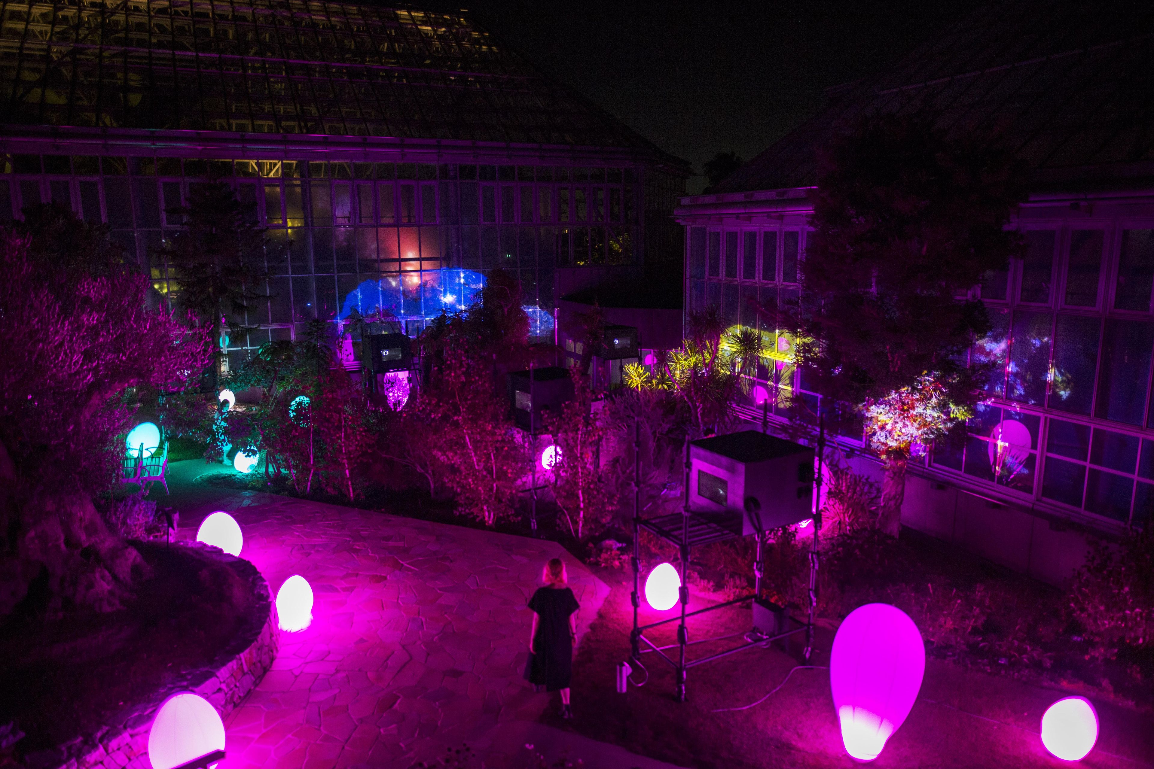 The floating ovoids of light are autonomous, they shine brightly and then fade slowly as if gently breathing.