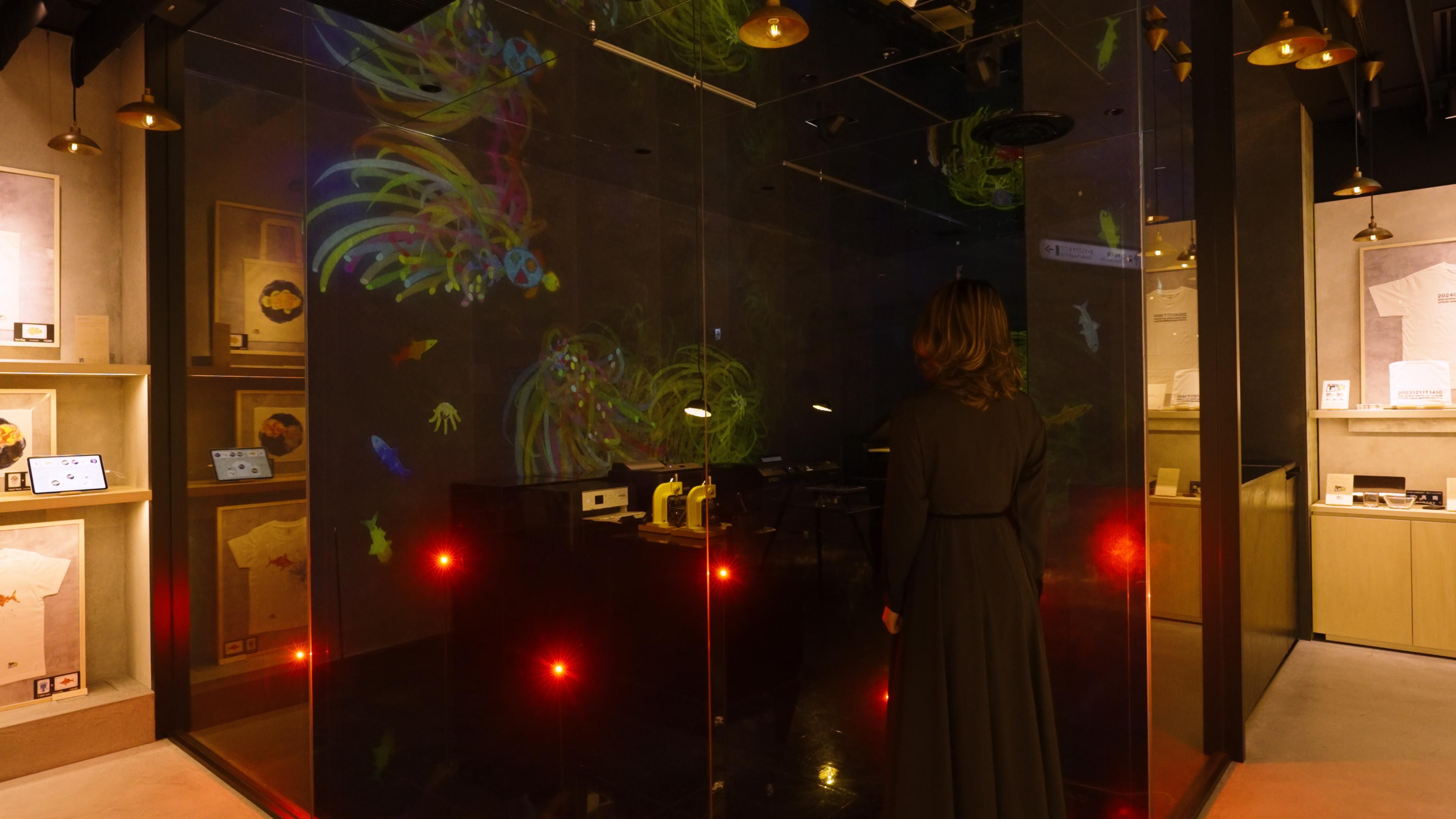 A factory where the fish that you draw can be made into an original gift (tin badge, hand towel, T-shirt, tote bag or papercraft) and taken home.
