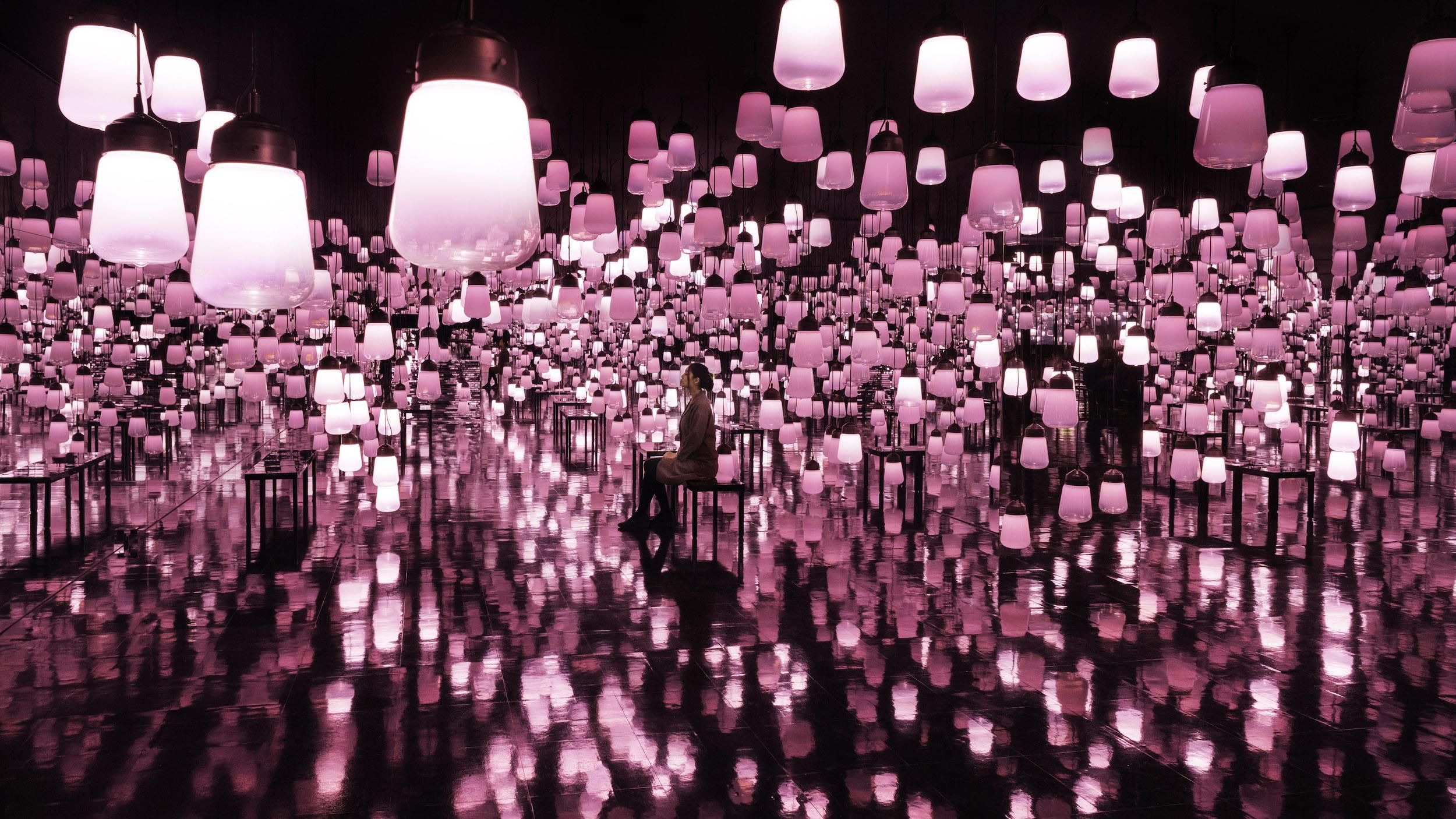 This is an artwork about the continuity of light, which is generated as people move around freely and interact with the lamps.