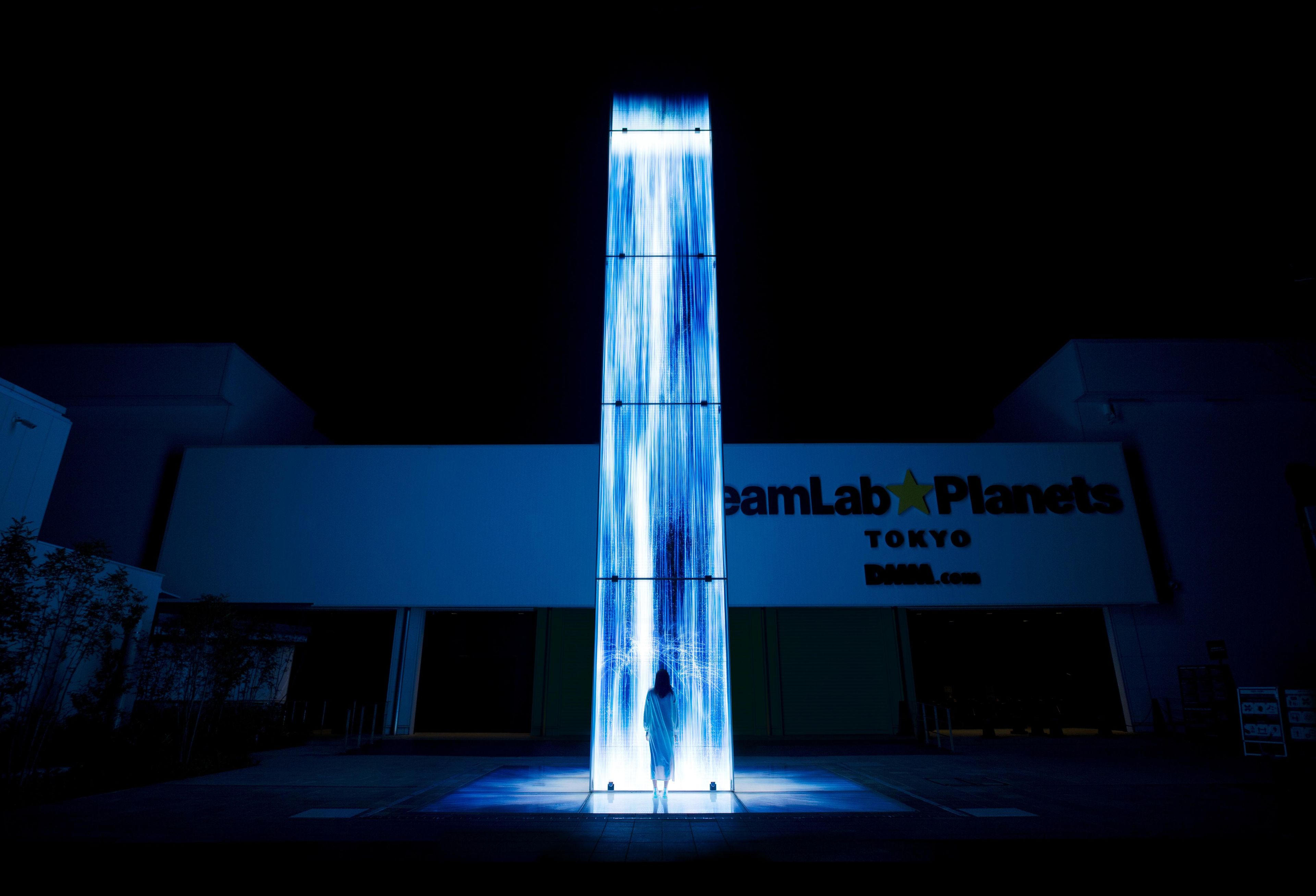 Water is represented as a continuum of numerous water particles. The interaction between the particles is calculated, and lines are drawn in relation to the behavior of the water particles. The lines are “flattened” using what teamLab considers to be Ultrasubjective Space.