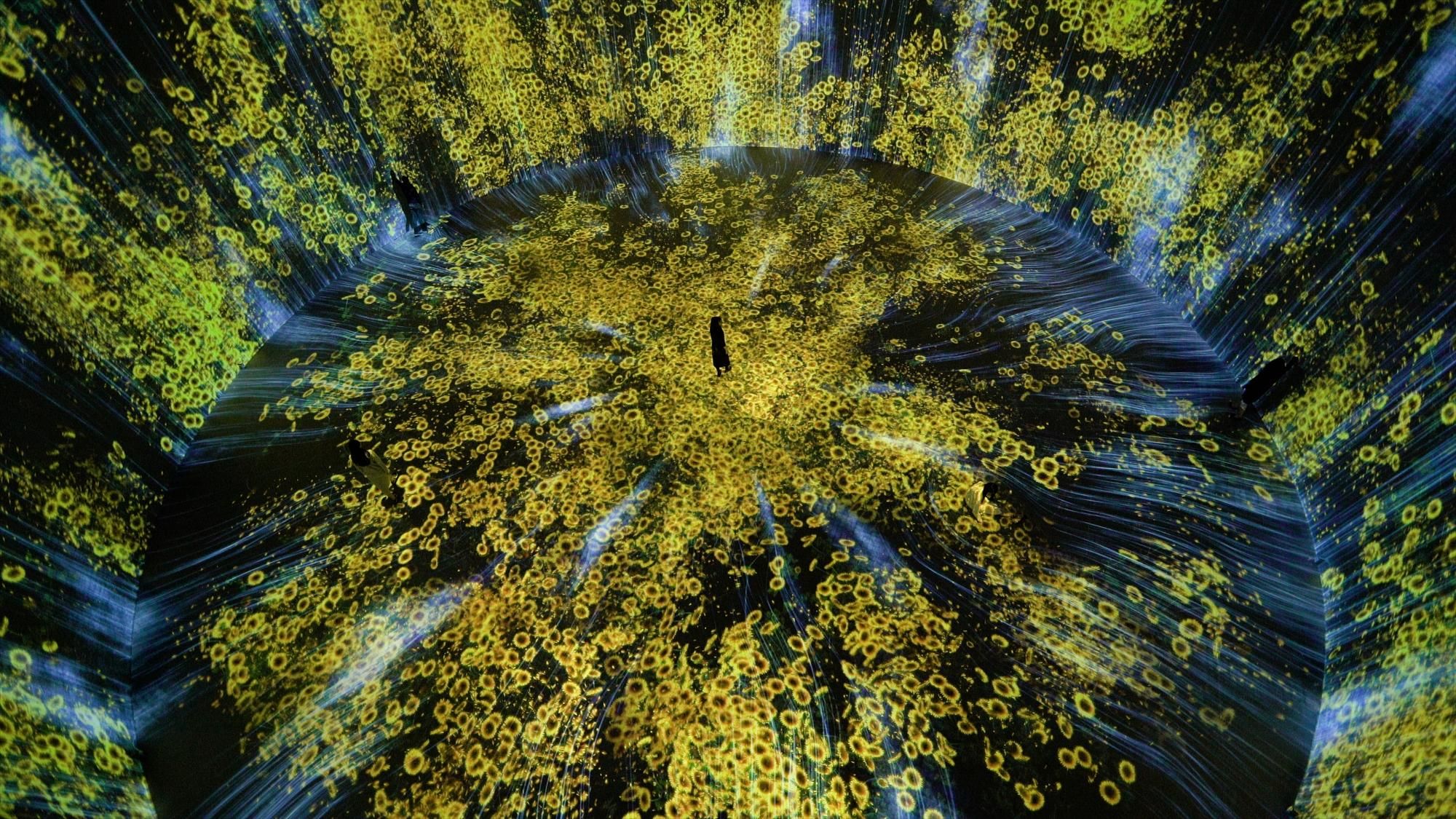teamLab (f. 2001) is an international art collective. Their collaborative practice seeks to navigate the confluence of art, science, technology, and the natural world. Through art, the interdisciplinary group of specialists, including artists, programmers, engineers, CG animators, mathematicians, and architects, aims to explore the relationship between the self and the world, and new forms of perception.