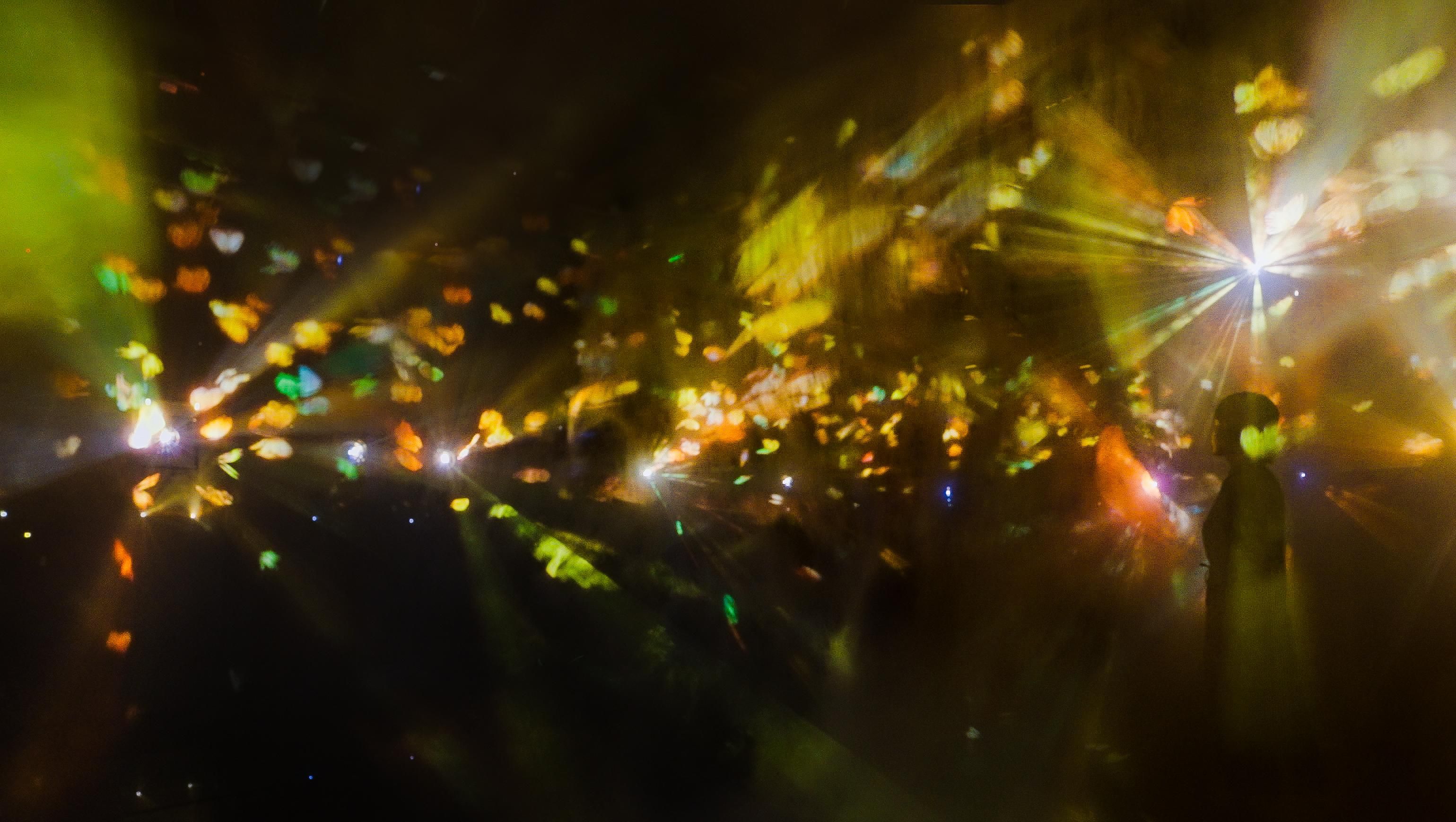 The artwork begins when Flutter of Butterflies Beyond Borders enters the Dissolving Light space. It ends when, Flutter of Butterflies Beyond Borders leaves.