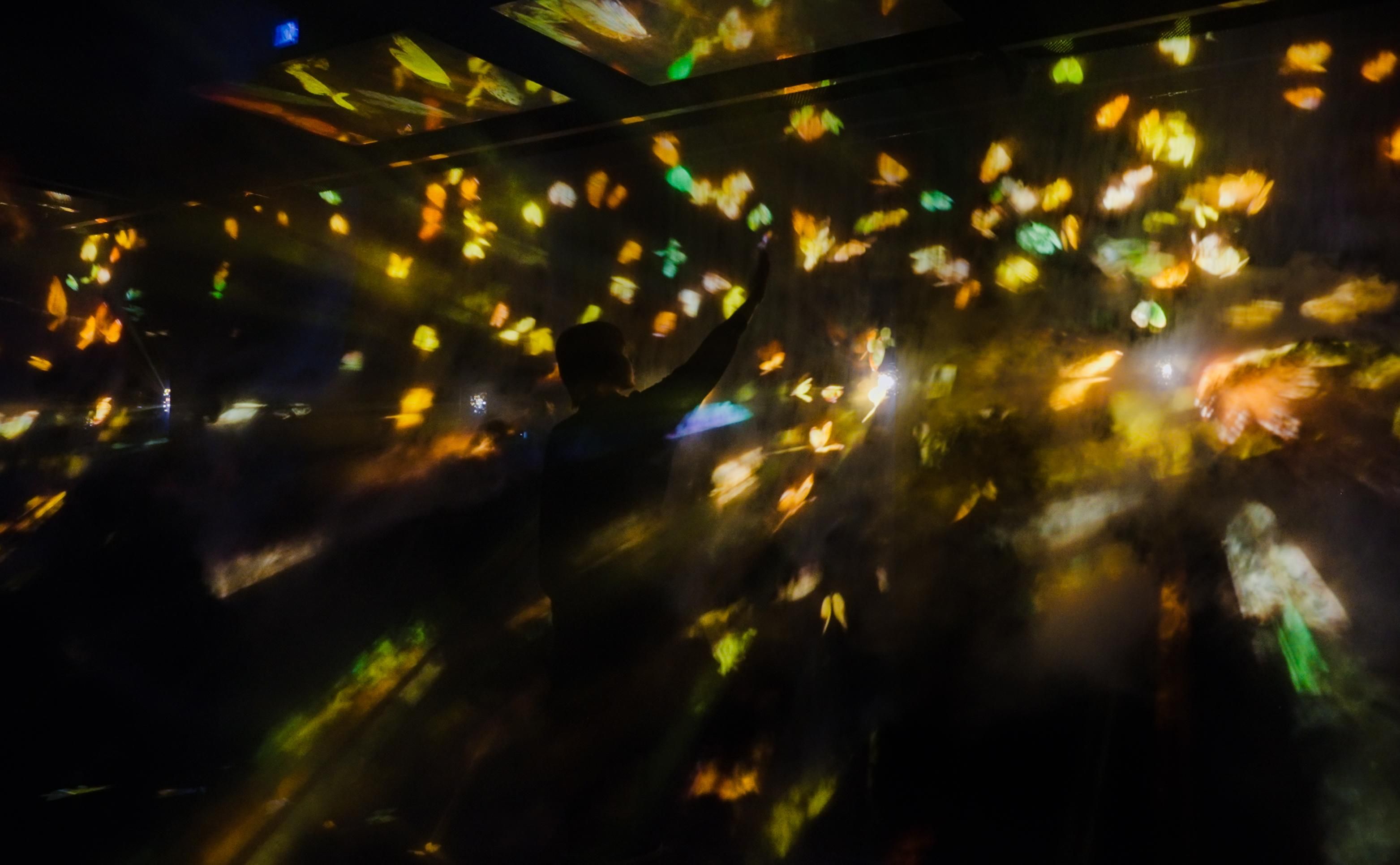 The butterflies are born at one with the space, then scatter and dissolve into the world.