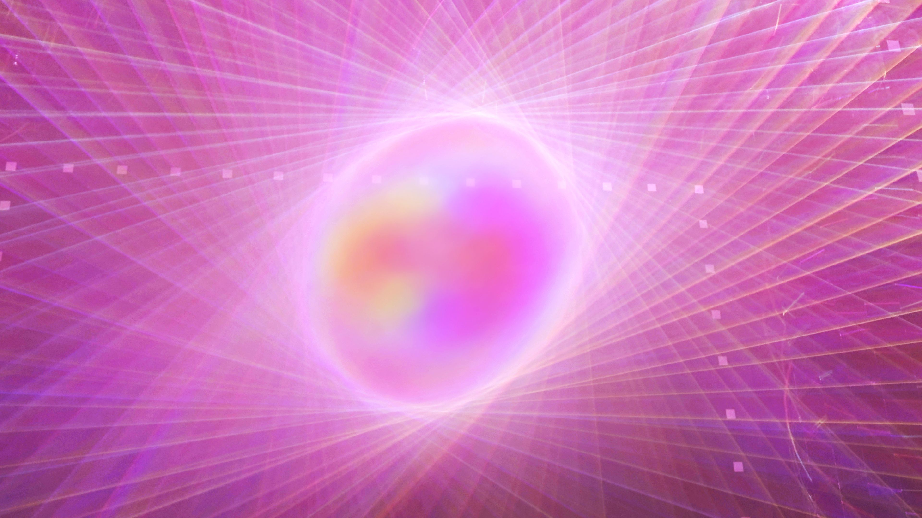 A sculpture composed of an order formed by a collection of light that flows continuously from the outside to the inside and from the inside to the outside.