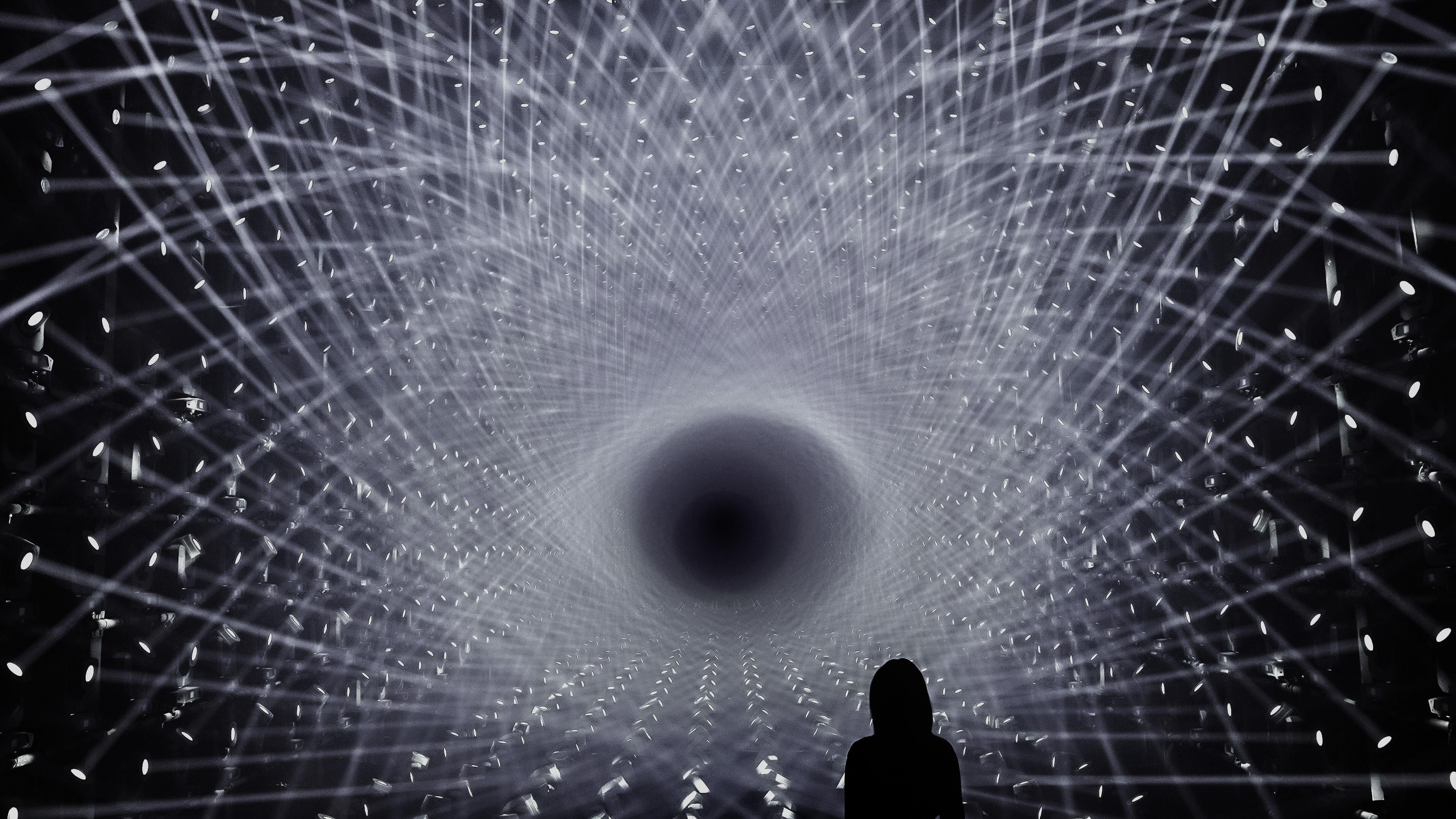 A sculpture made of a structure of light that continues to flow outward.