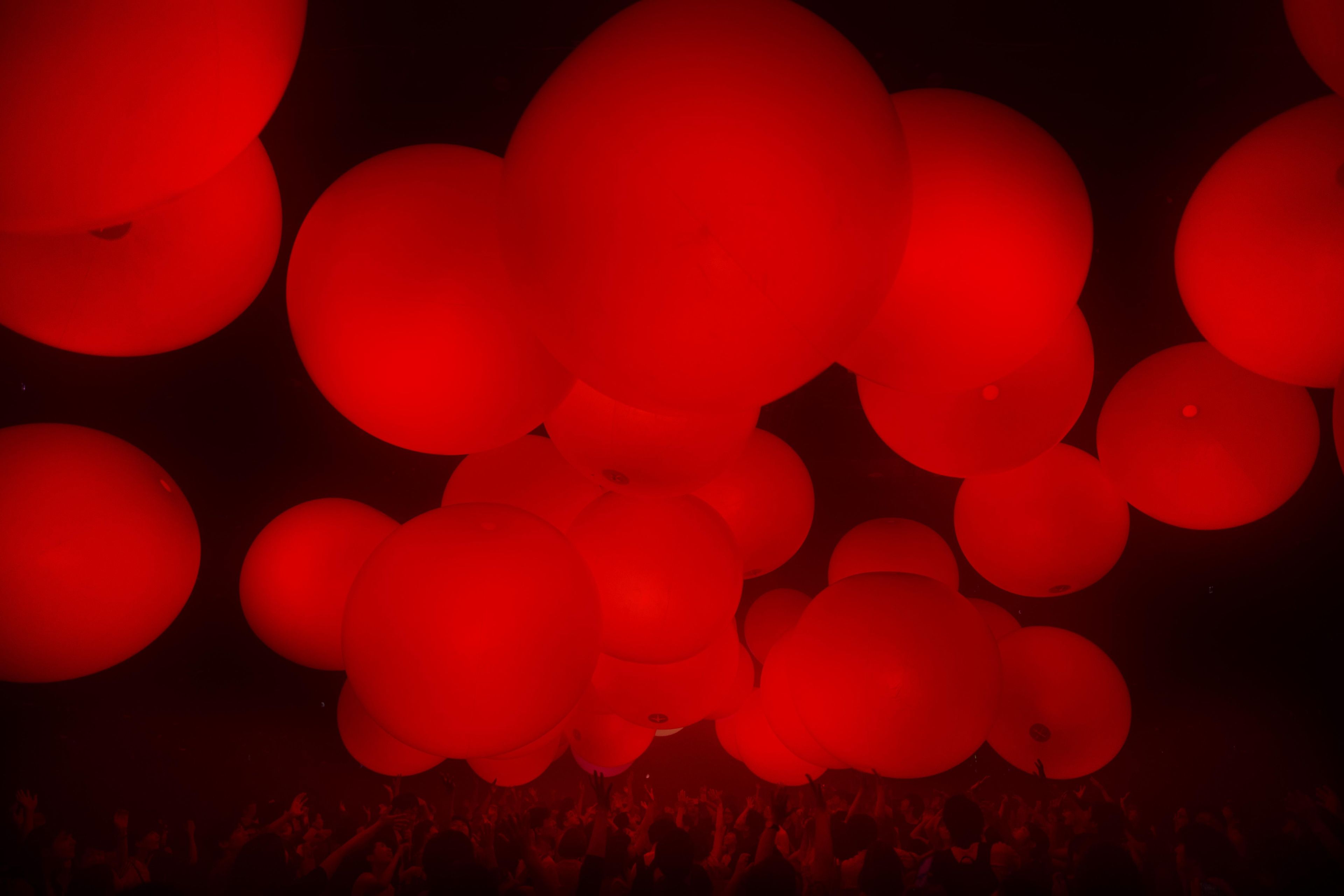 This is an attempt to turn the entire space into a three dimensional projection object in which the spheres float freely. The lights move in three directions around the space, whilst the light of each sphere moves physically with the sphere itself. The music changes depending on the sphere's location in space as well as other factors.