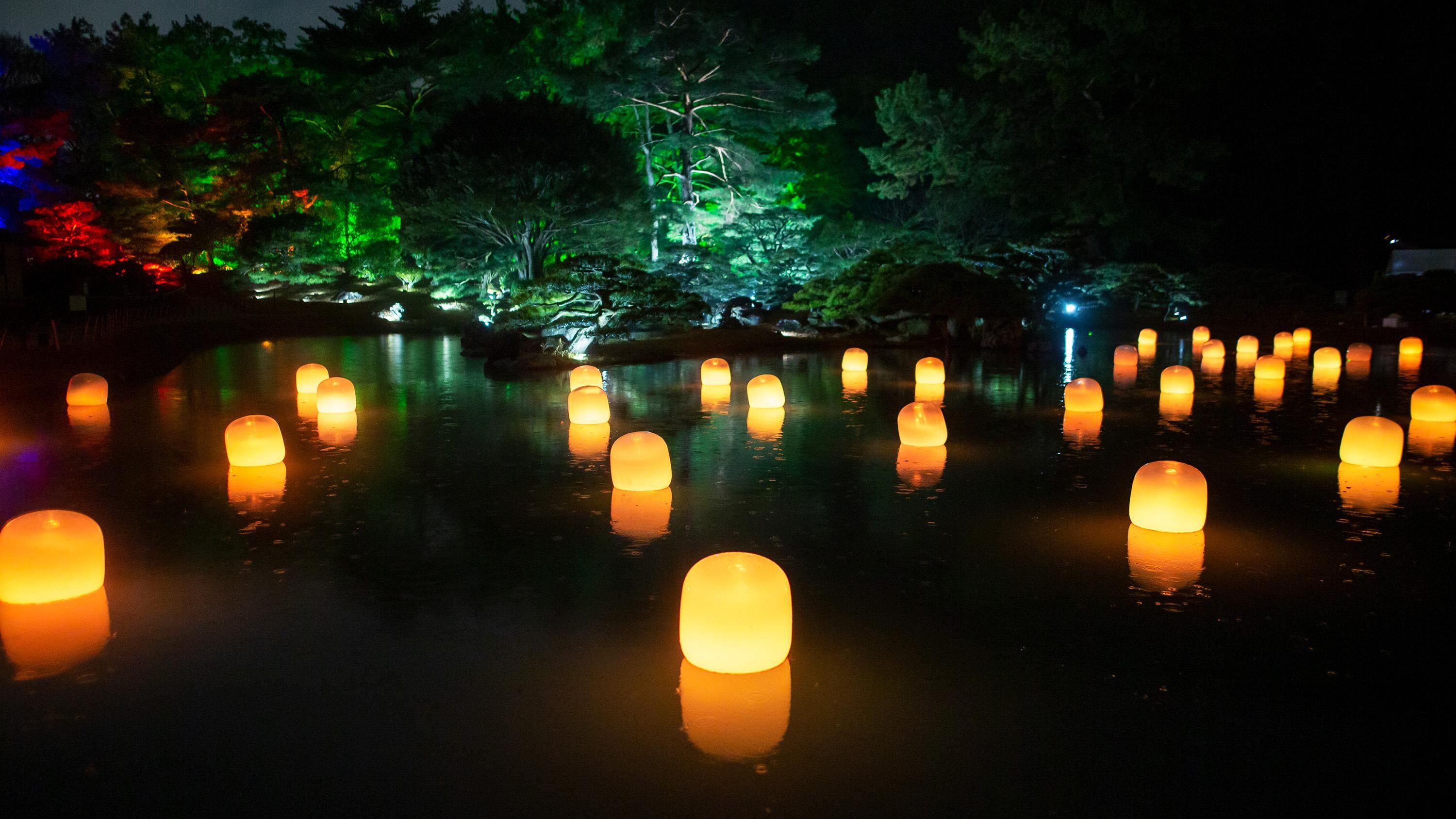 Each of the lamps on the water’s surface floats autonomously. When a person stands still near a lamp, or when the wind blows a lamp, it shines brightly and emits a sound. The light of that lamp is transmitted to nearby lamps one by one, as the sound is continuously emitted. The transmitted light always travels through each of the lamps only once, shining brightly, as it propagates through all of the lamps, continuing on to Life is Continuous Light on the island in the center of the pond. People become aware of the presence of others in the same space.