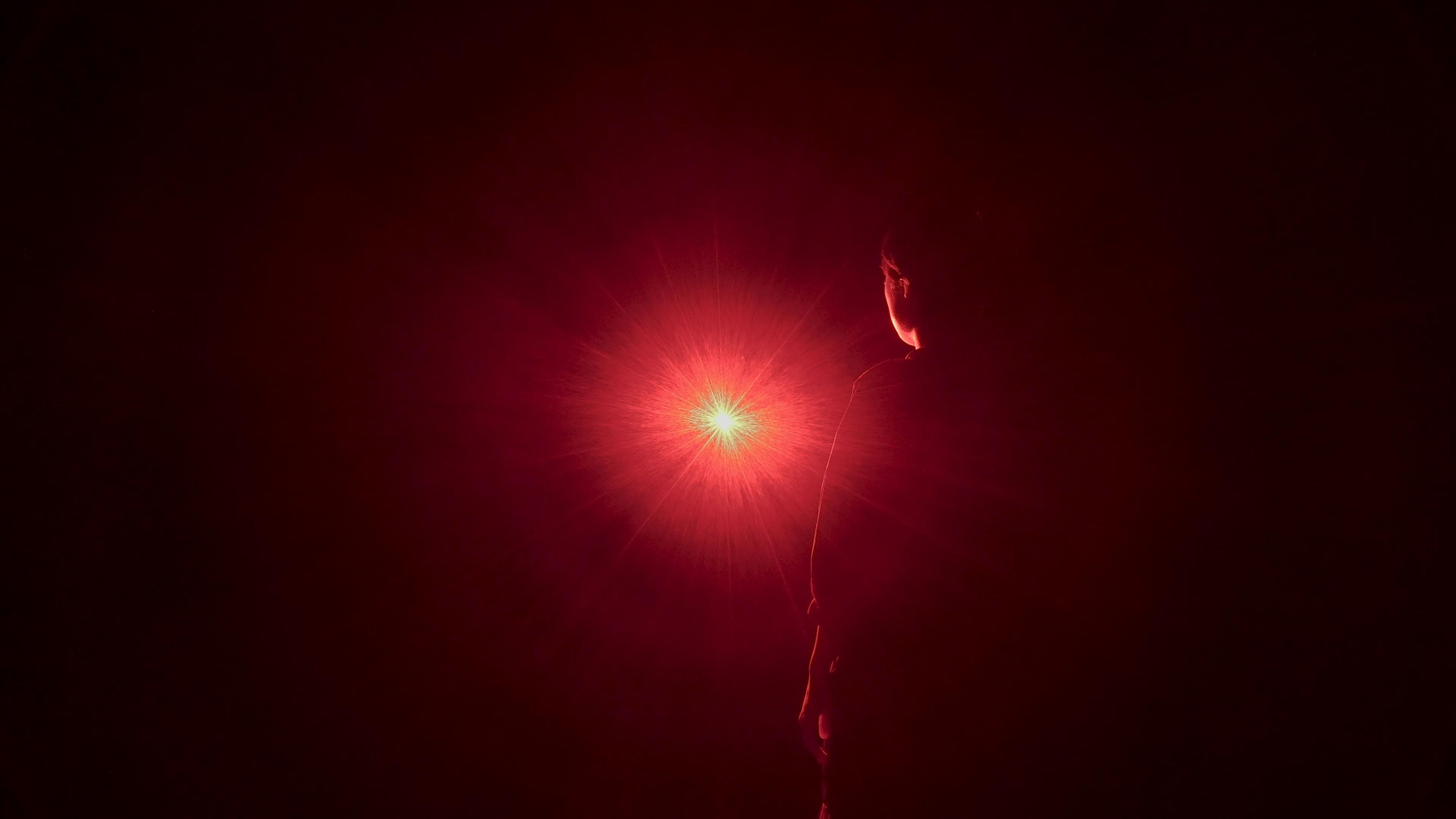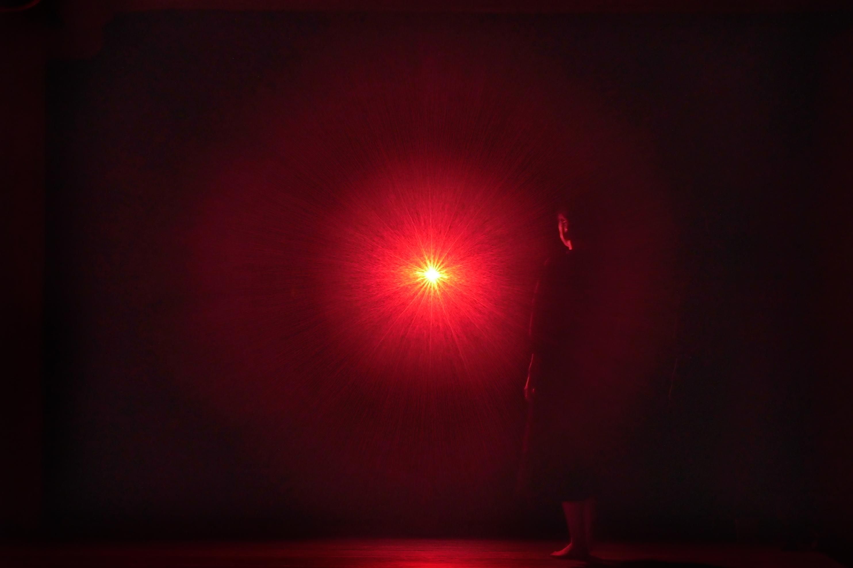 The light radiates from the center in infinite fine rays, creating its spherical shape. The light source remains motionless, yet the countless lines emitting from it wriggle continuously.