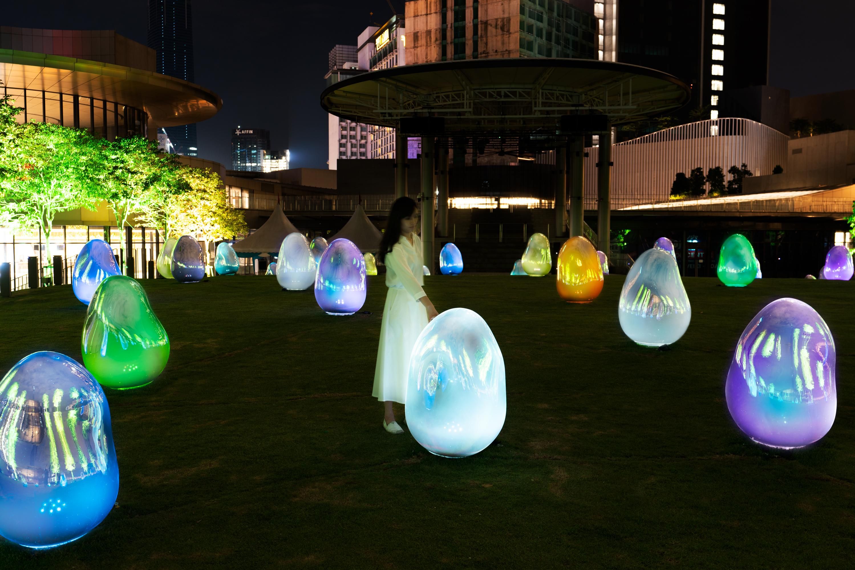 teamLab is experimenting with the concept of color. The ovoids can change into a total of 57 newly-defined Liquified Light Colors.