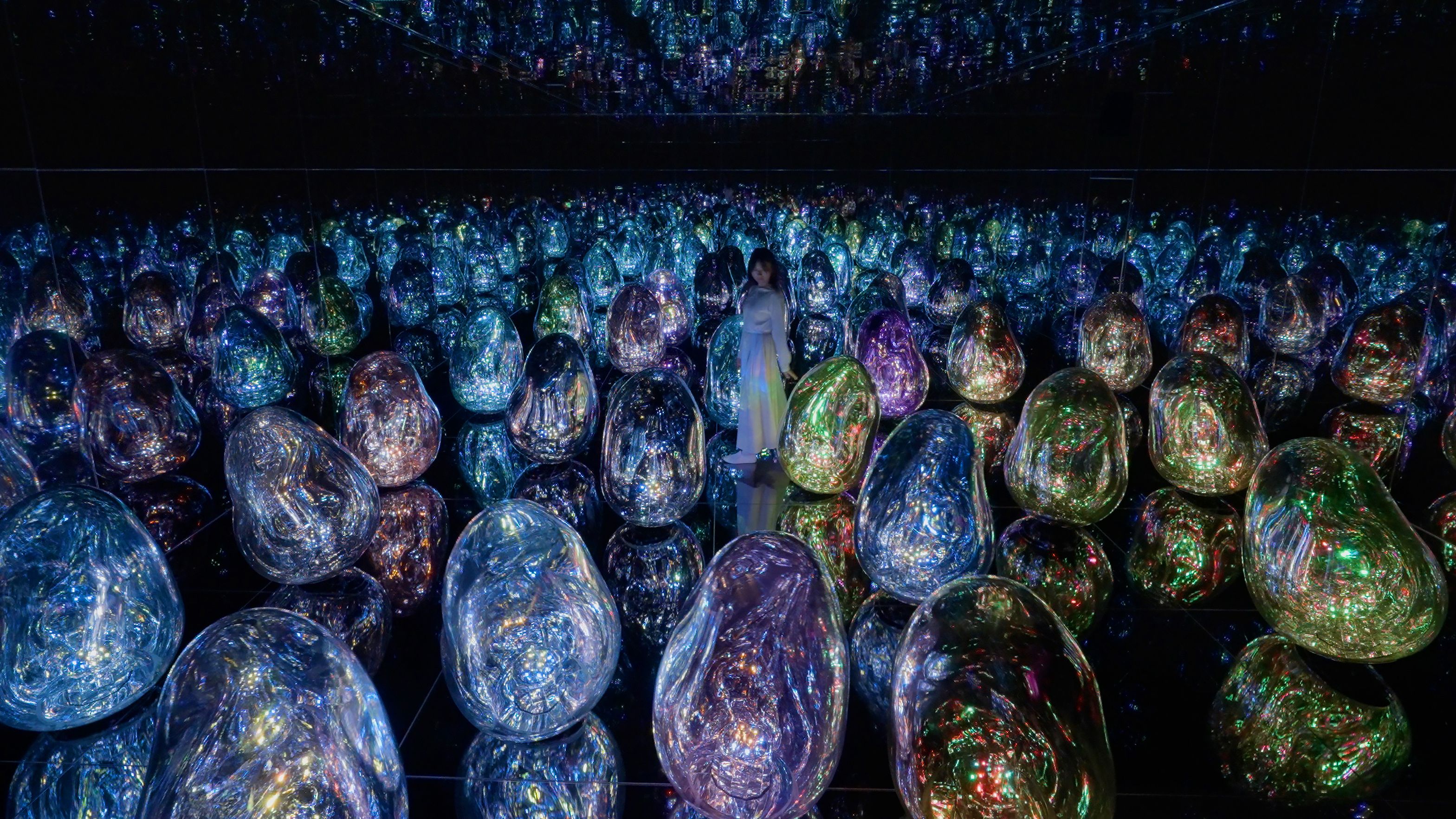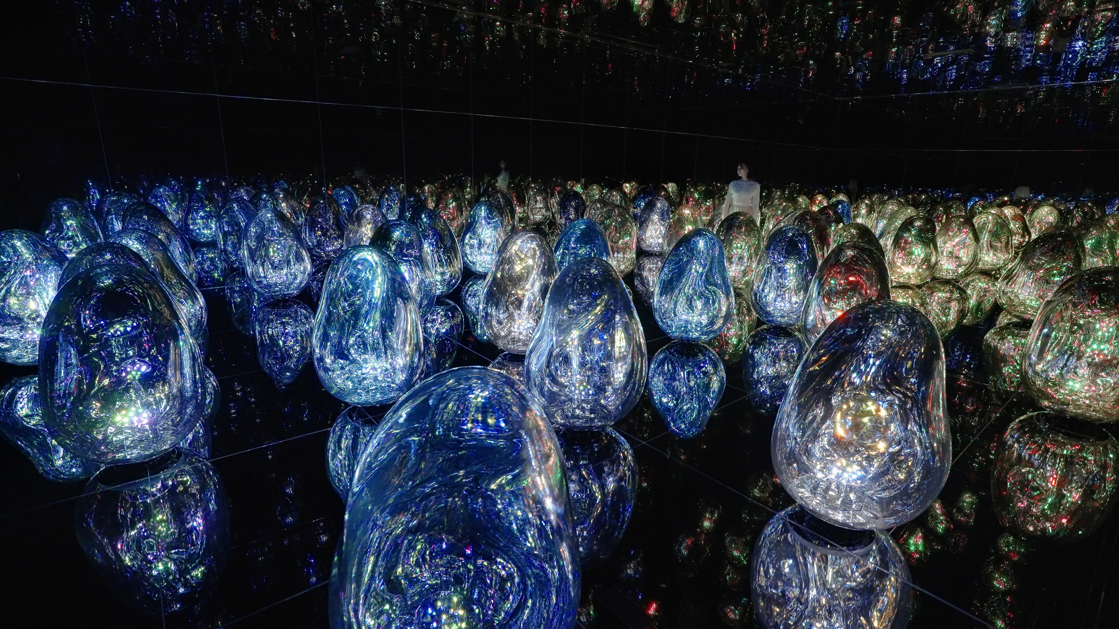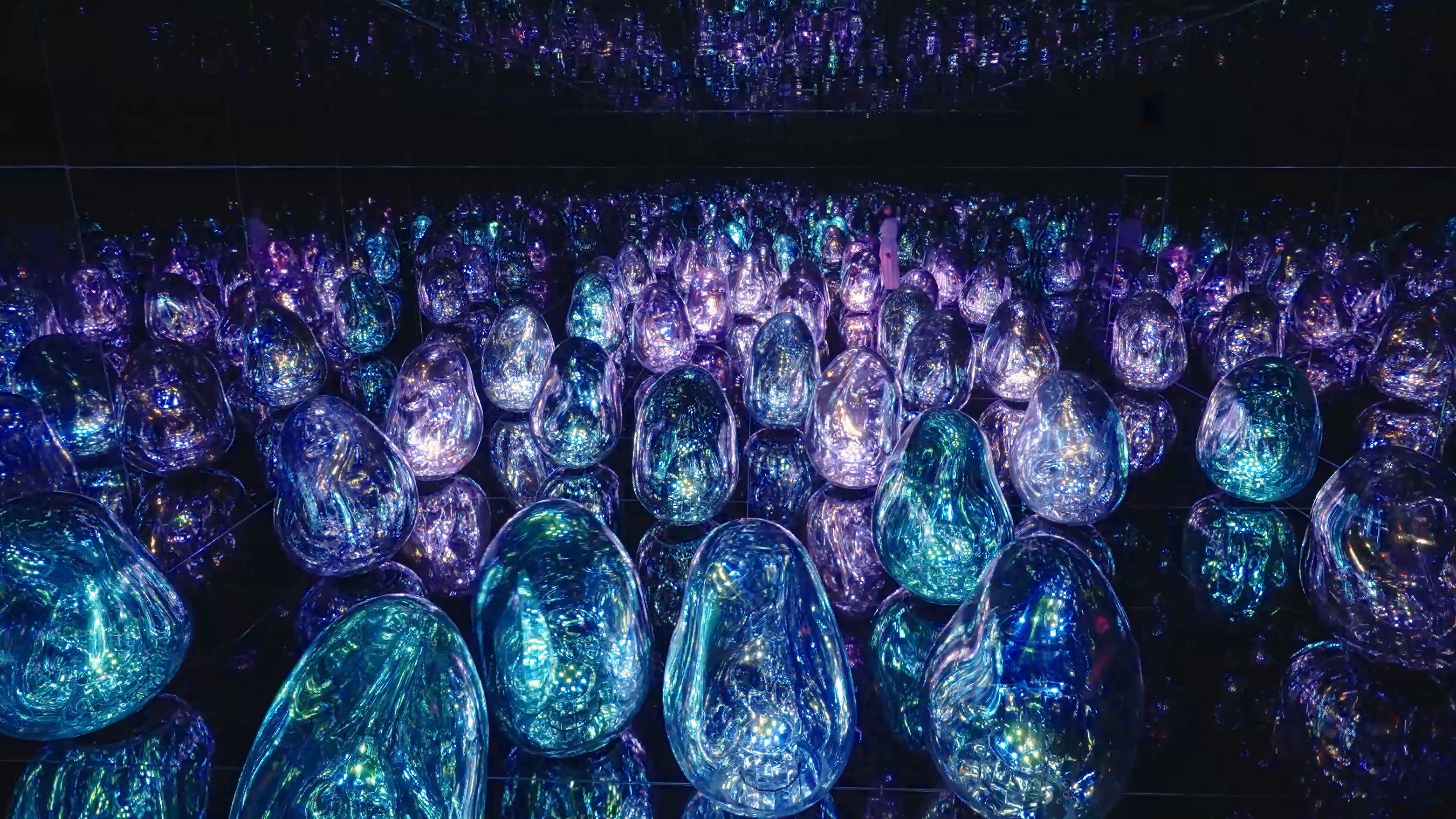 teamLab is experimenting with the concept of color. The ovoids can change into a total of 32 newly-defined Solidified Light Colors.