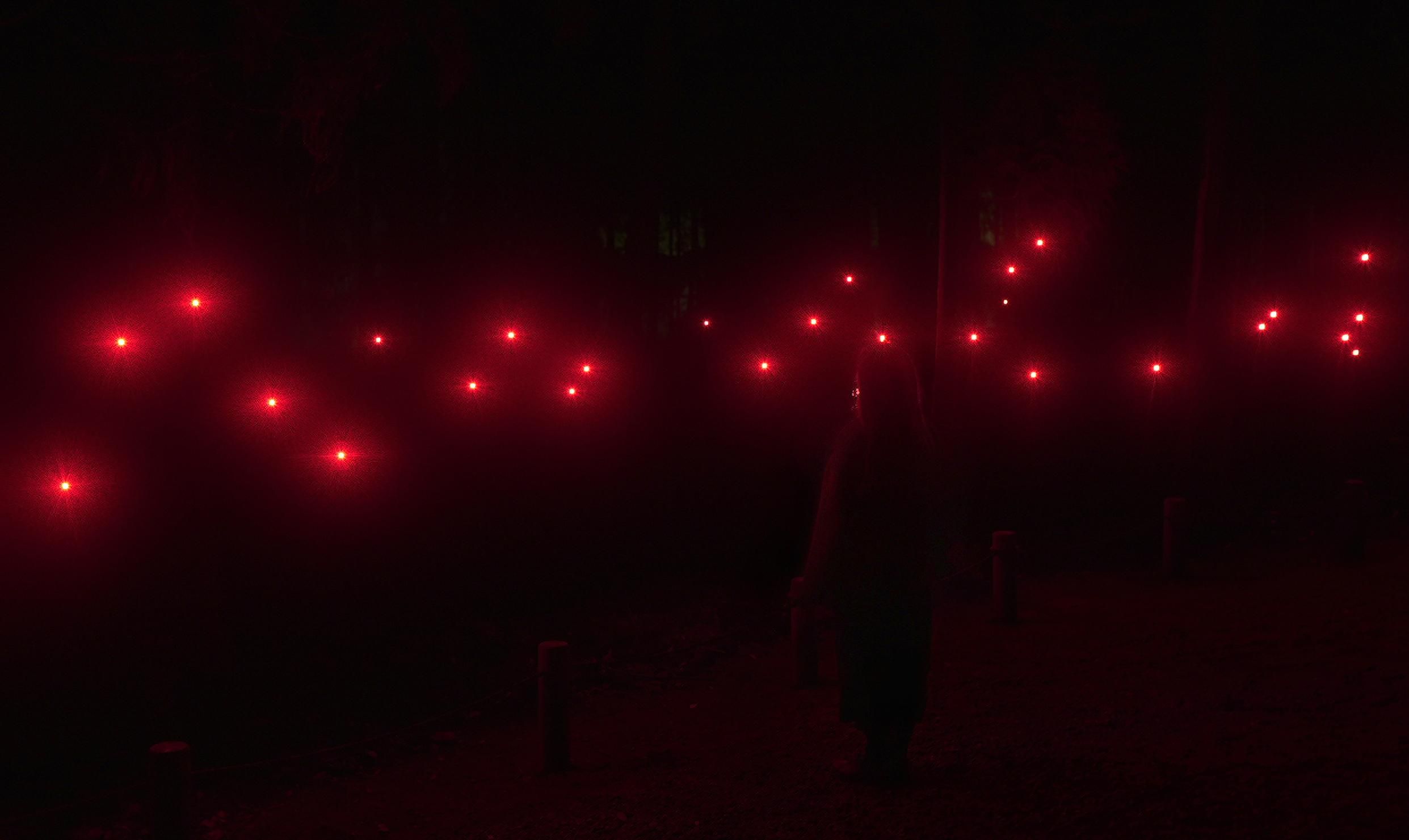 The spheres have no surface boundary, and the perception of the boundary between the artwork and the body is ambiguous. When you try to touch a sphere, your hand goes into the sphere.