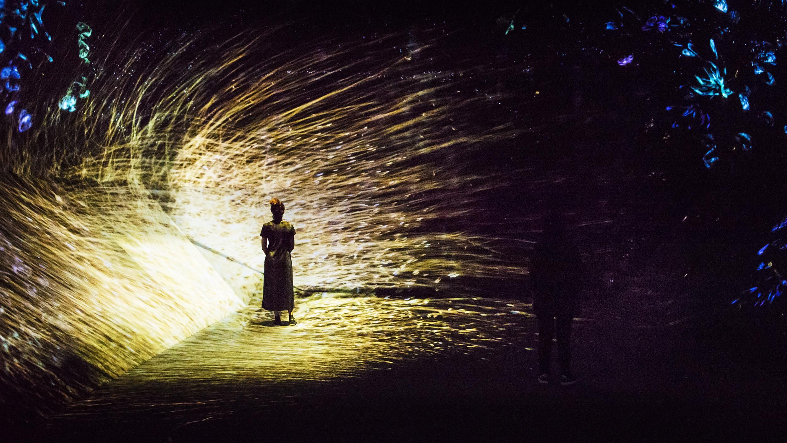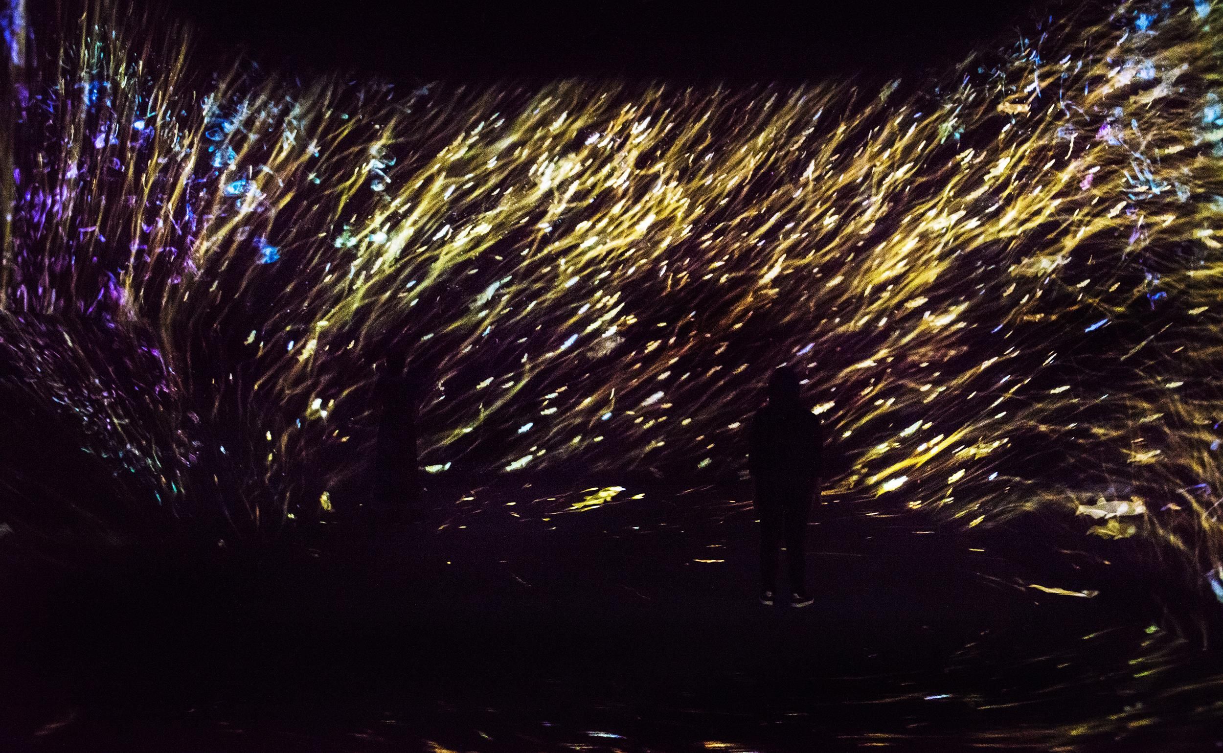 Interactive digital installation where all sides and the floor are covered with imagery.