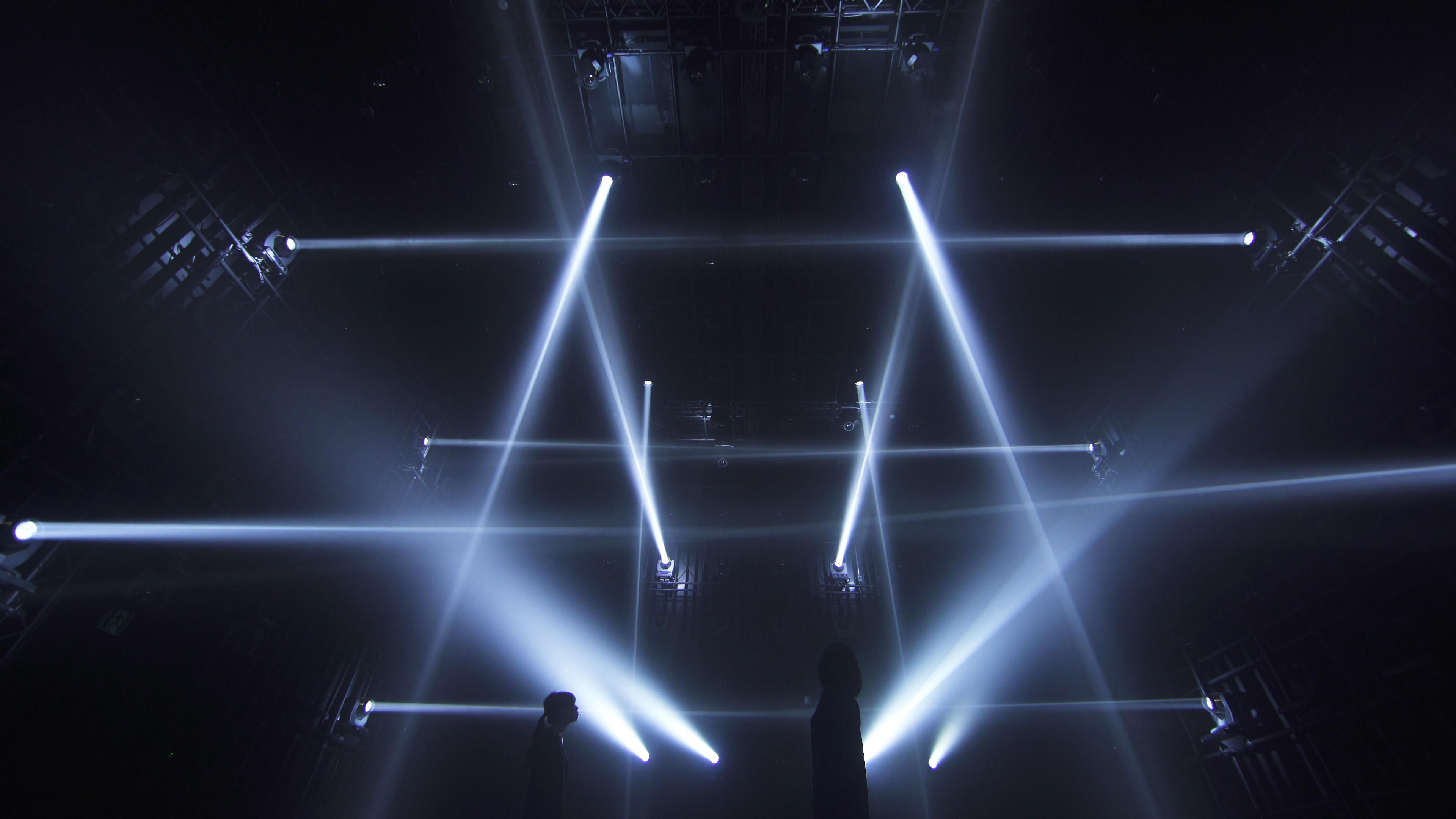 Light Sculpture - Line series. Reconstruction of space and three-dimensional objects with light lines. The space and three-dimensional objects move, wrapping around the body of people in the space, and immersing the body.