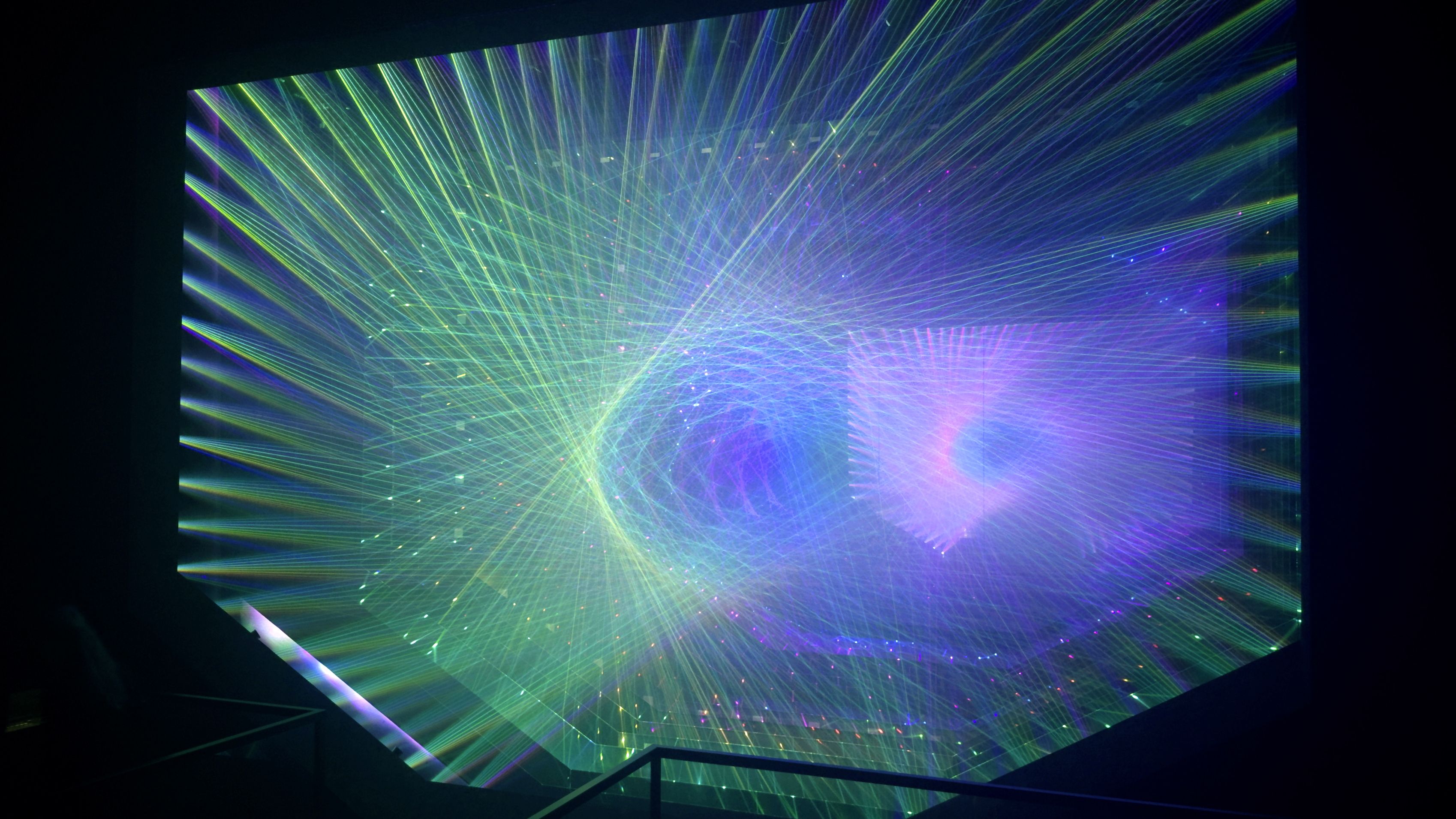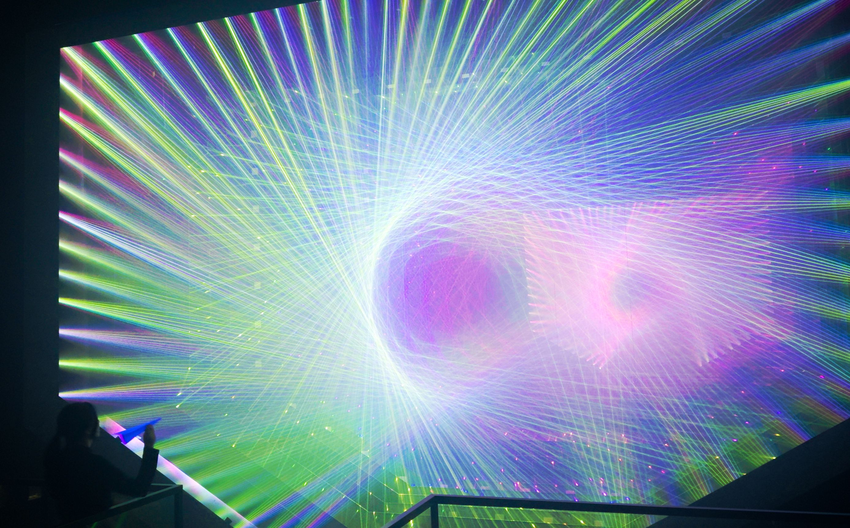 A sculpture composed of an order formed by a collection of light that flows continuously from the outside to the inside and from the inside to the outside.