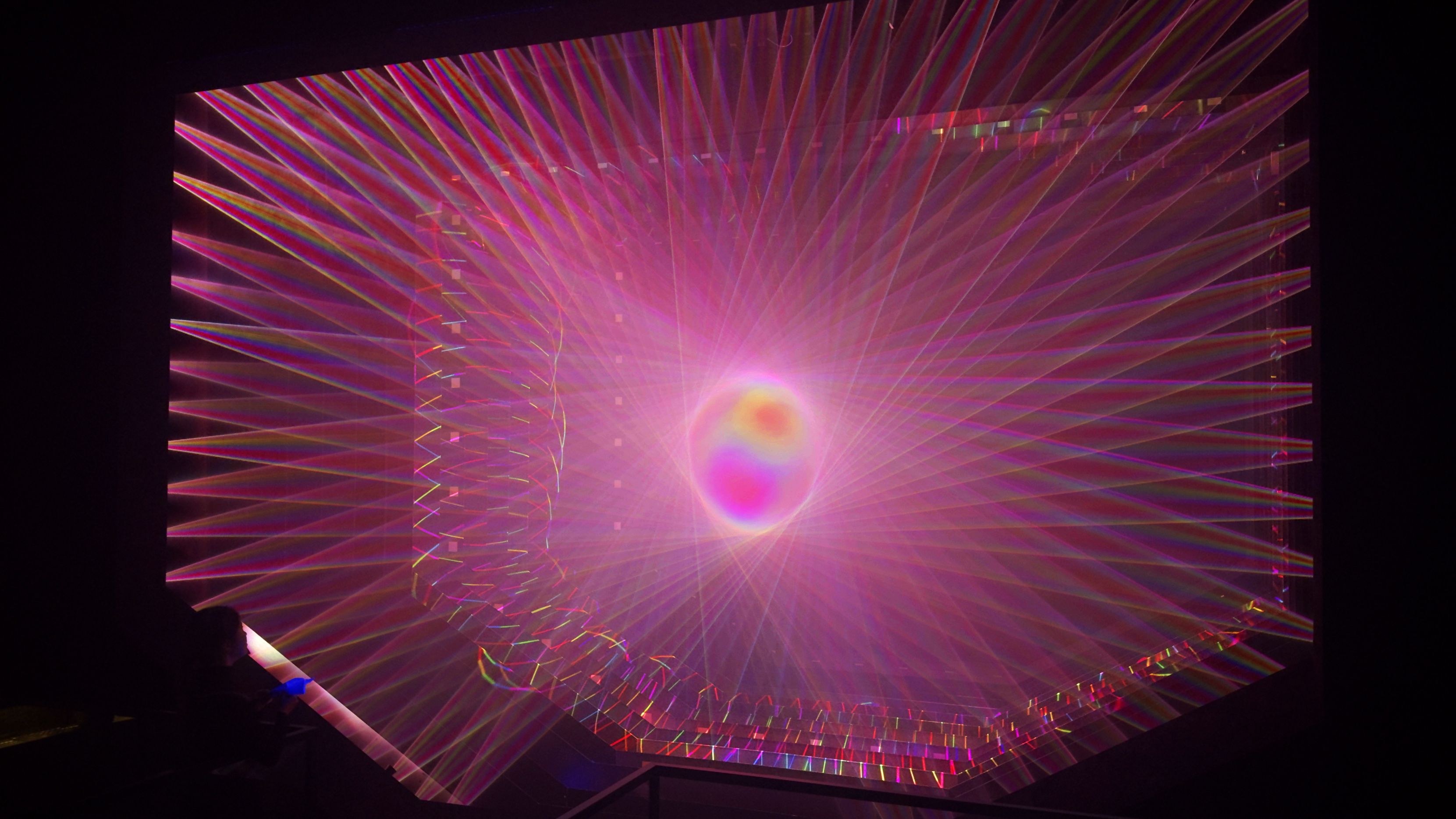 A sculpture composed of an order formed by a collection of light that flows continuously from the outside to the inside and from the inside to the outside.