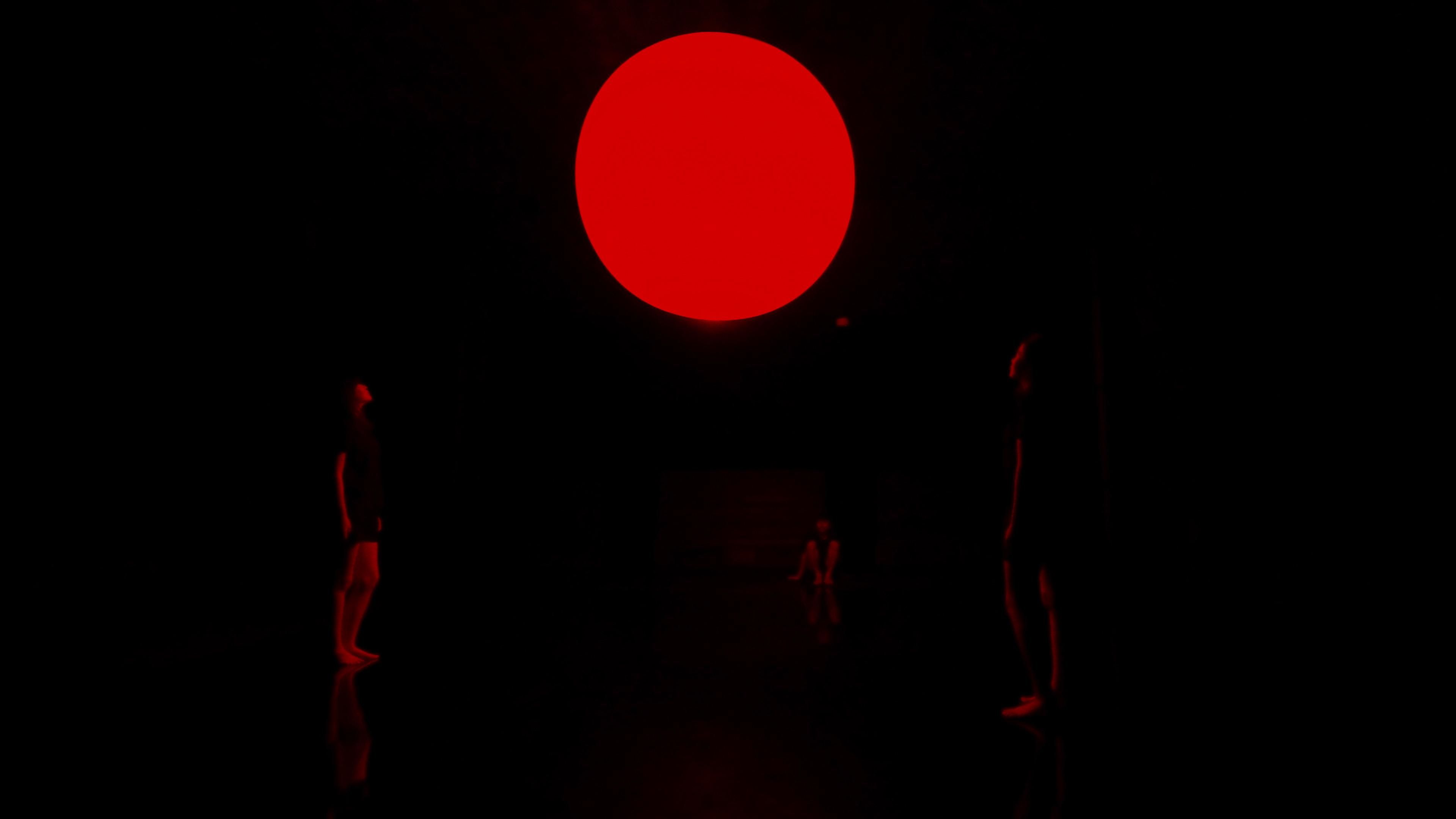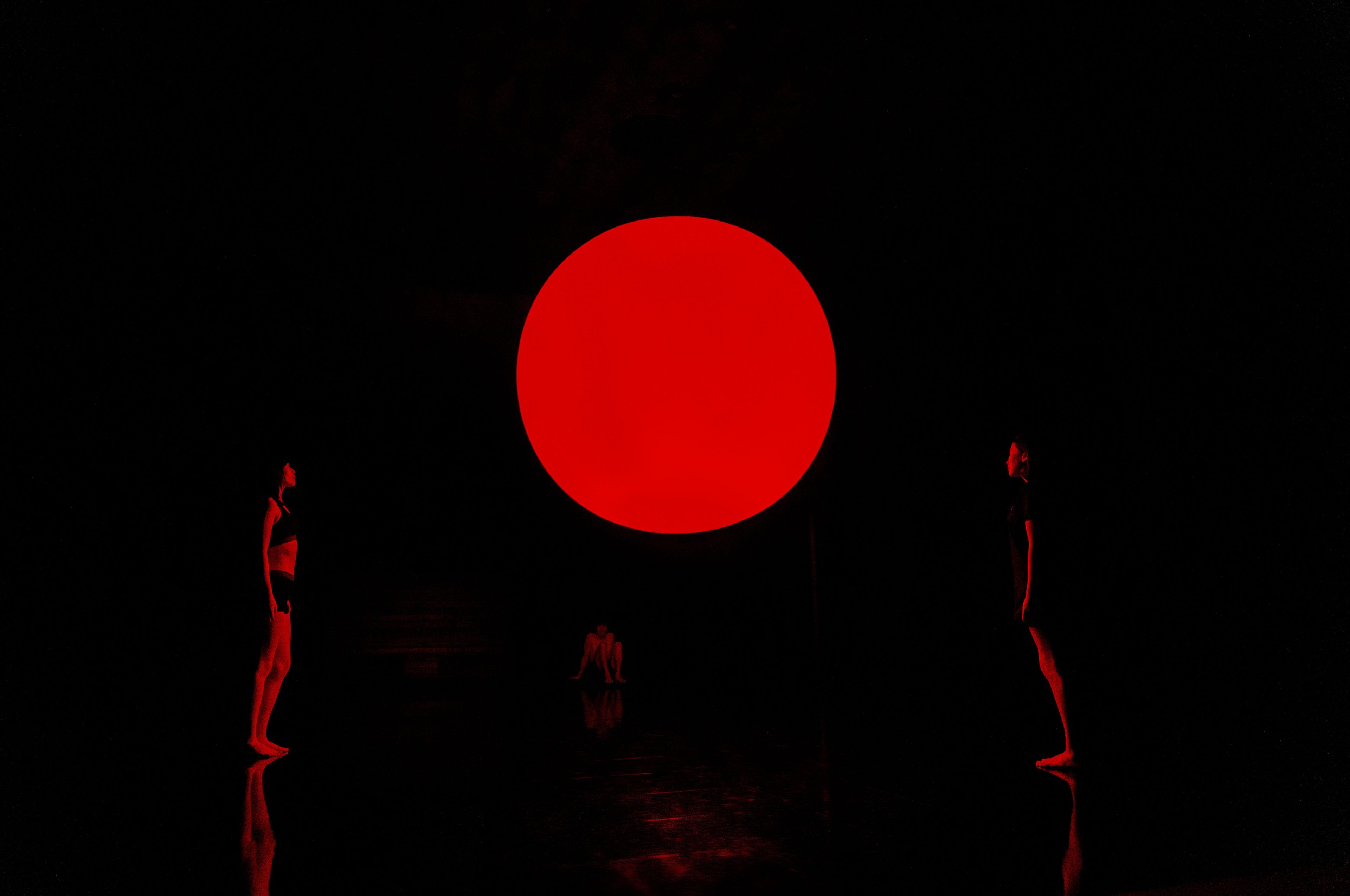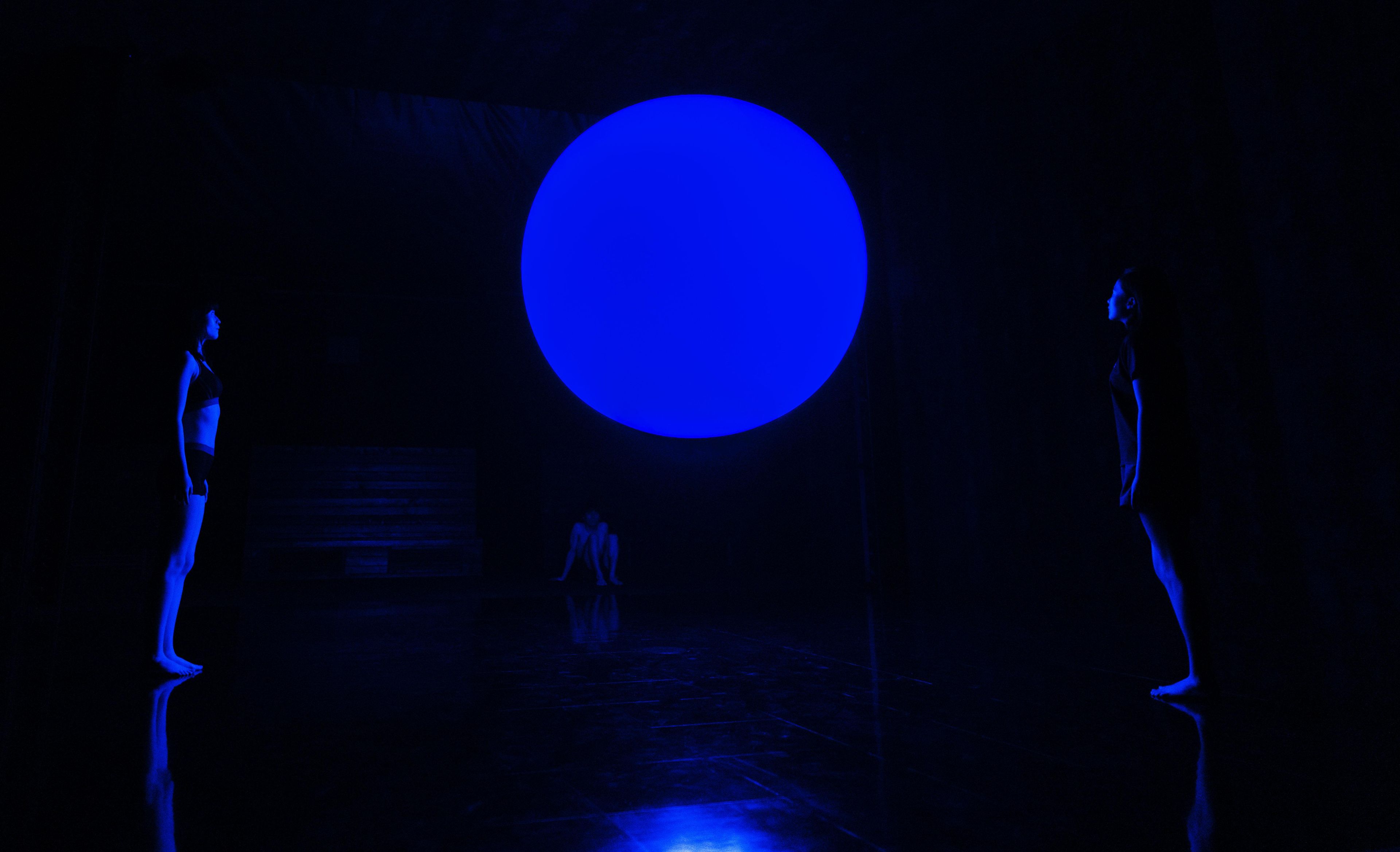 The sphere is not supported by anything. Nevertheless, through the order of energy, the sphere transcends the concept of mass: it levitates in the space between the floor and ceiling, floating up and down. When a person taps the sphere, it floats away, falls to the ground, and rolls away. But if there is no external interference, it will slowly rise into the air again, as though restoring itself to its original state.