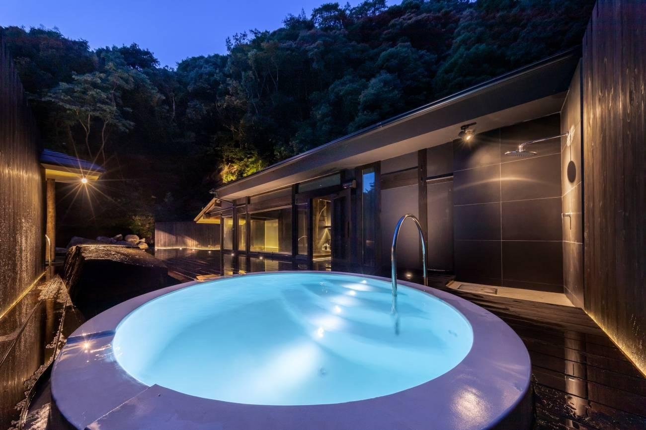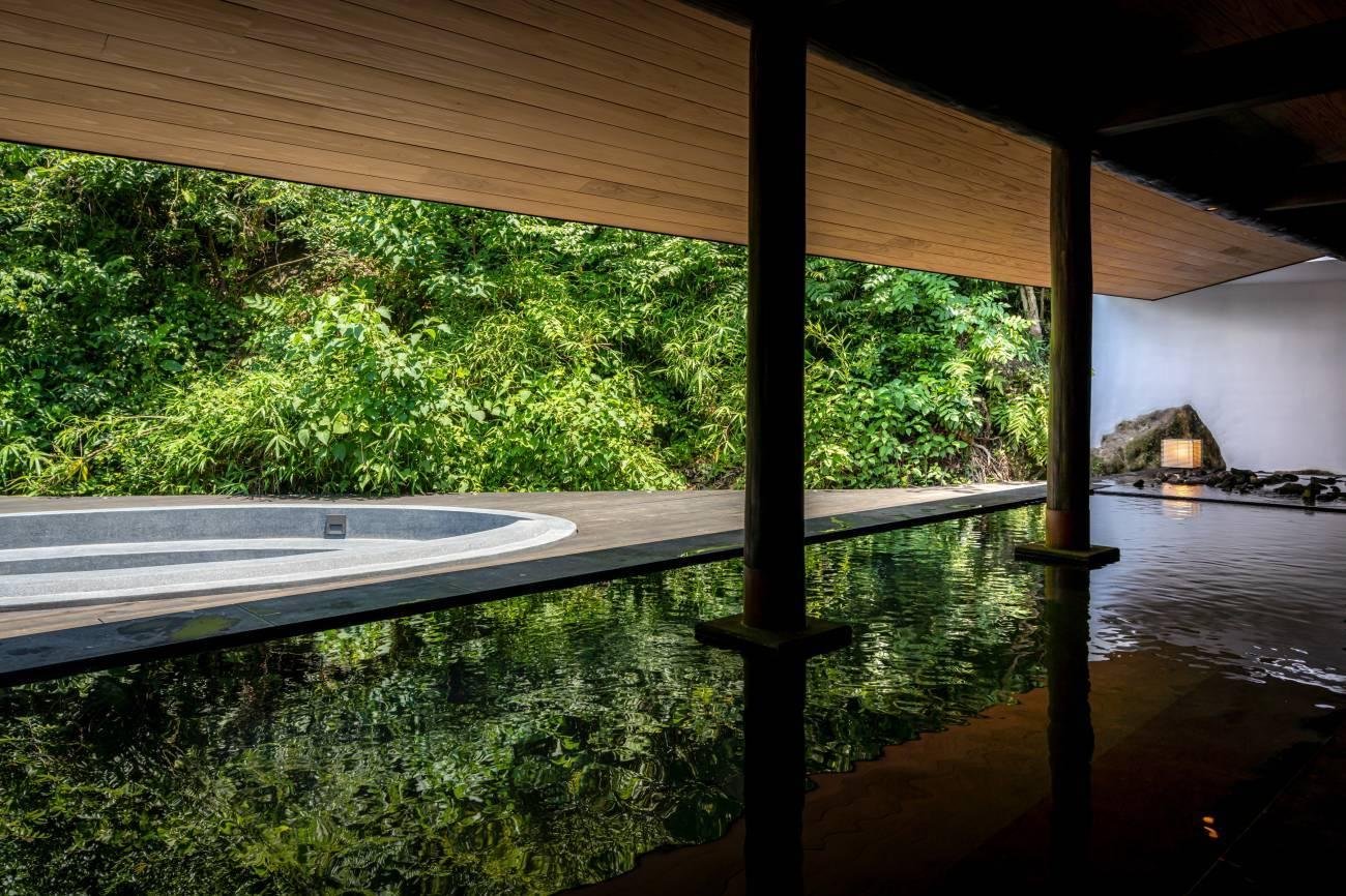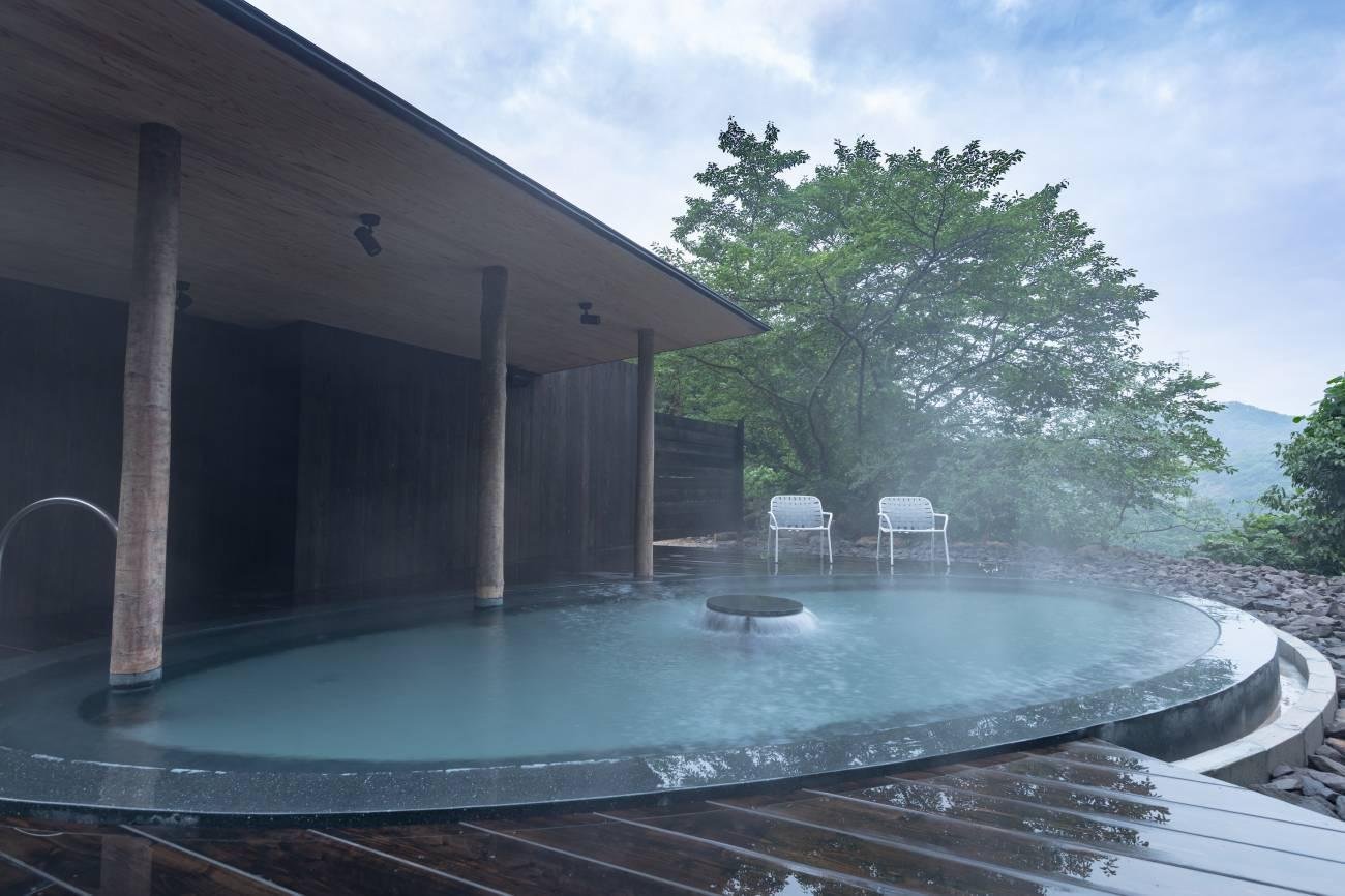 The large communal baths at Mifuneyama Rakuen Hotel have been completely renovated (both men's and women's). The men's bath now has a dry sauna where guests can enjoy löyly (pouring hot water on sauna stones to produce steam, uses natural water from Mt. Mifune and roasted tea from Ureshino, Saga). The men's bath also has a cold water bath with hot spring water cooled to 16 degrees Celcius, and a large open-air bath/bathing space surrounded by the nature of Mt. Mifune.