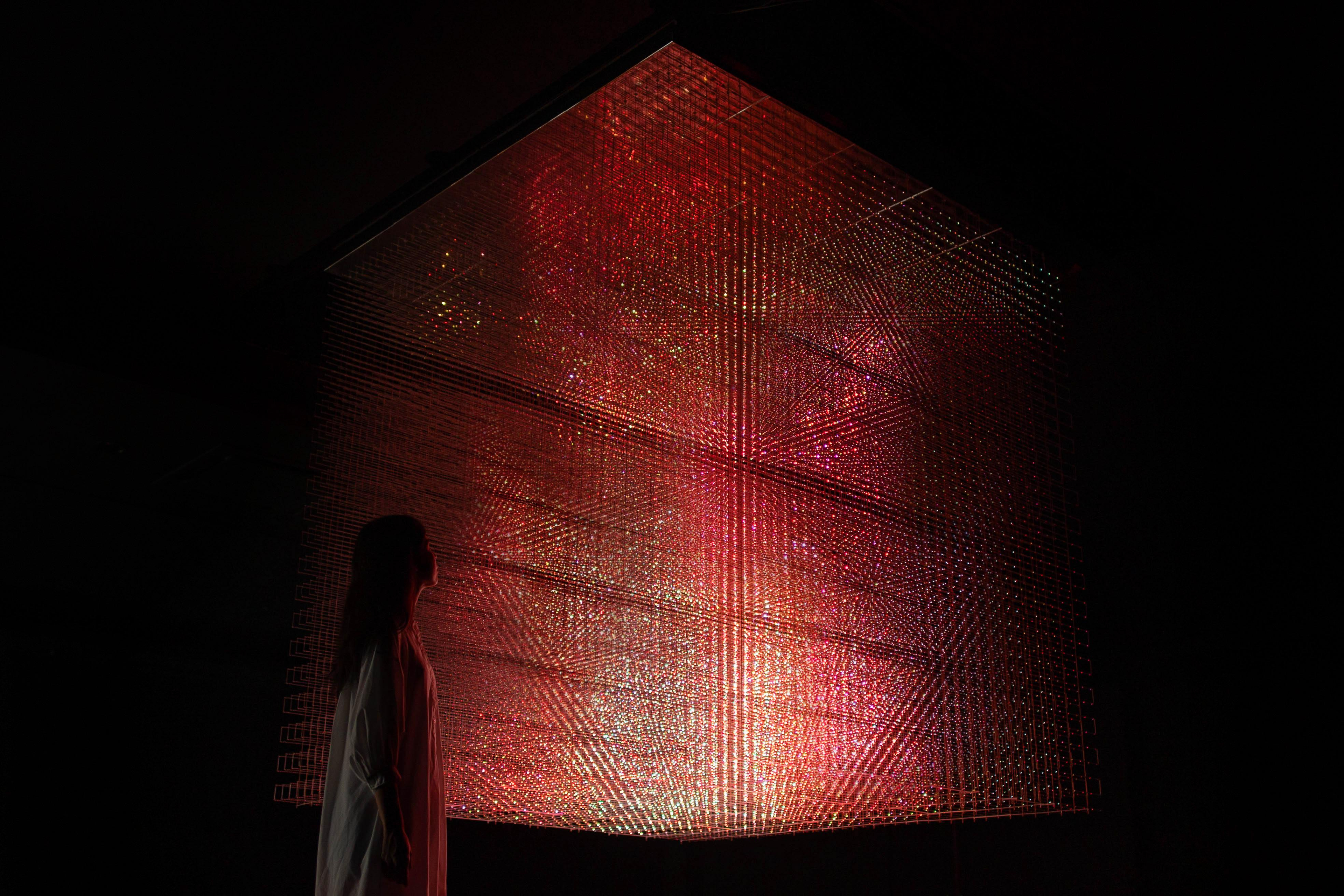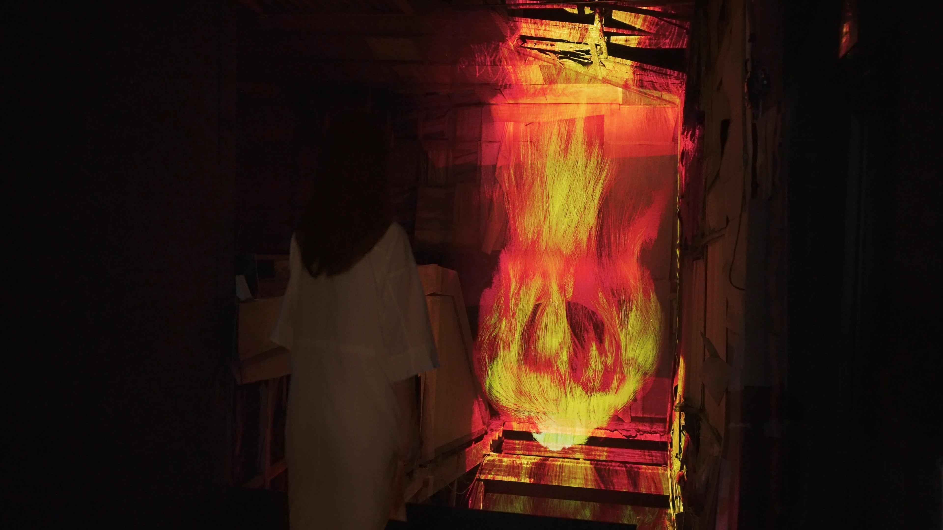 When you launch this app and approach Universe of Fire Particles in a Decaying Underground Passage, your flame will ignite and you can take the artwork home with you.