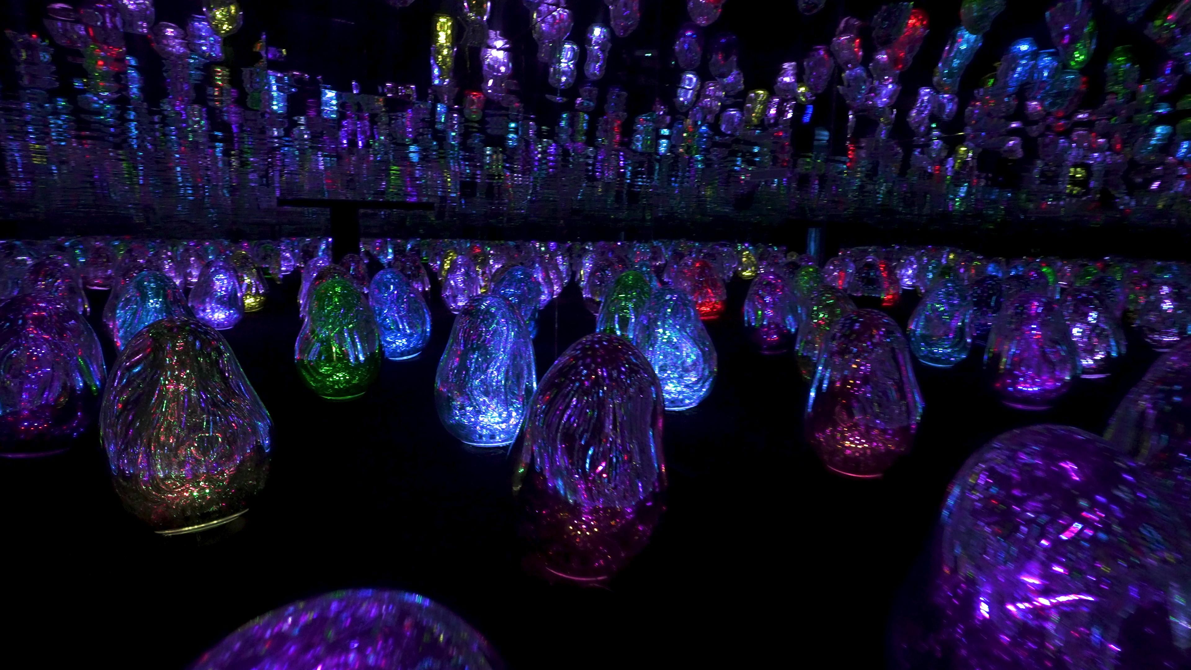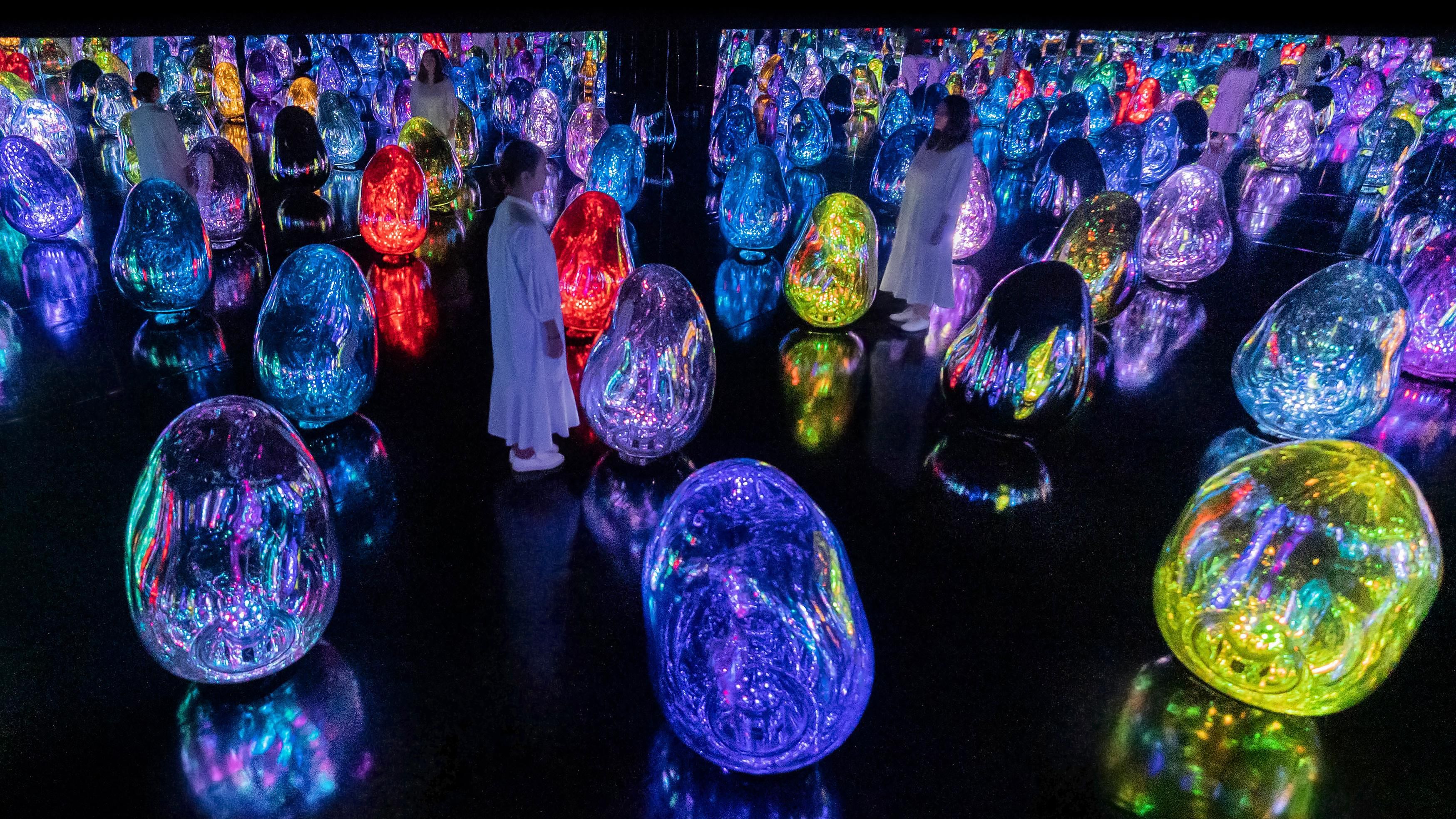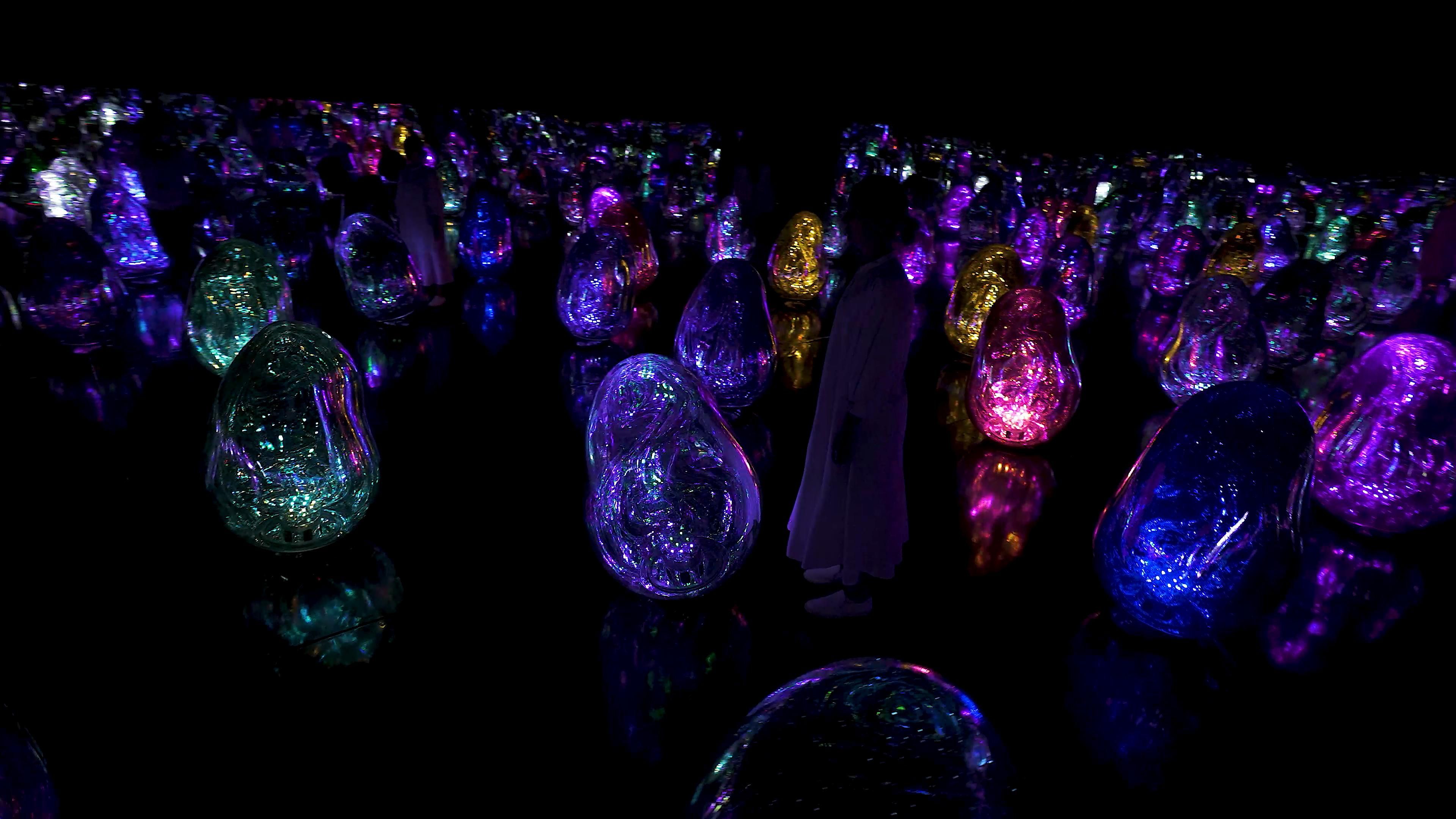 teamLab is experimenting with the concept of color. The ovoids can change into a total of 61 newly-defined Solidified Light Colors.
