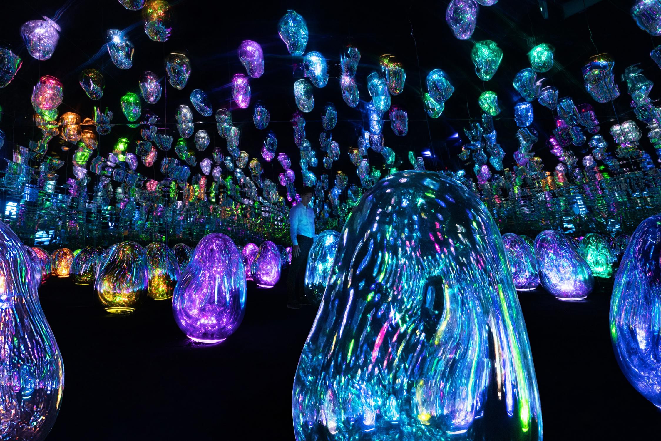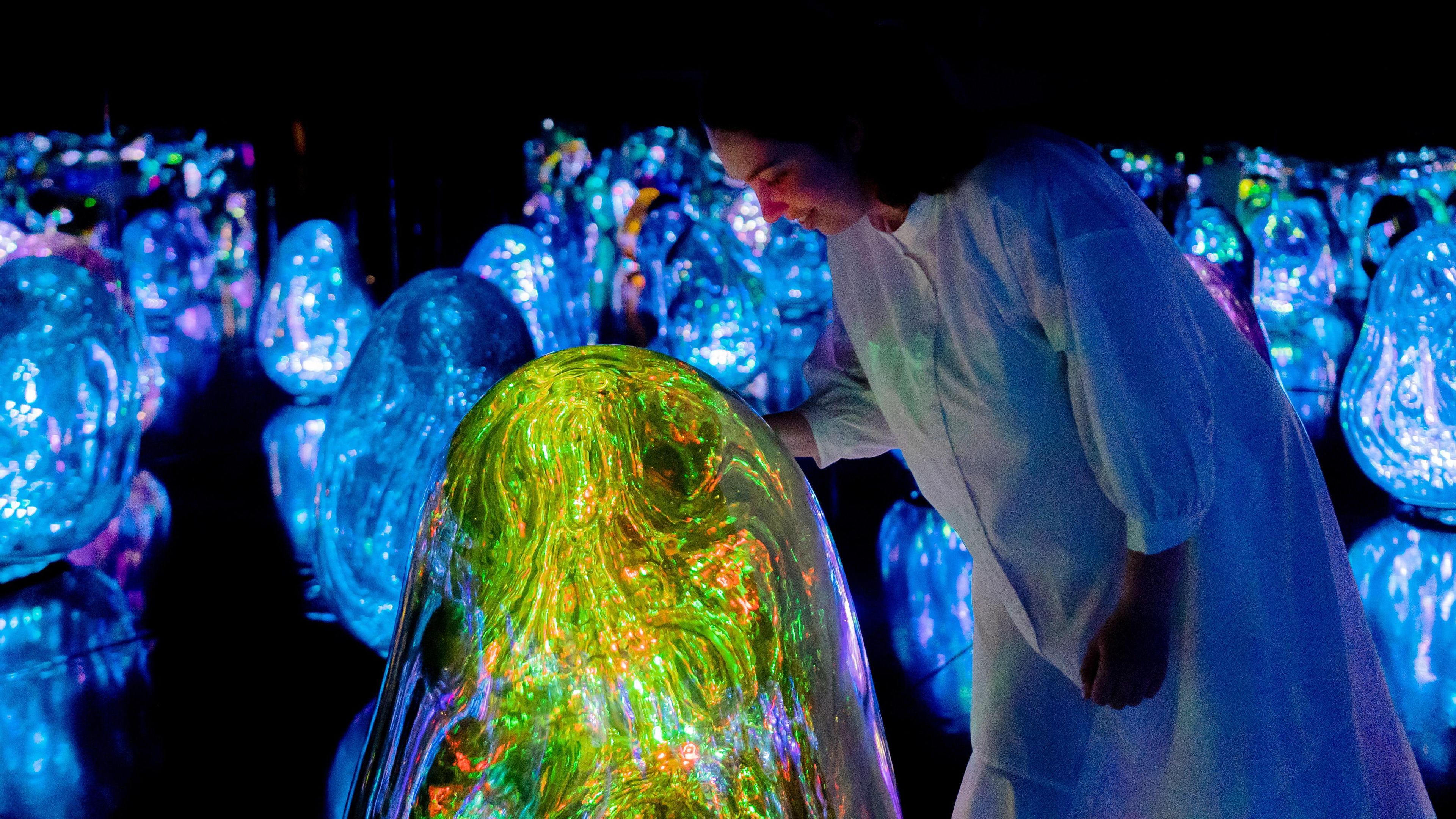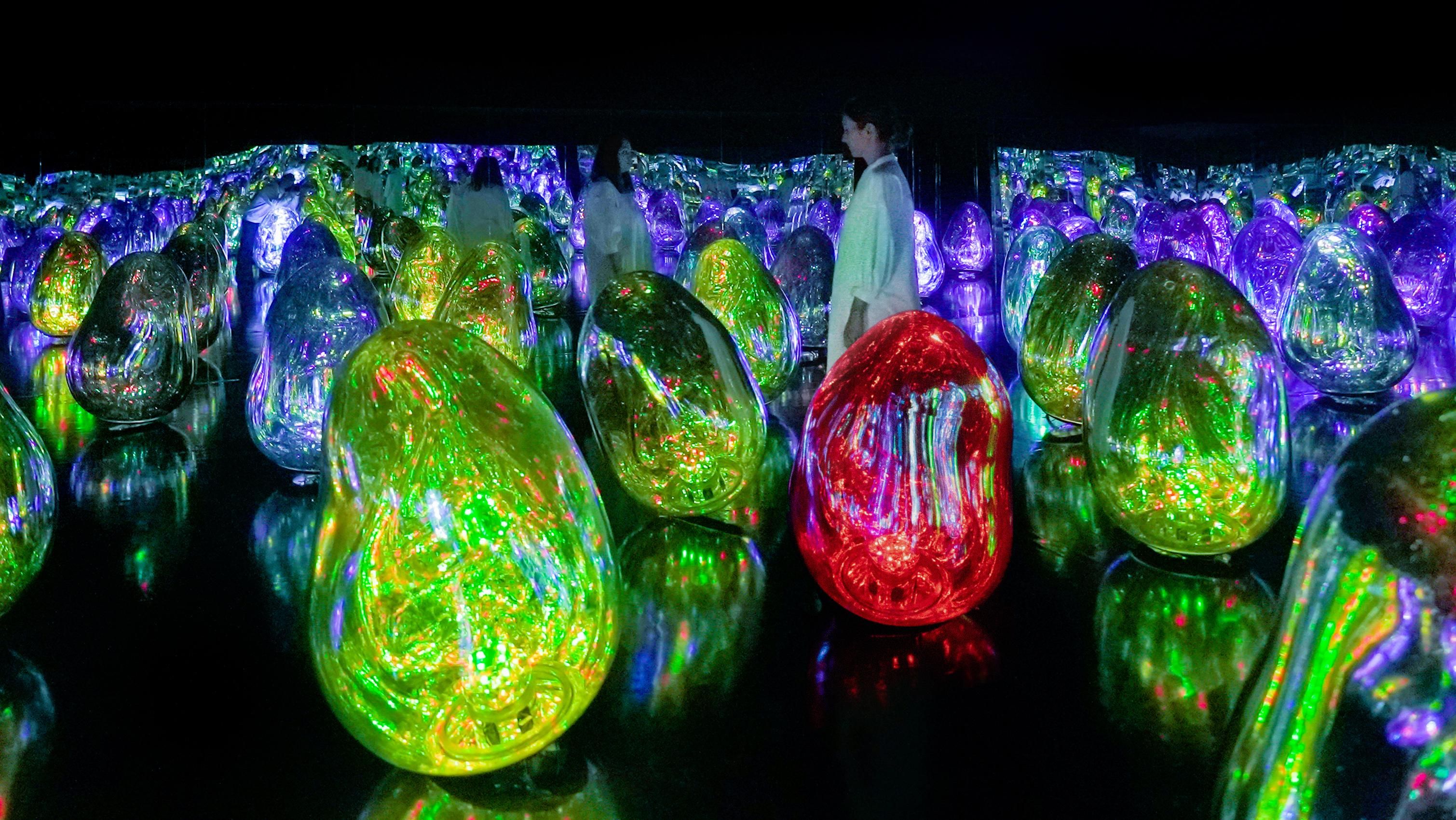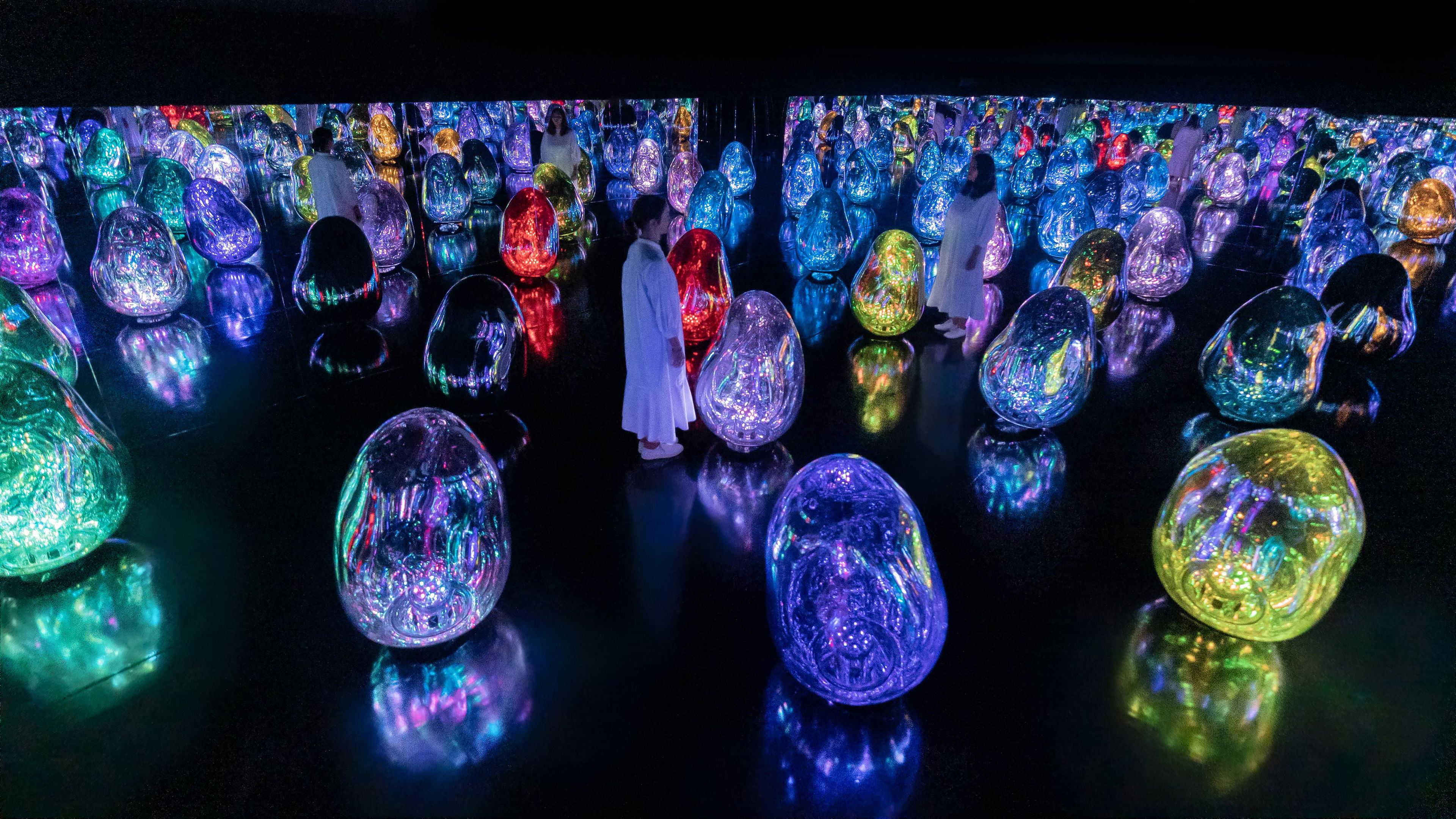 teamLab is experimenting with the concept of color. The ovoids can change into a total of 61 newly-defined Solidified Light Colors.