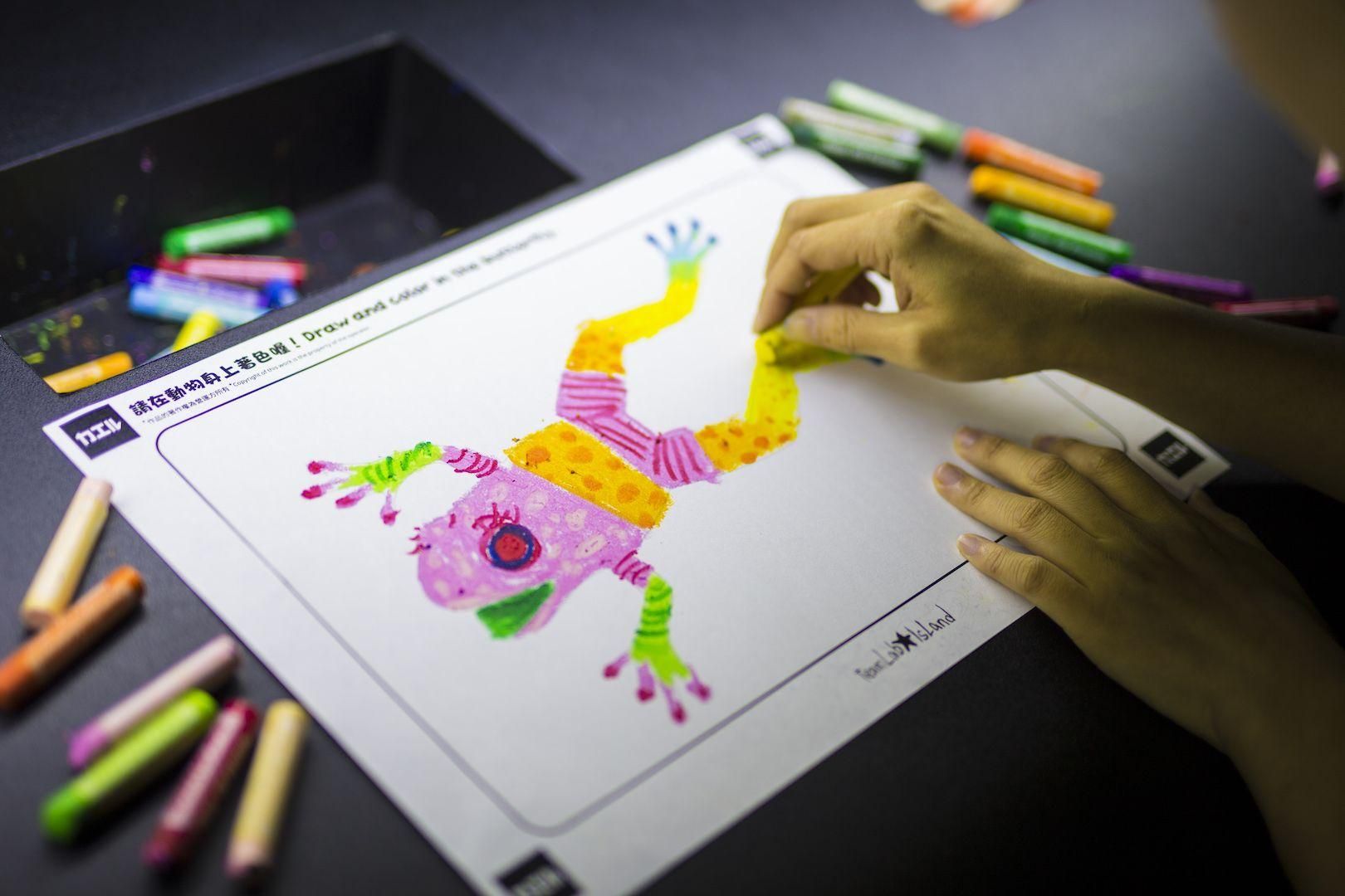 All the various creatures drawn by everyone live in a three-dimensional space consisting of slopes with varying elevations. Color in a creature on the paper provided, and see the picture you have drawn come to life and move in front of you.