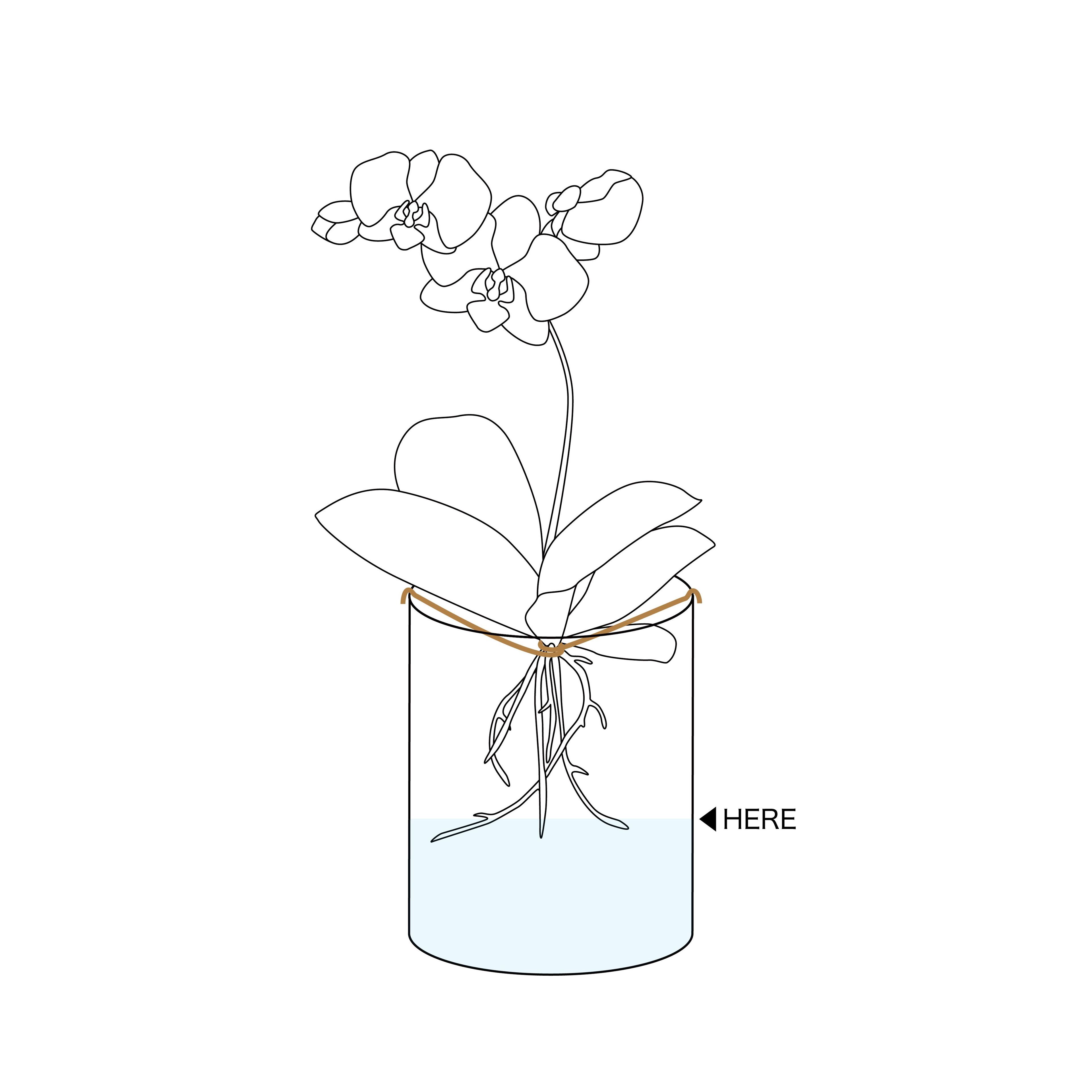 2〜3日に1回、水の交換を行ってください。水の量は1番下の根の先端が水に触れる程度がベストです。水にキッチンハイターを2、3滴入れると、ランにカビが生えるのを防いでくれます。キッチンハイターの代わりに、次亜塩素酸ナトリウムが入っている漂白剤、もしくは、次亜塩素酸水でも大丈夫です。