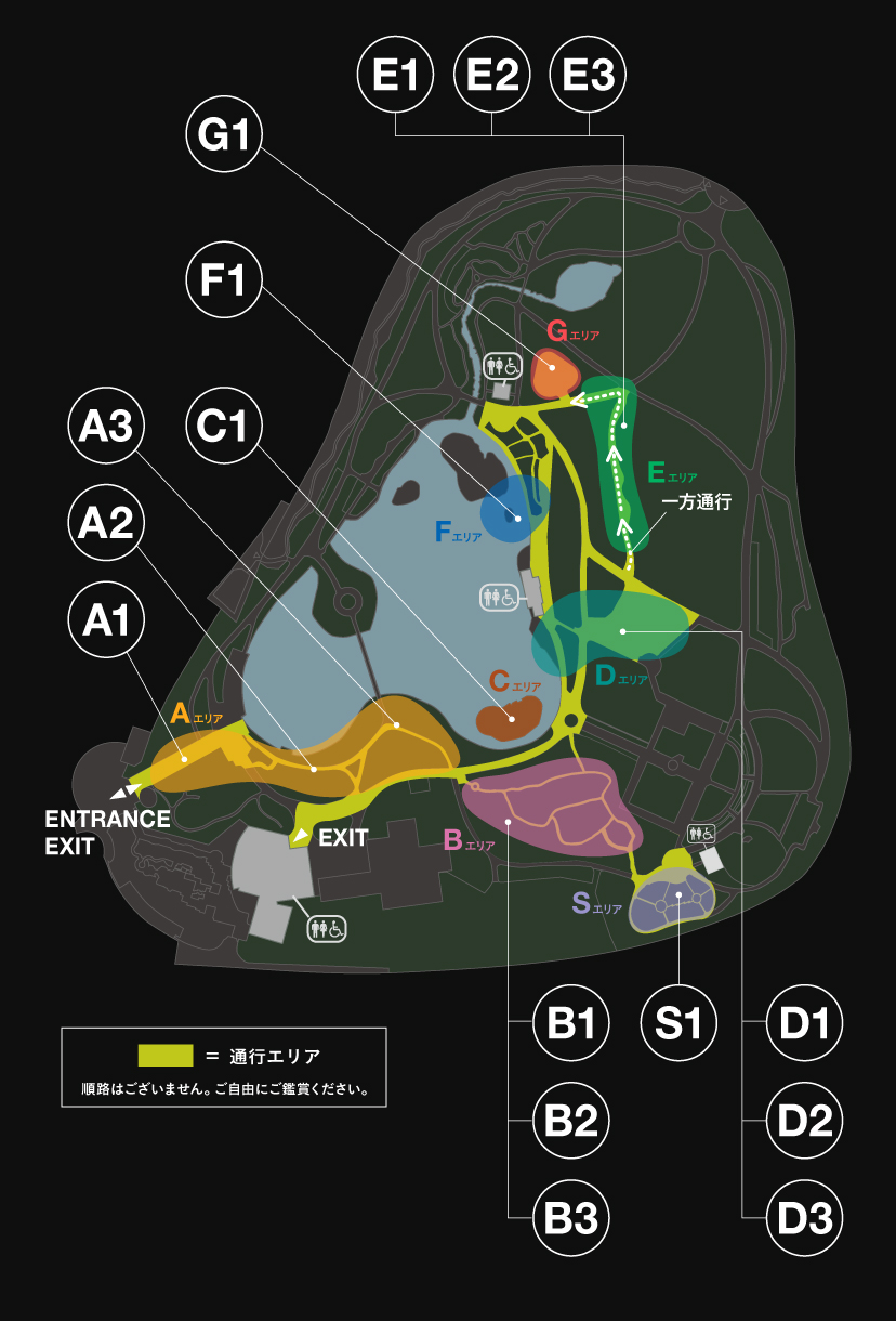 ・その他荒天により園内の安全が確保されないと判断した場合は、開場の遅延や展示を中止または中断する場合があります。