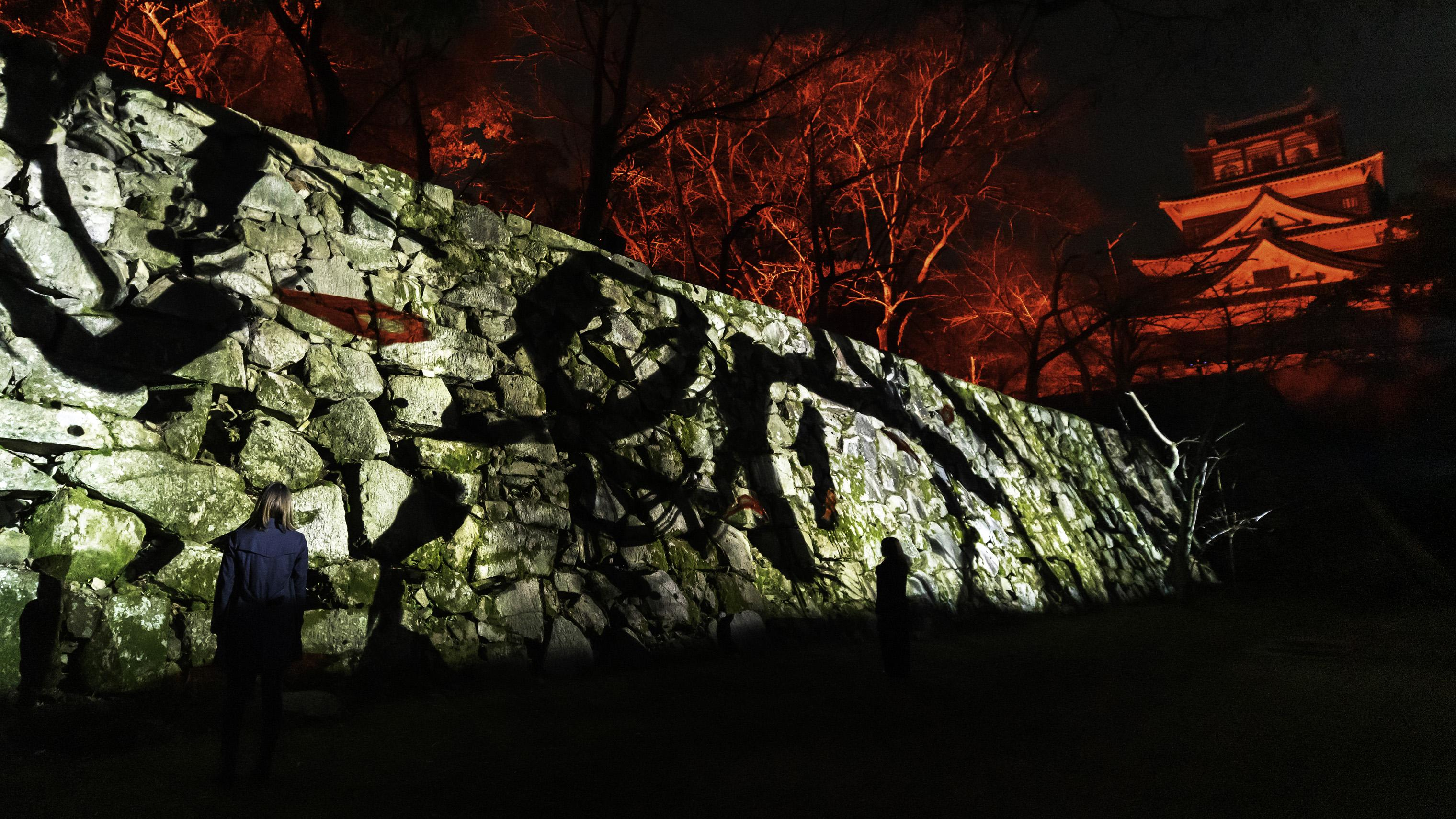 It takes only one touch to send waves of colored light sweeping across the ground in front of Hiroshima Castle. The walled garden in front of the 430-year-old structure has been turned into a glowing, interactive, nighttime wonderland honoring 400 years since the Asano Clan made Hiroshima its home.(本文抜粋)