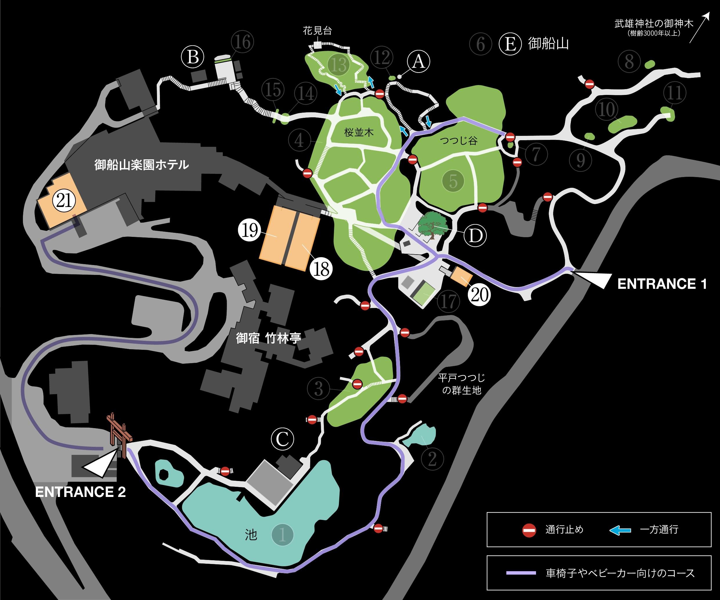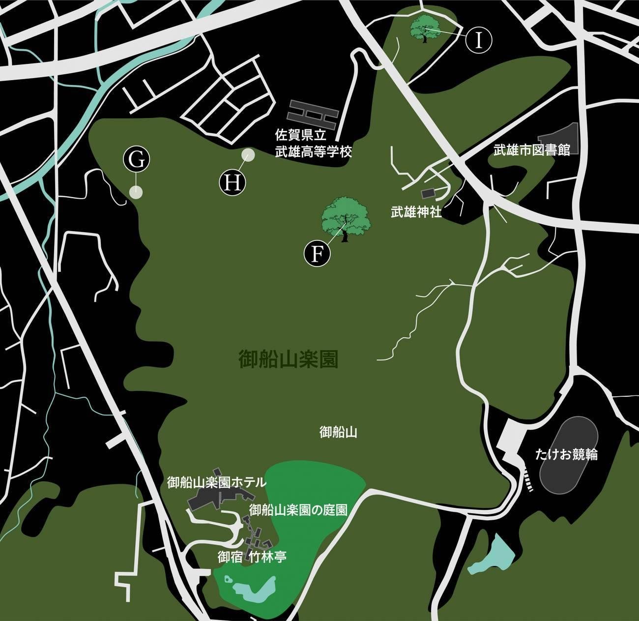 1845年(江戸後期)に50万平米にも及ぶ敷地に創られた御船山楽園。敷地の境界線上には、日本有数の巨木である樹齢3000年以上の神木の大楠があり、庭園の中心には樹齢300年の大楠がある。そのことからわかるように、古来より大事にされてきた森の一部を、森の木々を生かしながら造った庭園であることが想像できる。庭園と自然の森との境界は曖昧で、回遊していく中でいつのまにか森に入り込んだり、けもの道に出くわしたりする。