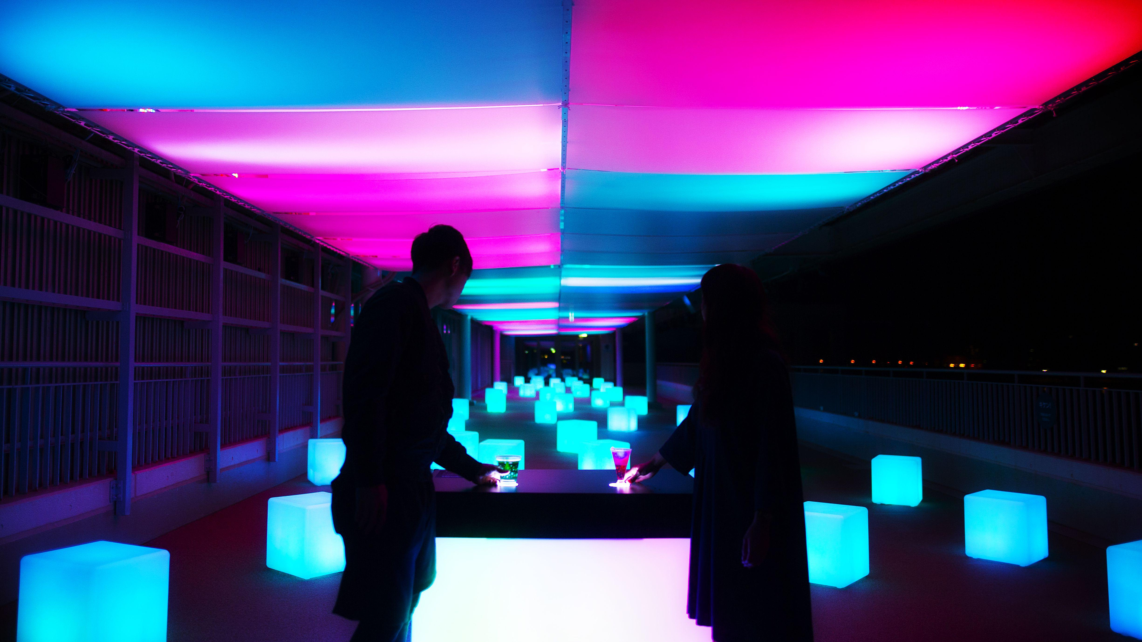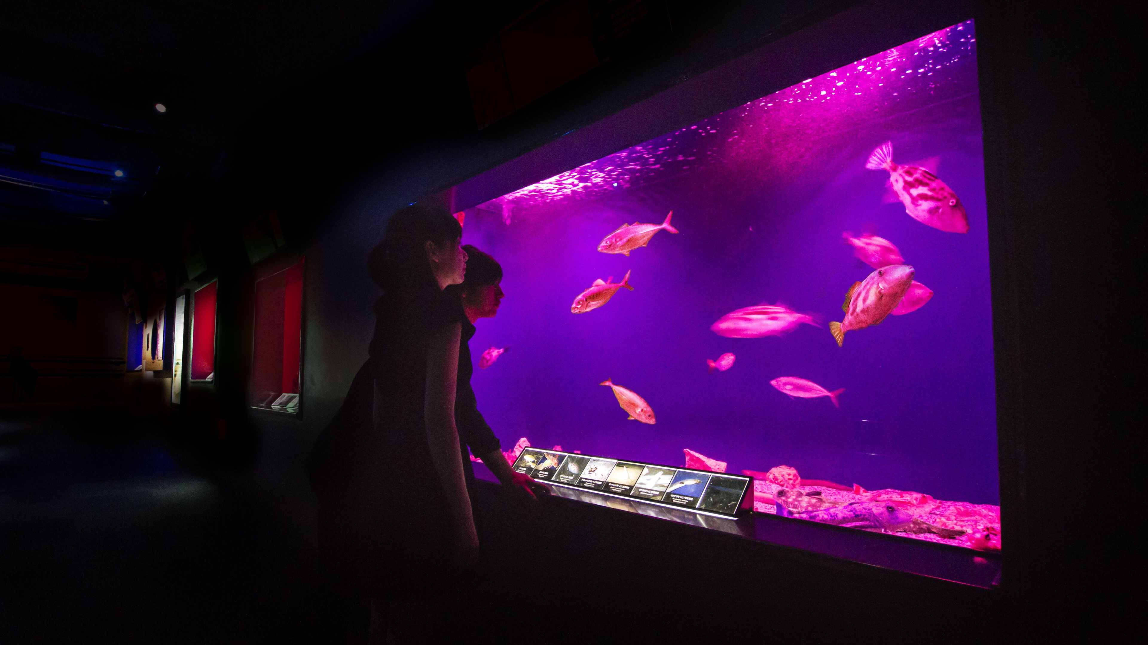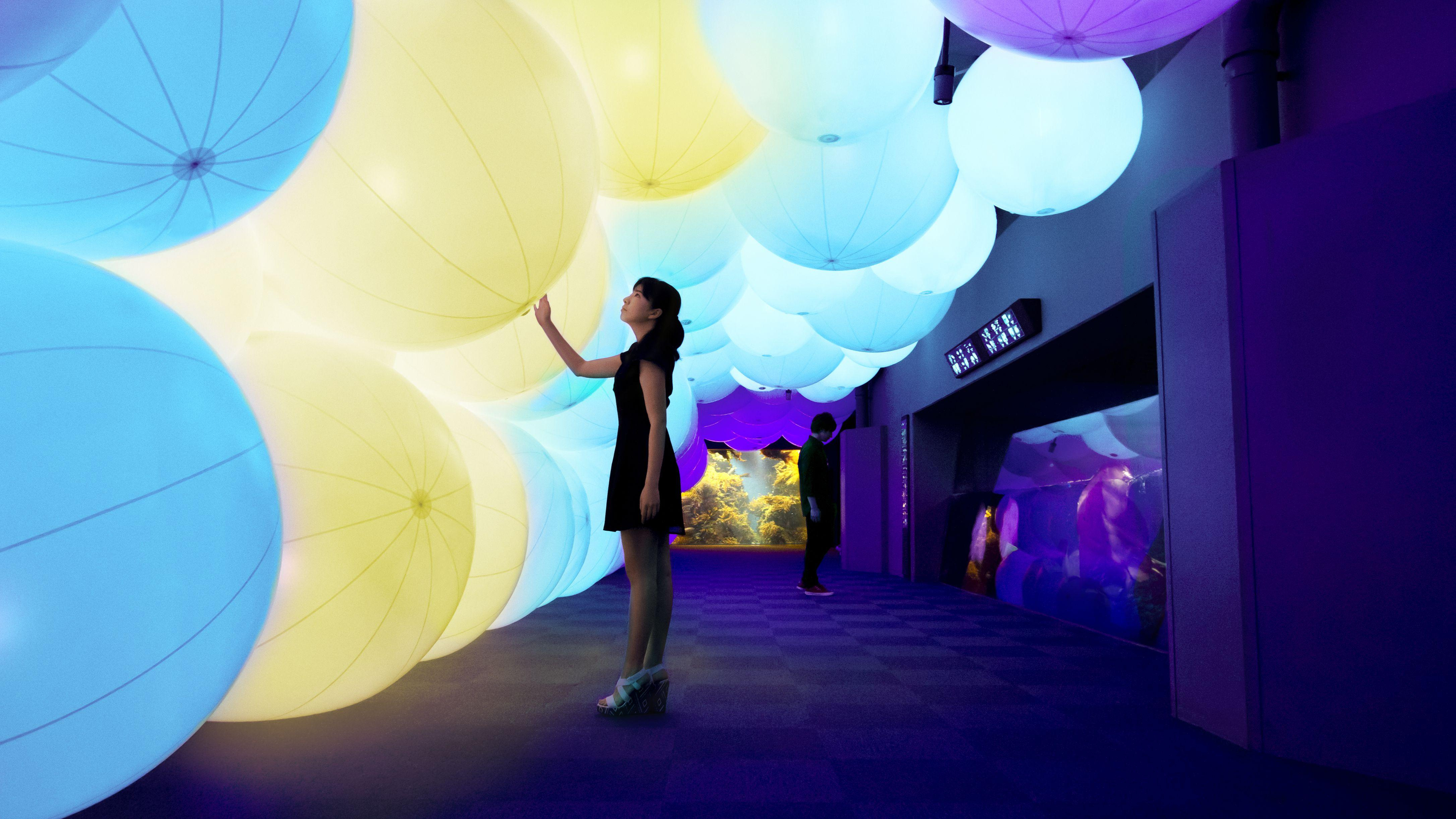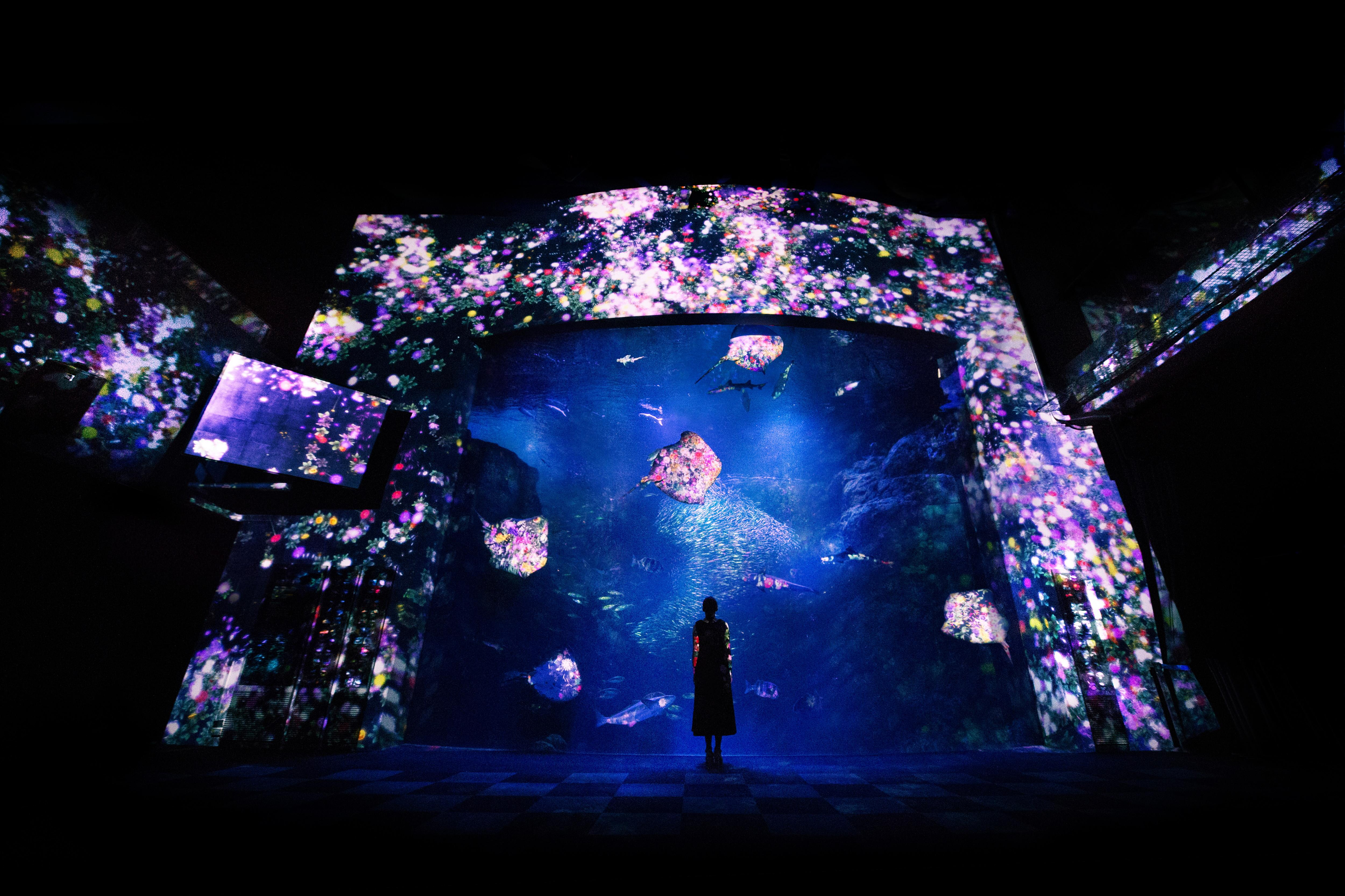 teamlab projects colorful flowers on fish at enoshima aquarium in japan