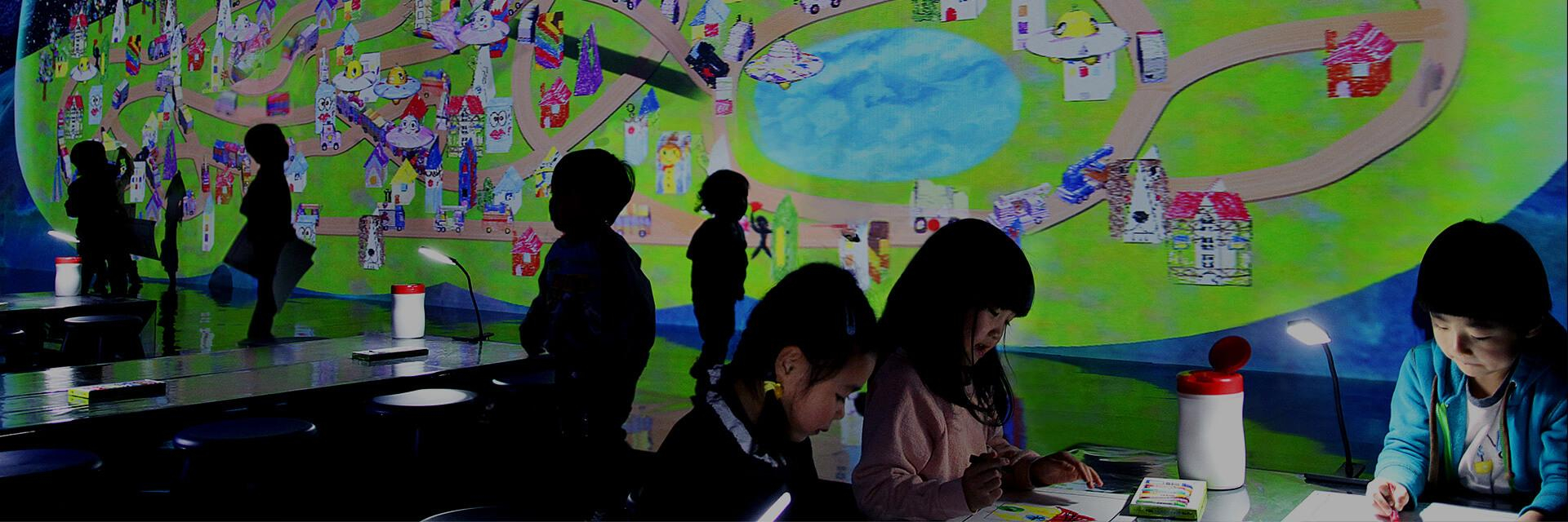 しかし、社会では、チームでクリエイティブな成果を出すことを求められてきています。共同的で創造的な体験、つまり、「共創(きょうそう)」の体験、それが、今、子どもたちにとってもっとも大事なのではないかと思っています。最新のデジタルテクノロジーを使い、子どもたちが同じ空間で、自由に体を動かし、互いに影響を与え、共同で創造していく「共創」の体験を楽しんで欲しい。そして、共同で創造していくことをとても楽しめる人間になってもらいたい、そういう願いから生まれた「学ぶ!未来の遊園地」です。
