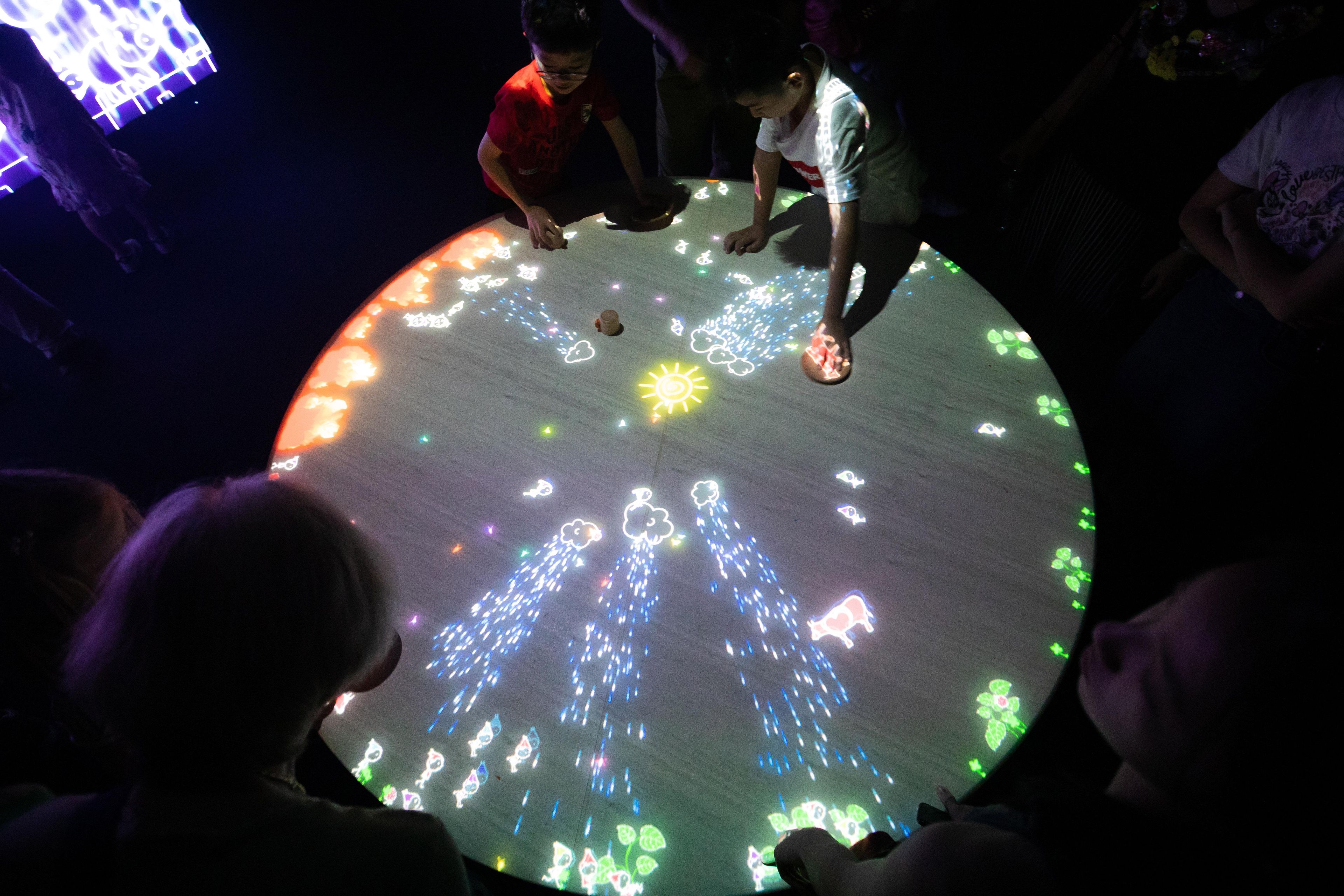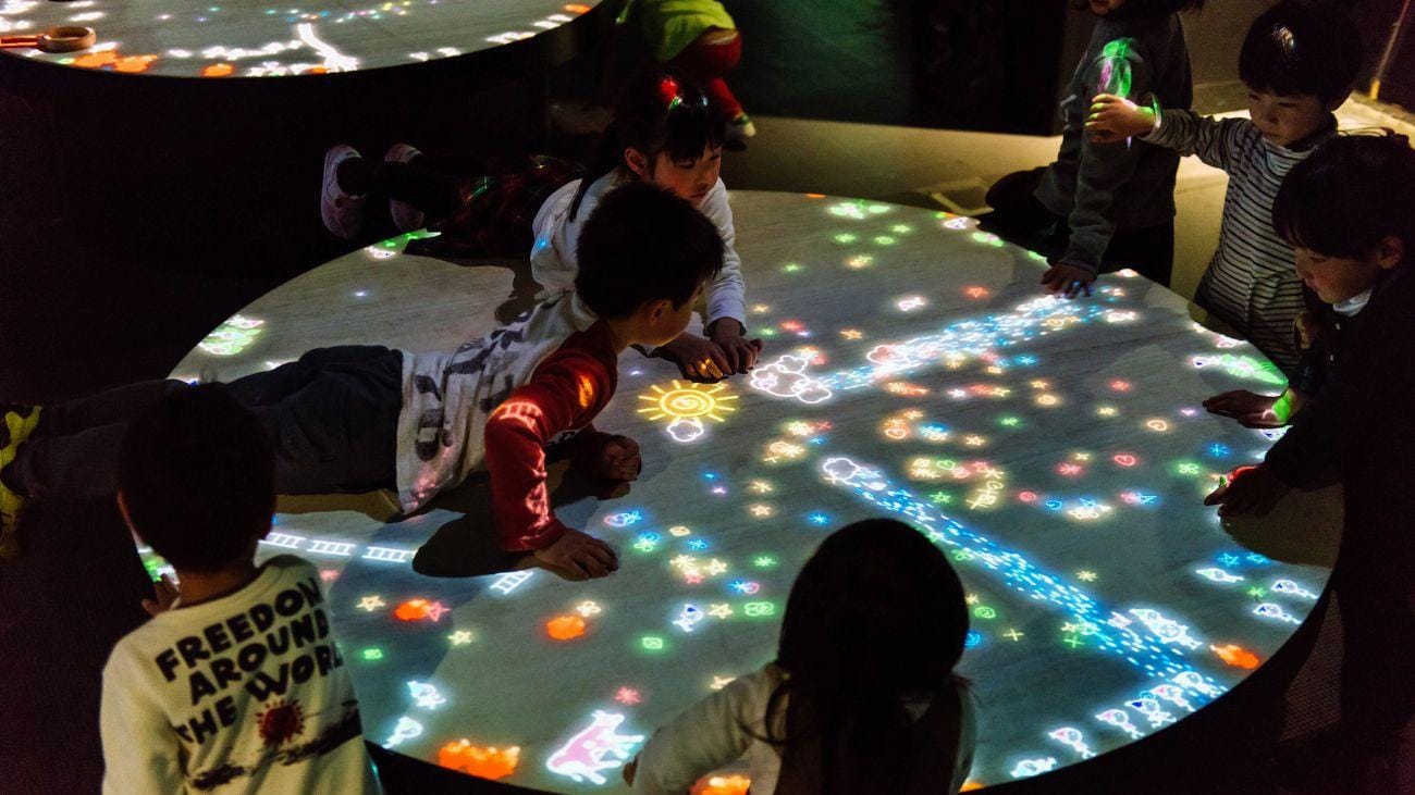 テーブルの上に手を置いたり、物を置いたりすると、こびとたちは気づいて、飛び乗ってくる。