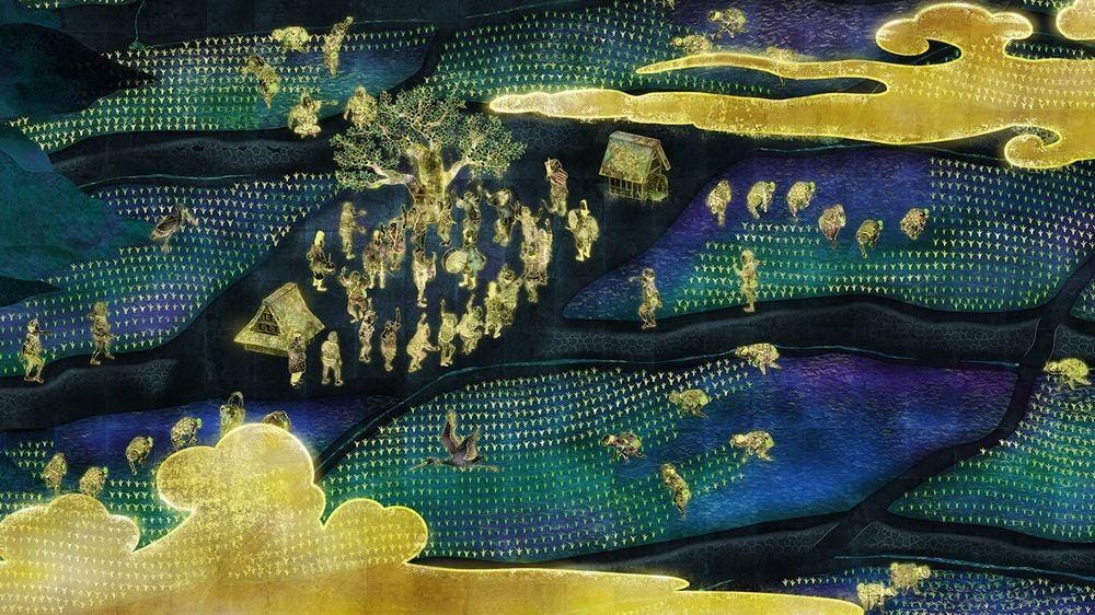千年以上変わらず続く田染荘の景色を、自然と共生していく人々の営みとともに、悠久に続く景色として描いている。