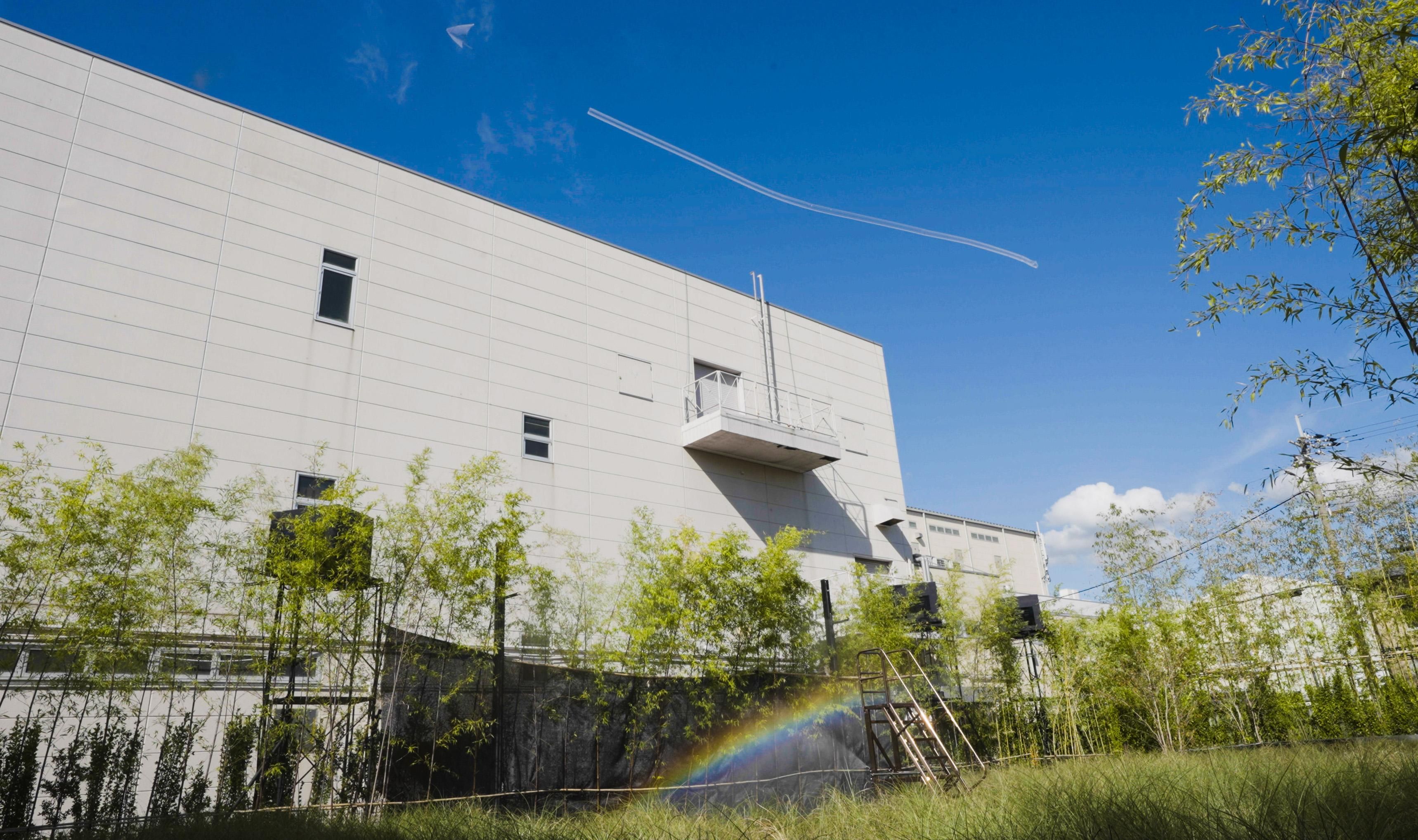大阪製罐のカンカン工場の敷地の一部を壊してできた草原の中のカフェ。カンカン工場に隣接する。