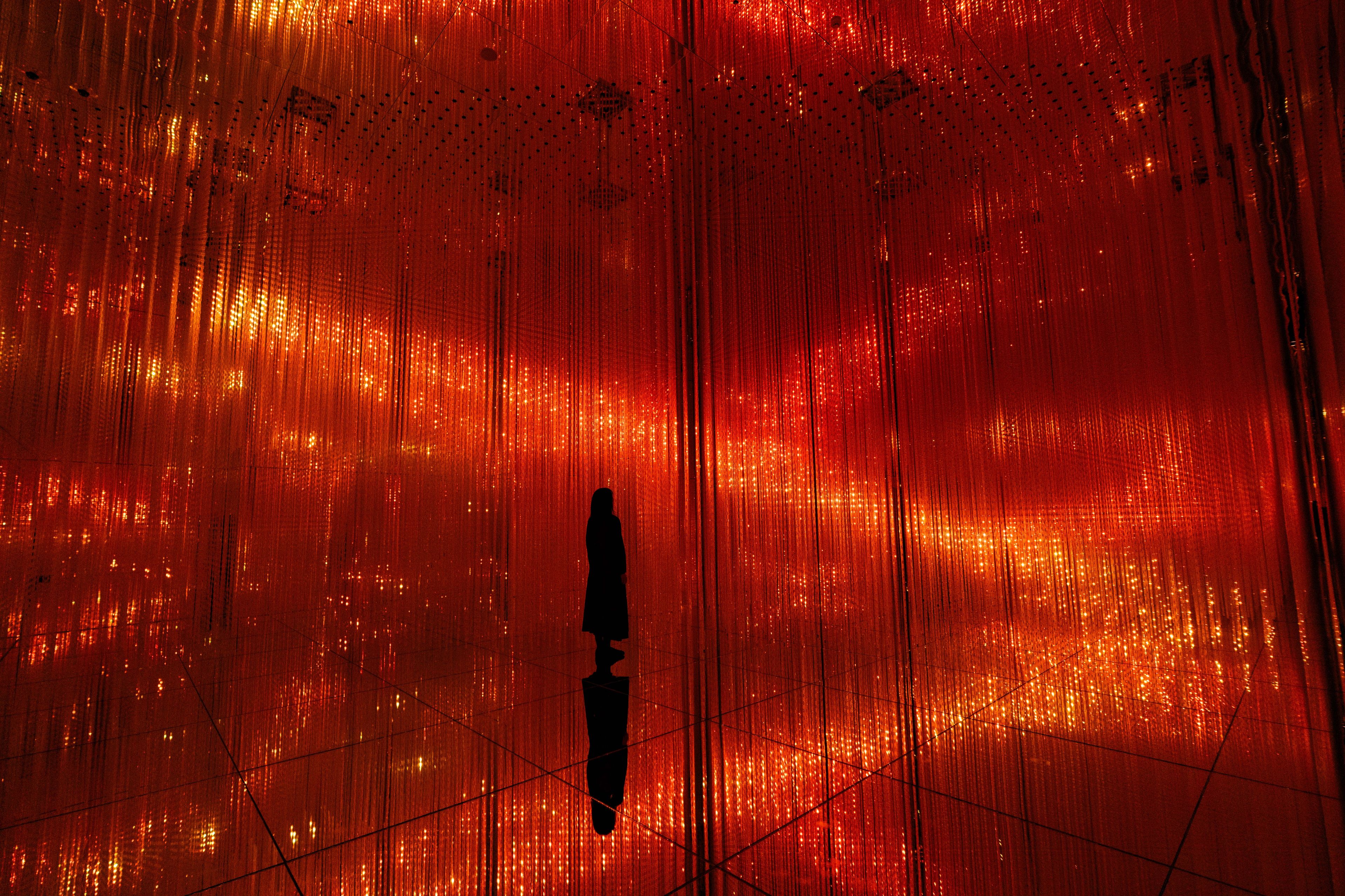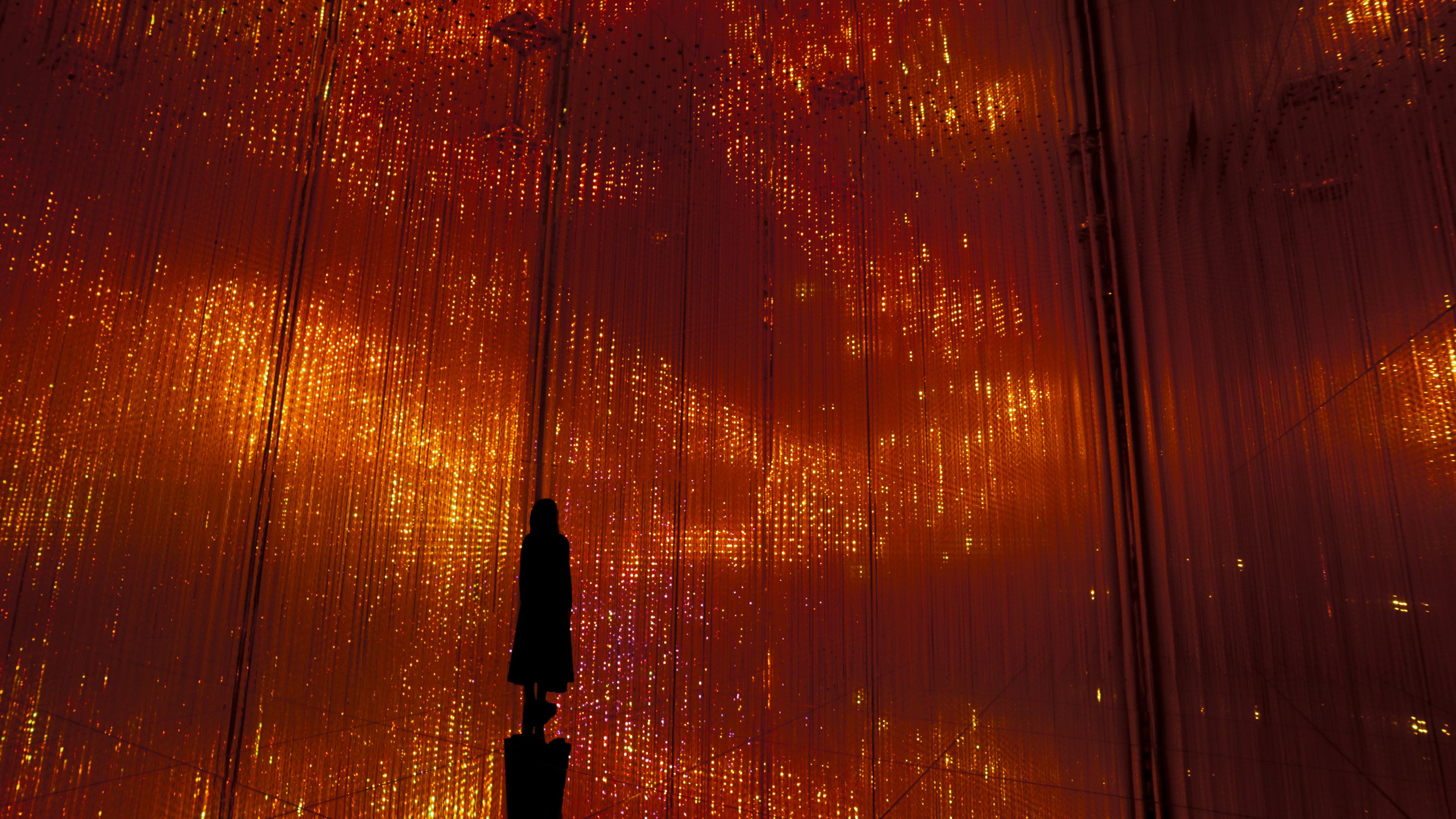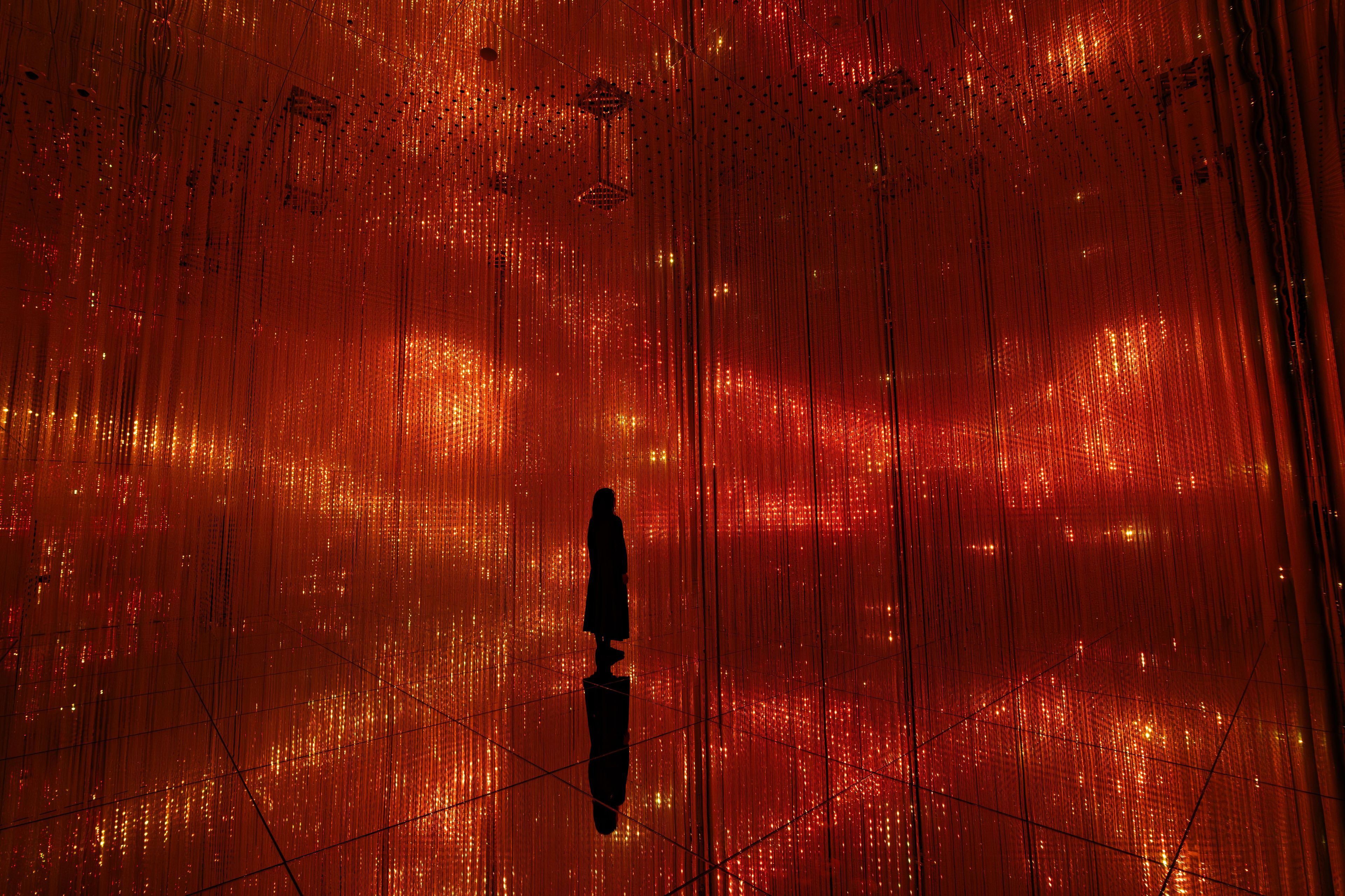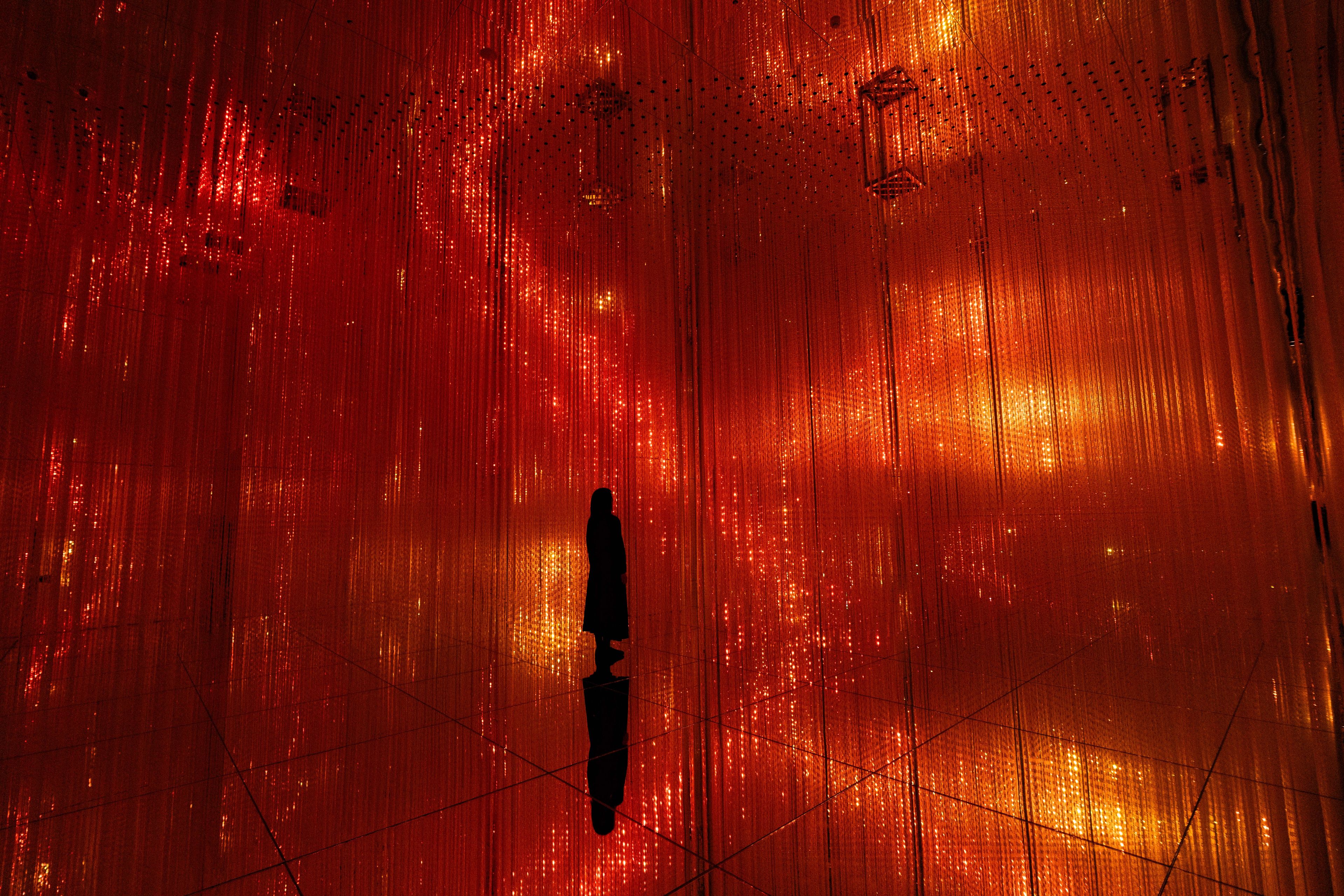 teamLab, 2025, from the series Crows are Chased and the Chasing Crows are Destined to be Chased as Well, 2013-, Interactive Installation, Sound: Hideaki Takahashi