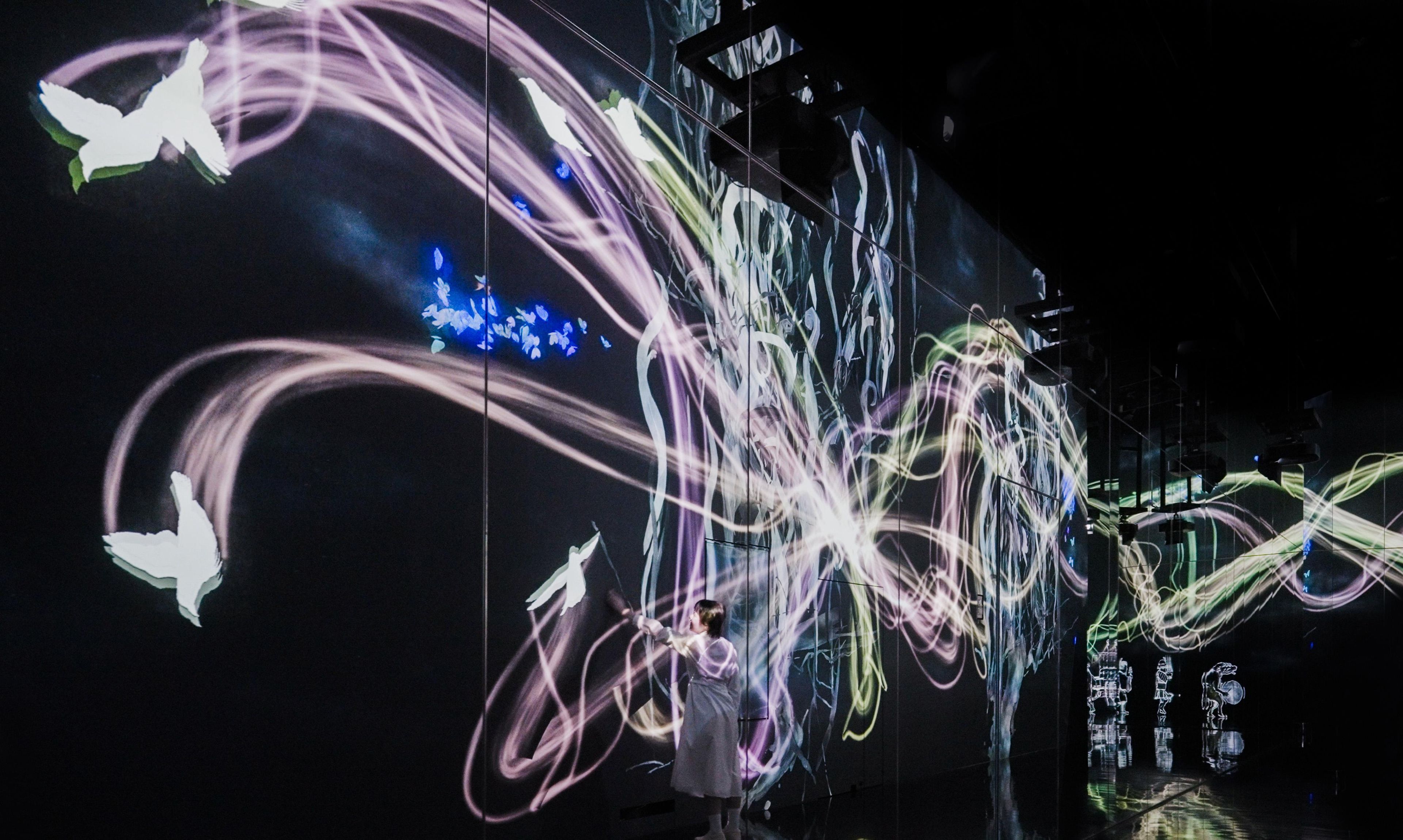 teamLab, 2018-, from the series Crows are Chased and the Chasing Crows are Destined to be Chased as Well, 2013-, Interactive Installation, Endless, Sound: Hideaki Takahashi