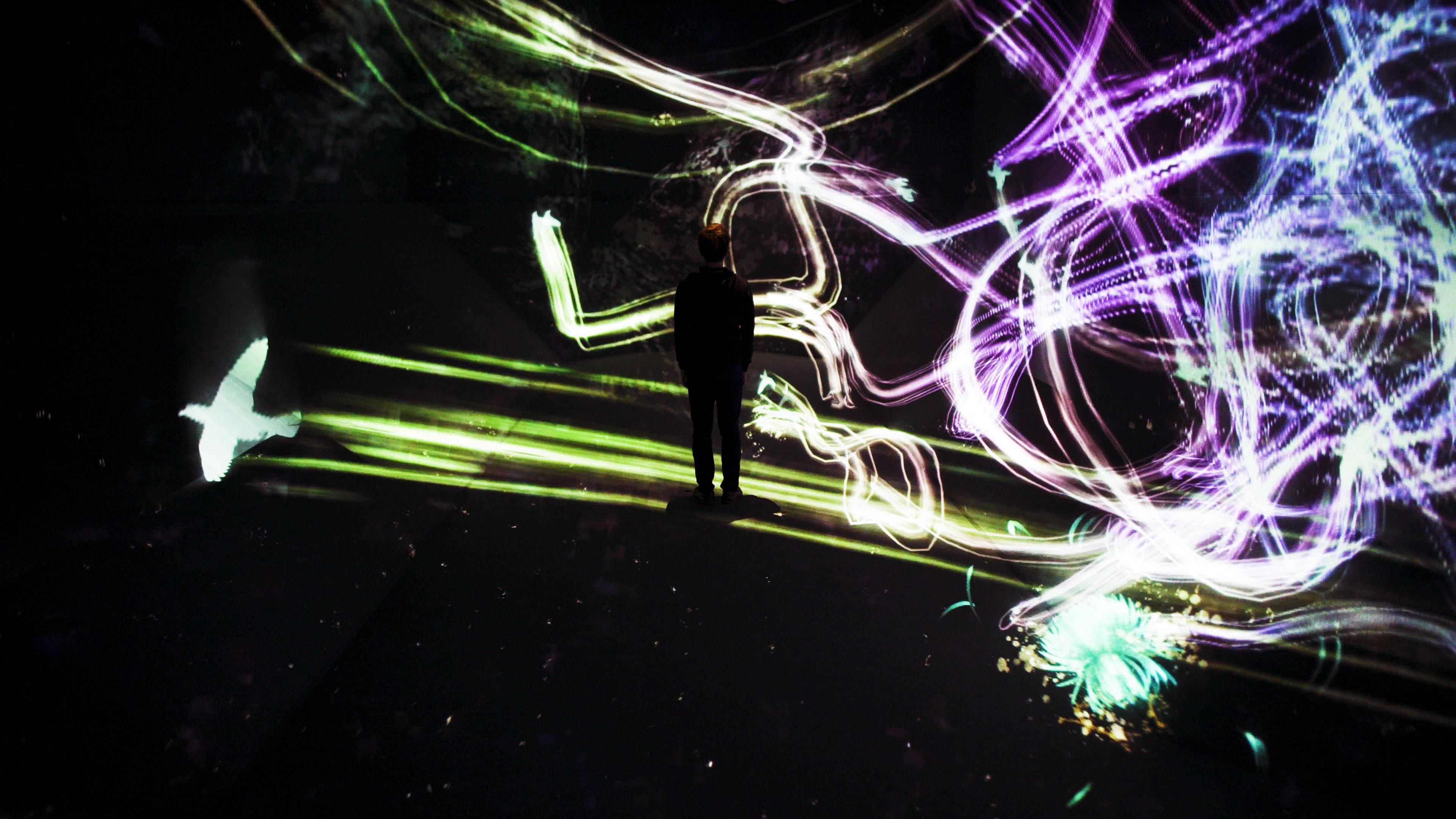 teamLab, 2017-, from the series Crows are Chased and the Chasing Crows are Destined to be Chased as Well, 2013-, Interactive Installation, 4 min 20 s, Sound: Hideaki Takahashi