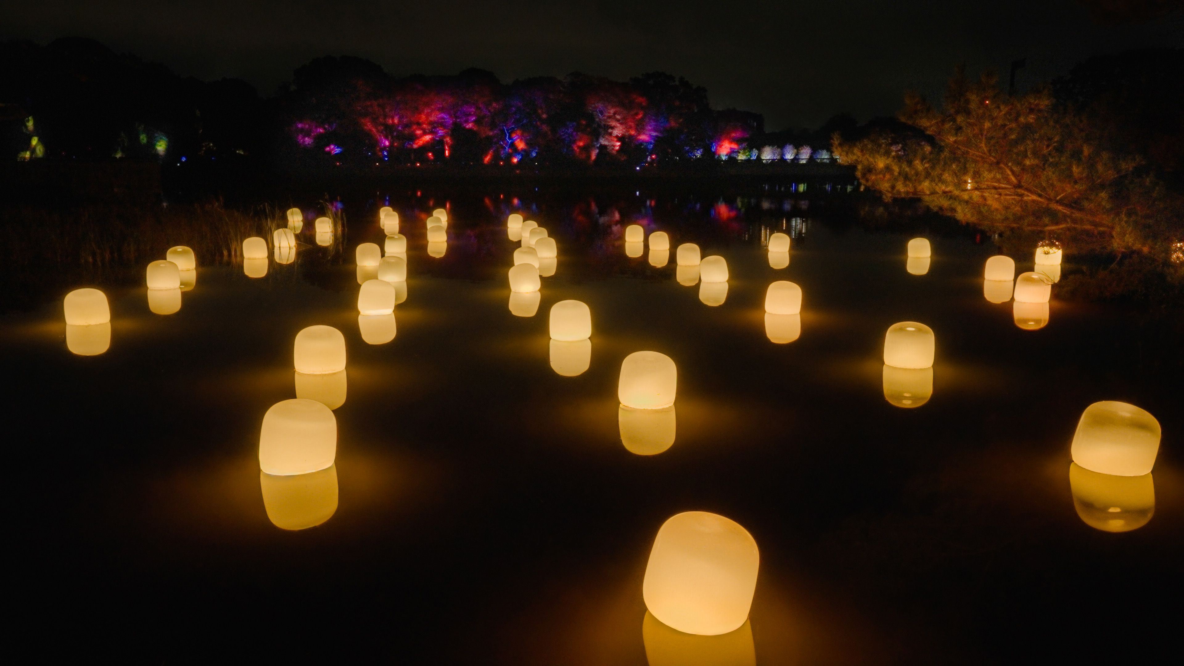 大池に浮遊する呼応するランプ - Fire / Floating Resonating Lamps on Oike Lake - Fire