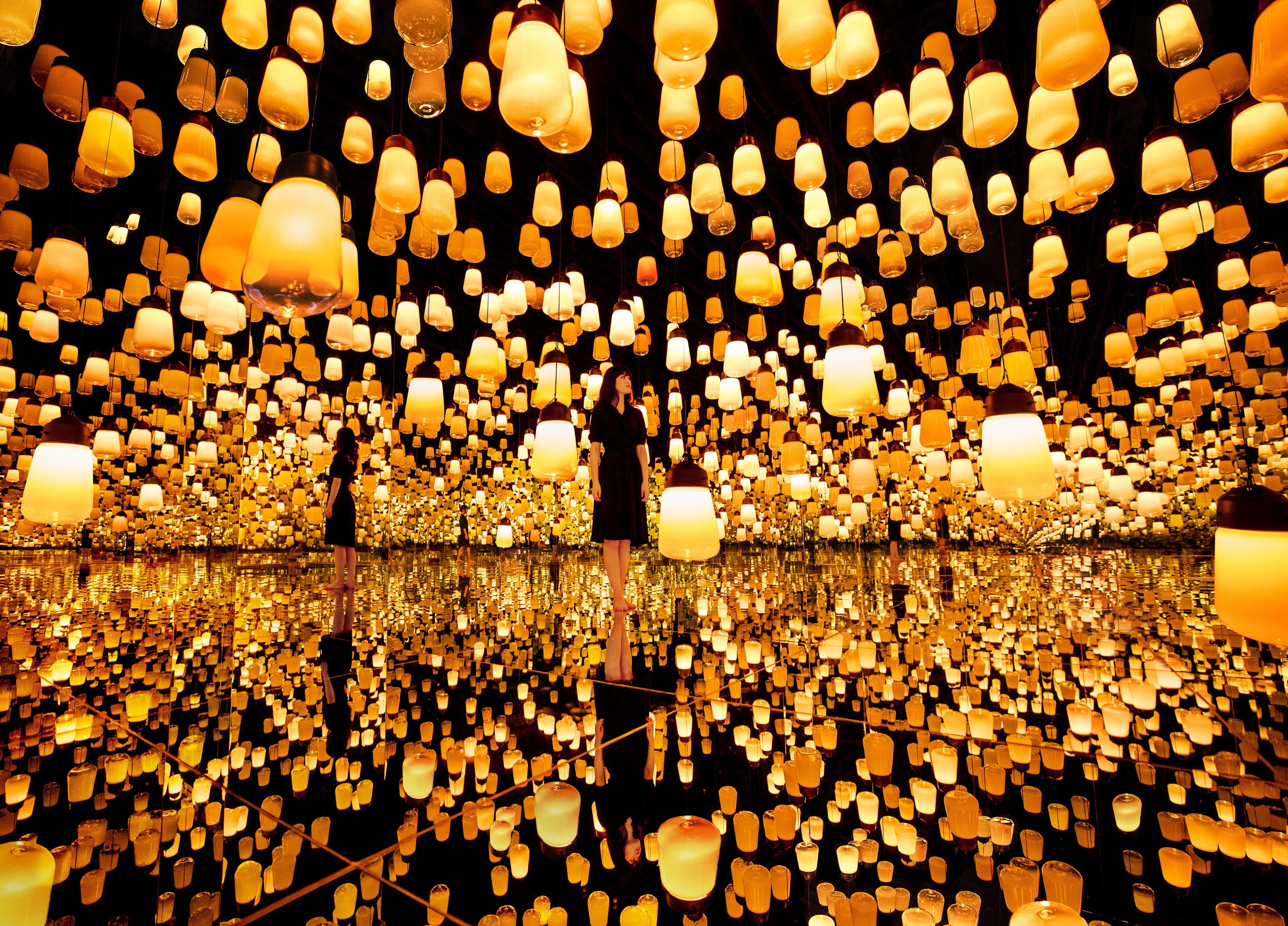 teamLab, 2016-, Interactive Installation, Murano Glass, LED, Endless, Sound: Hideaki Takahashi, Production Support: Hirohito Saito (OryZa Design), Shinya Yoshida (SYD INC.)