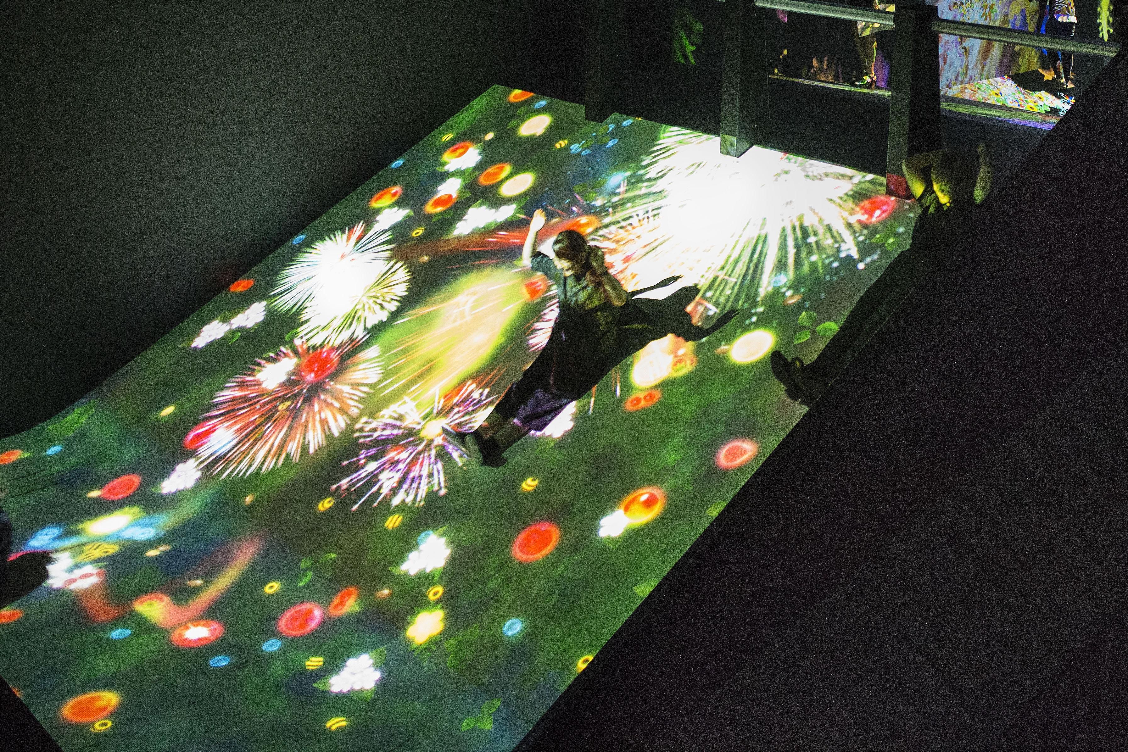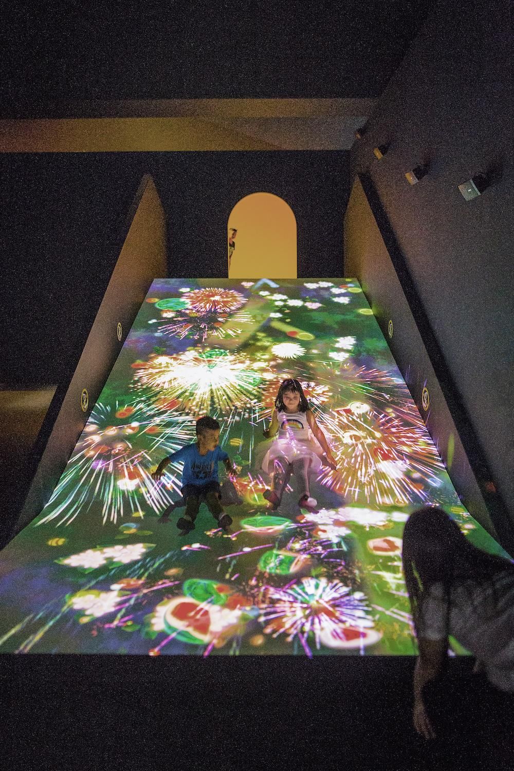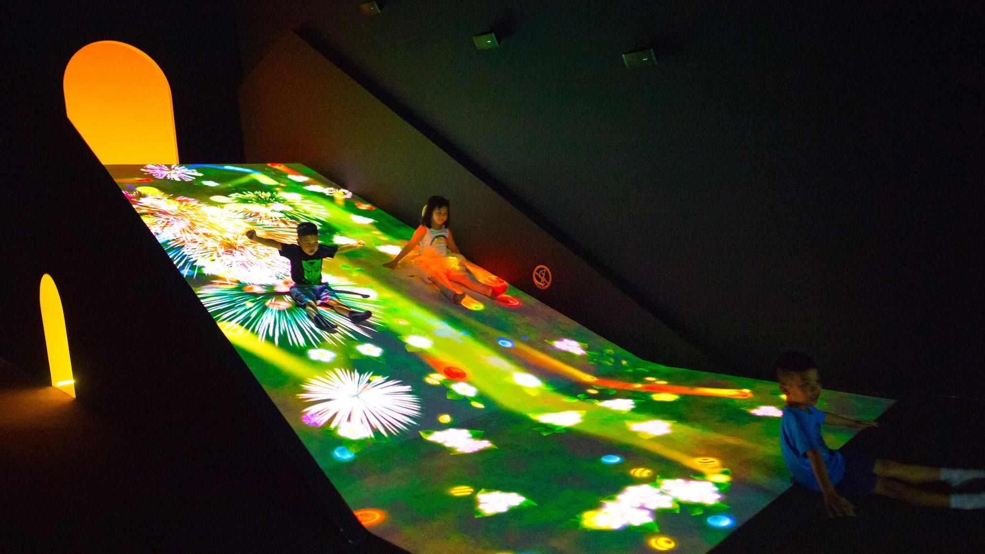 人は、太陽の光になって坂をすべる。体が水ボールやミツバチボールにぶつかると、エネルギーをもらったボールは、勢いよく飛んでいく。勢いよく飛んだボールがぶつかることで、フルーツは育っていく。